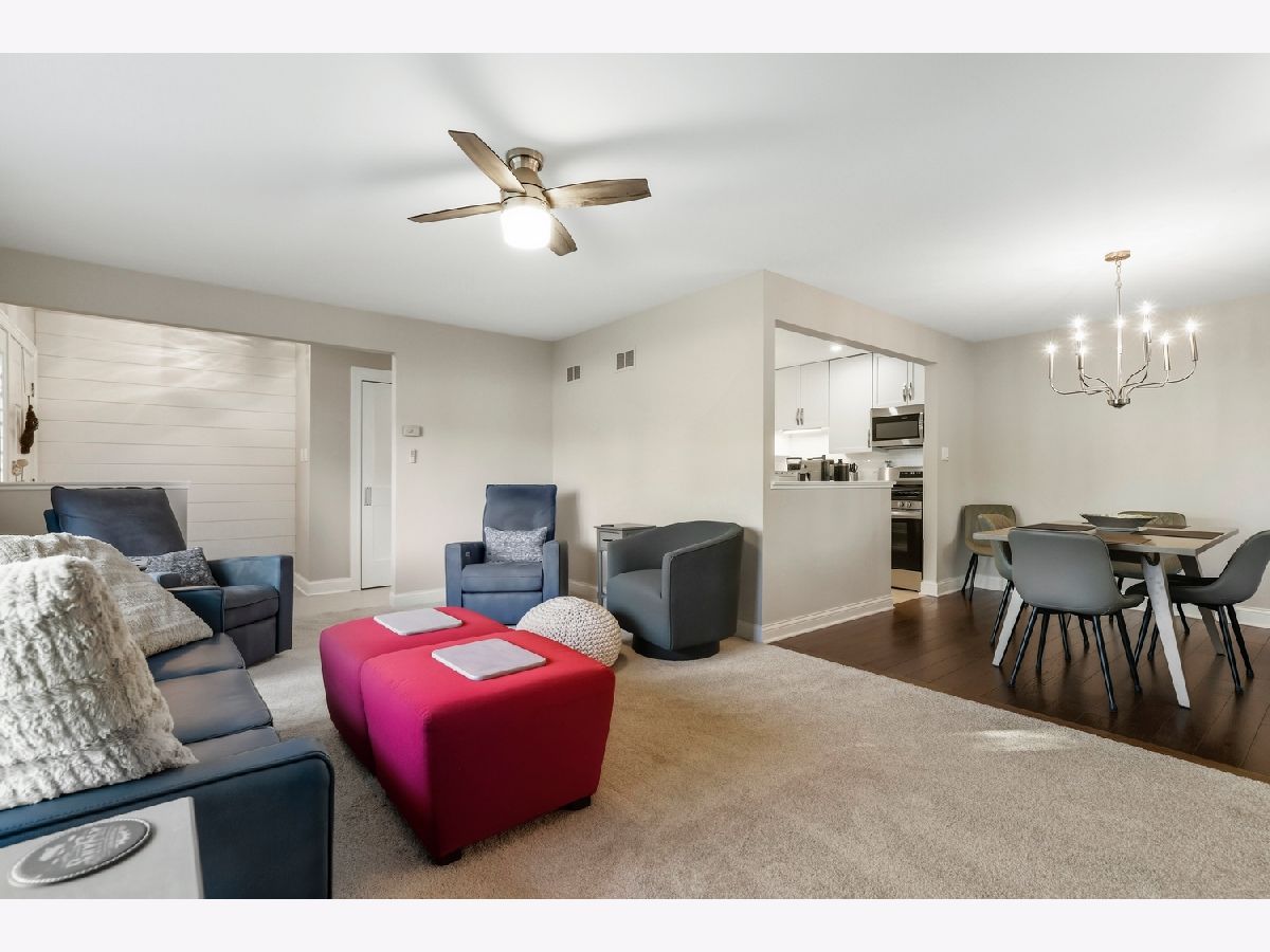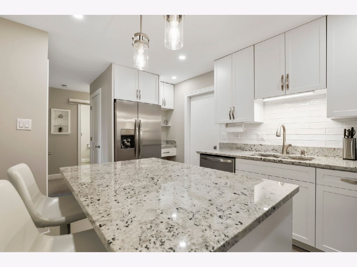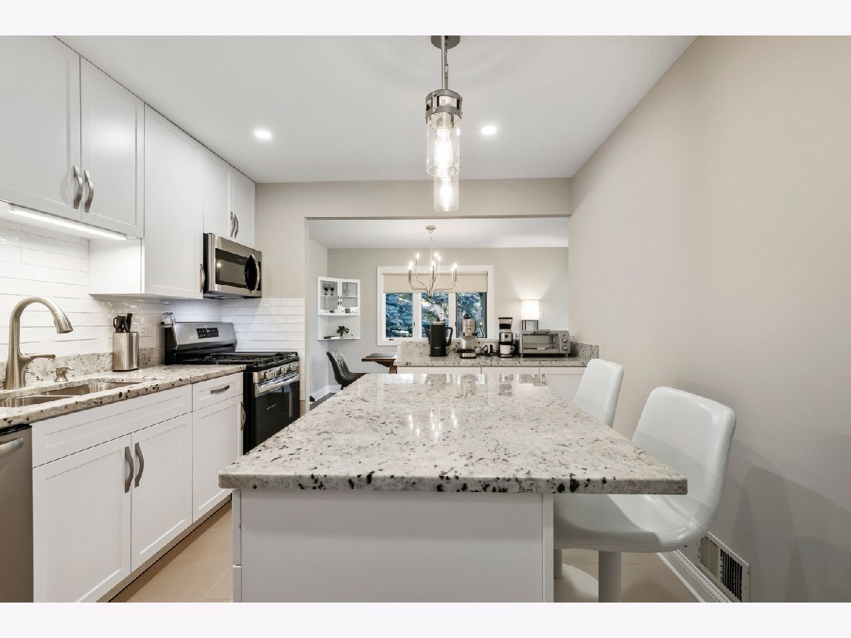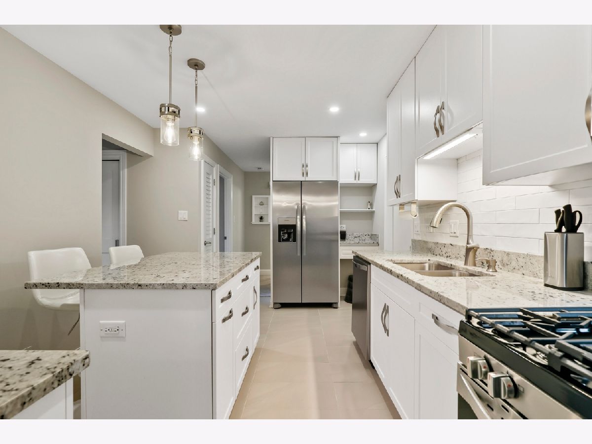 Welcome home! This end unit ranch condo has been beautifully remodeled from top to bottom with high-end finishes and quality workmanship. New flooring, doors, trim, hardware, cabinetry, appliances, faucets, lighting and more have been thoughtfully designed throughout the home. The inviting foyer with a wood accent wall leads into the spacious living room, anchored by a timeless and cozy gas fireplace. Enjoy meals in the formal dining area, perfect for entertaining family and friends. Chef's will love the new kitchen with 42" cabinets, granite countertops, tiled backsplash, stainless steel appliances and large island. Unwind in the primary suite featuring double closets and a private ensuite bath with step-in shower. A second bedroom and hall bath with dual sinks is ideal for hosting overnight guests with ease. This condo also offers a convenient laundry closet, attached 2 car garage with epoxy flooring, a new furnace, ac, washer, dryer and windows (2025) - providing peace of mind for years to come. Located close to shops, restaurants, parks, schools, Metra, and all the Orland park has to offer! Come see today!
