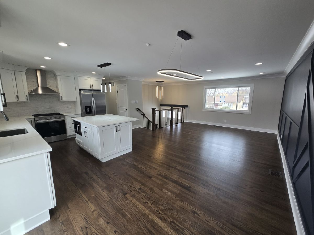 Step into this beautifully renovated home, conveniently located near I-90 and I-290, situated in a highly desirable school district. This home offers modern finishes and peace of mind for years to come. The main level welcomes you with a spacious open-concept living room featuring a striking black accent wall and brand-new hardwood floors. The fully remodeled kitchen features quartz countertops and sleek stainless steel appliances. Down the hall, you'll find three comfortable bedrooms and a beautifully updated bathroom with a spacious walk-in shower. The lower level expands your living space with a large family room, a private office with its own entrance, an additional full bathroom, and a generously sized bedroom. Outside, enjoy a detached two-car garage and a large backyard with brand new deck. With NEW windows, framing, doors, drywall, electrical, roof, siding, insulation, sprinkler system, plumbing, and a complete HVAC system, this home is truly move-in ready and offers the comfort and confidence today's buyers are looking for.
