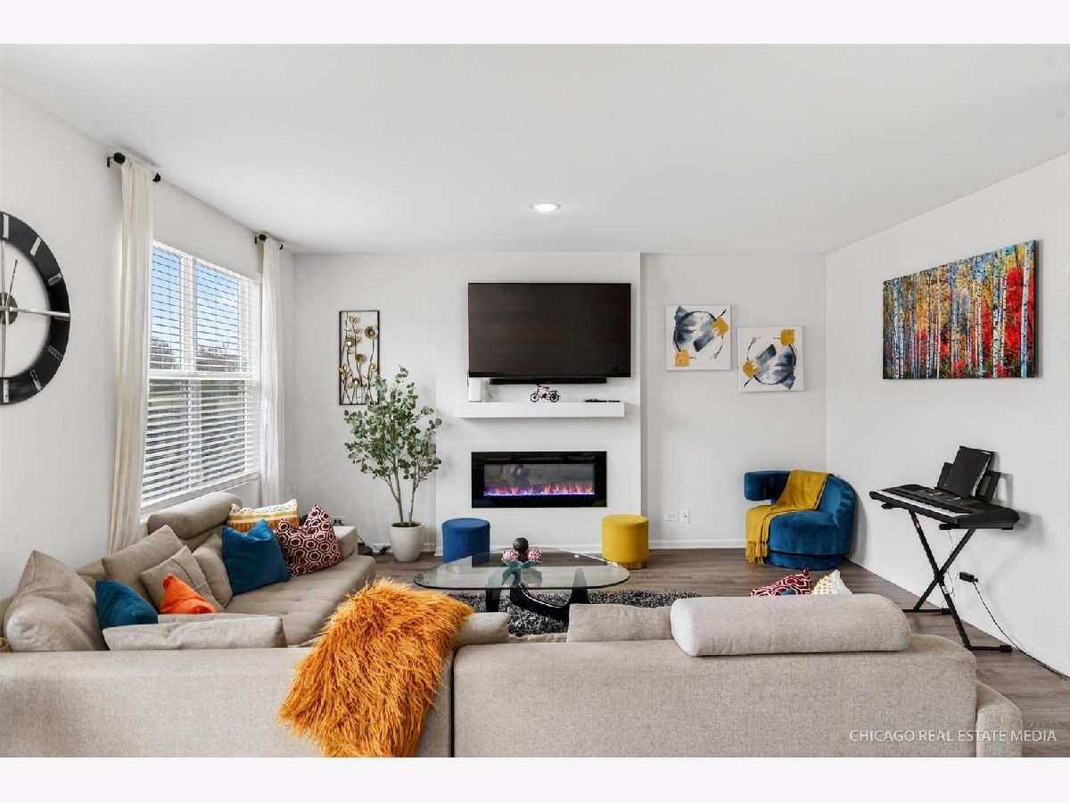 Welcome to this gorgeous 4-bedroom, 2.5-bathroom 'Holcombe' model in the sought-after Parkside at Cambridge Lakes. This home features 9' ceilings and luxury vinyl plank flooring throughout the entire residence. The main level offers a bright, open-concept layout connecting the living area to a family room anchored by an electric fireplace. The gourmet kitchen is a chef's dream, boasting 42" shaker cabinets, quartz countertops, stainless steel appliances, and a sleek stainless-steel hood. A large walk-in pantry provides ample storage, while the adjacent dining area opens to a spacious, fully fenced backyard-an outdoor oasis featuring a storage shed and plenty of space for a lush garden or vegetable planting. The second floor serves as a true retreat, boasting a grand primary suite with a dual-vanity bath and an oversized walk-in closet. Three secondary bedrooms offer plenty of space, while the dedicated laundry room with tankless water heater adds a practical, modern touch. The insulated full basement provides a blank canvas for your finishing touches. The two-car garage features a dedicated 240V Level 2 EV-ready outlet-perfect for rapid charging; simply plug in your personal charging cable and go! (Note: Tesla Wall Connector hardware is not included). Experience the premier lifestyle at Parkside at Cambridge Lakes, where residents enjoy a clubhouse, fitness center, gym, indoor soccer and volleyball courts, lounge plus outdoor recreation like swimming pools, baseball & soccer fields, parks, ponds, and scenic trails. This home offers easy access to major highways, shopping, dining, and the famous Goebbert's Pumpkin Farm! Schedule your showing today-this one won't last!
