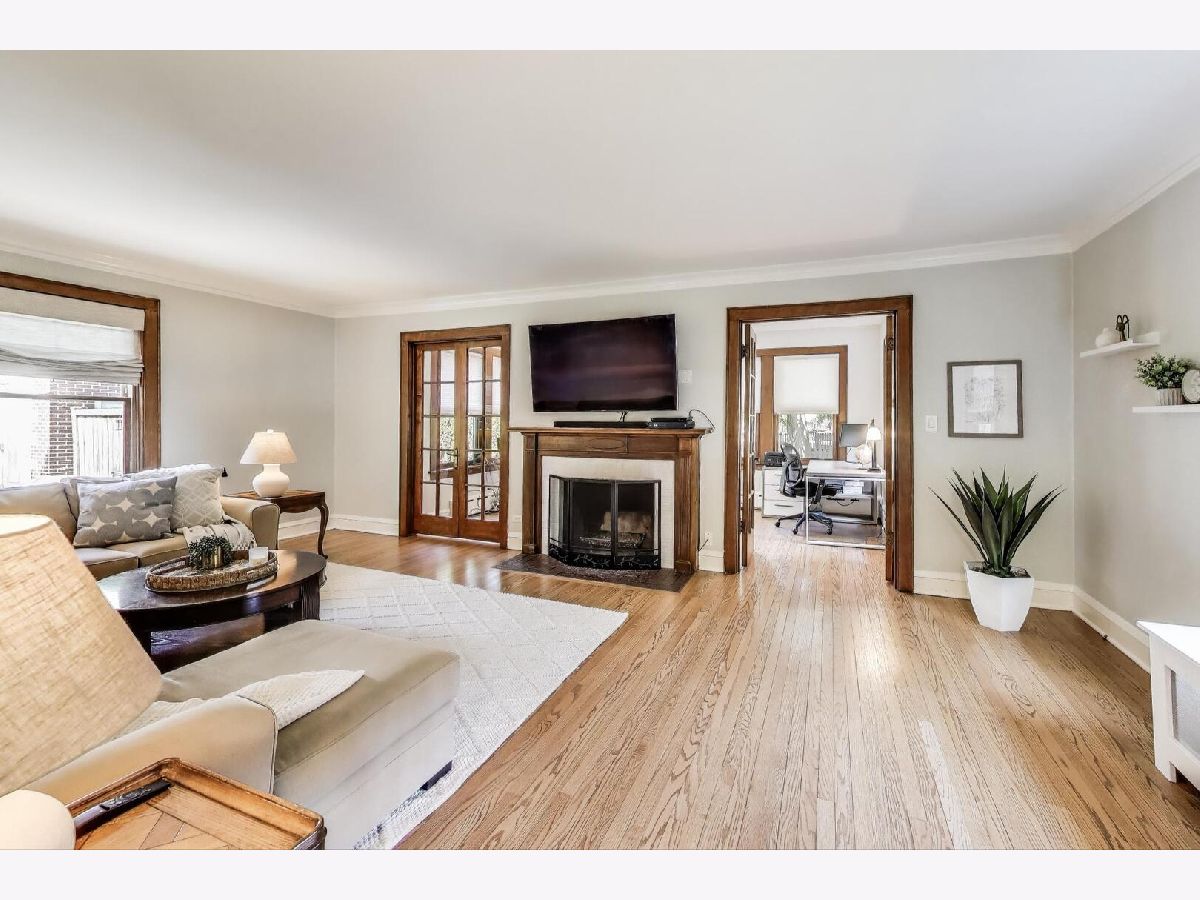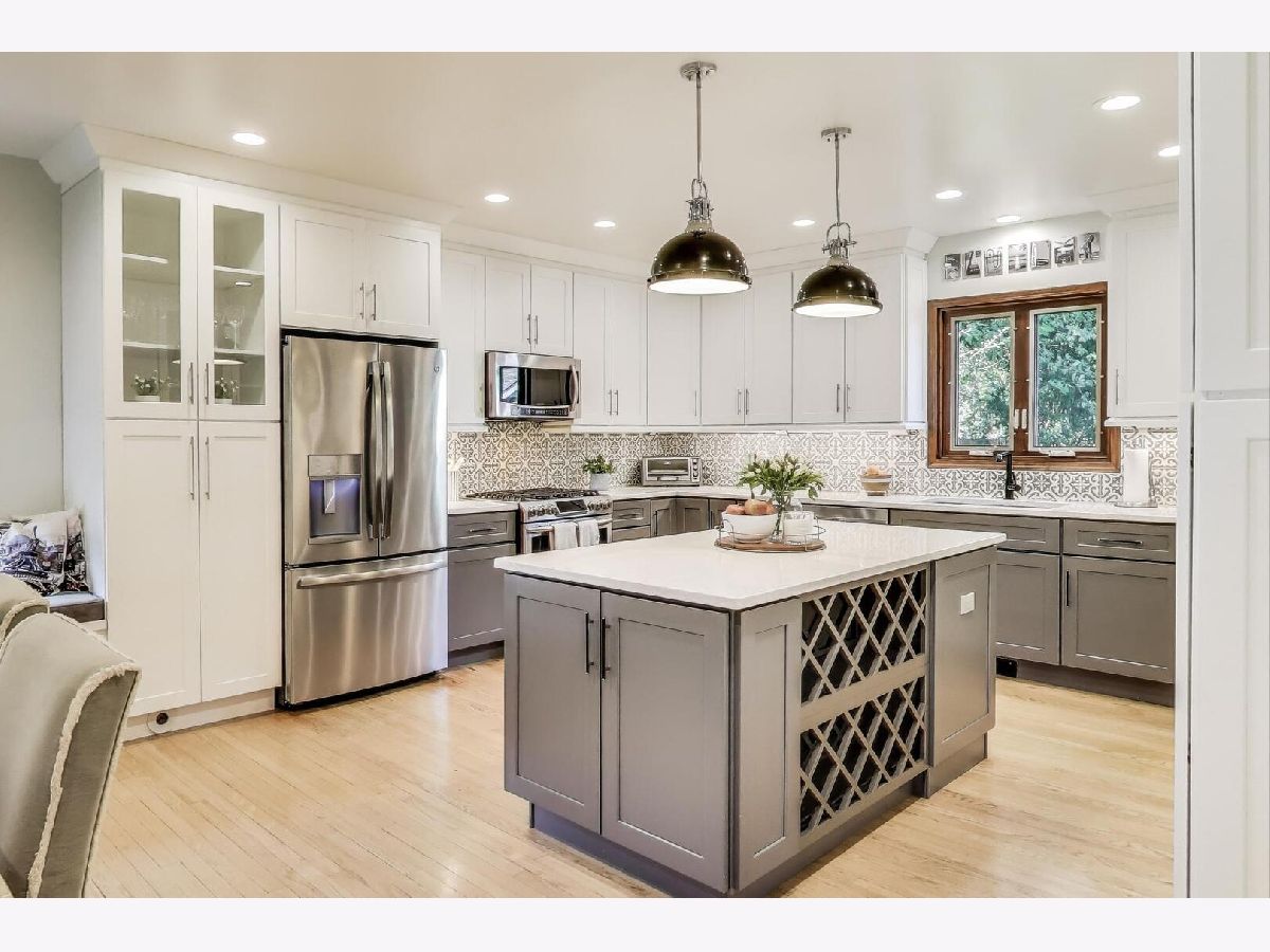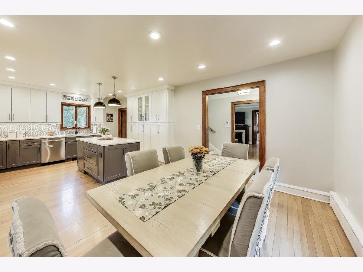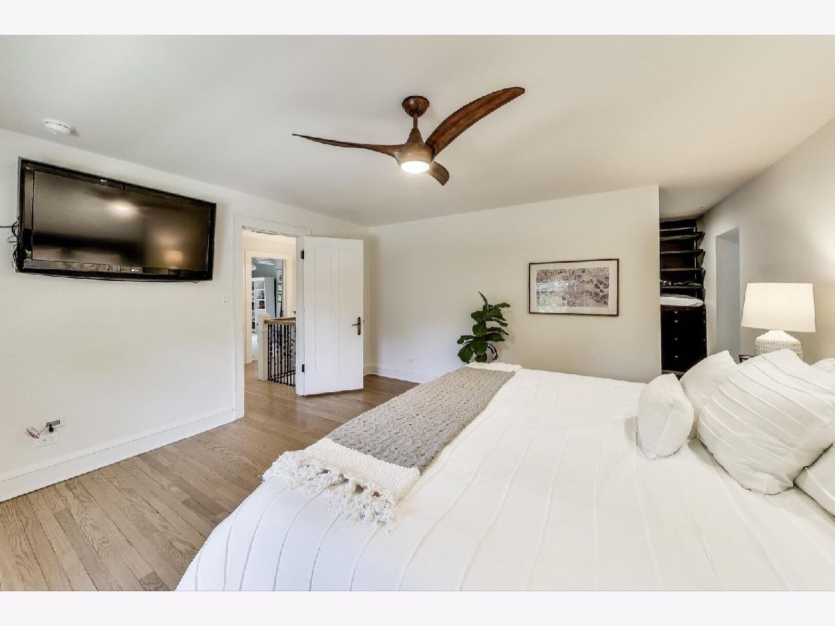 This beautifully renovated (2019) classic red brick Colonial home blends timeless charm with modern comfort. Set on an expansive 98x150 lot, it features an open, sun-filled white kitchen with abundant cabinetry, quartz counters, stainless steel appliances, and real oak hardwood floors throughout. A large open dining space is conveniently in ktichen room. Upstairs, spacious bedrooms include a stunning renovated primary suite with a huge walk-in closet & spa-inspired bath-complete with radiant heated floors, a deep soaking tub, and a frameless glass shower with sprays. The main floor offers a large living room with a wood-burning fireplace and an adjacent office with doors for privacy-perfect for working from home. The finished basement expands your living space with a full bath, generous closets, upgraded laundry, and even an extra fridge and freezer. Dual-zoned heating (radiant + gas forced air) & Space Pak and Cental A/C with Nest Thermostats ensure year-round comfort. Outside, enjoy a fenced backyard with patio space and a newer hot tub, ideal for entertaining or relaxing. The huge fenced in side yard will be the envy of all your neighbors and dog owners. The oversized 2.5-car garage features soaring ceilings and attic storage. Truly a move-in ready home with modern updates, thoughtful details, and exceptional value. A quick walk or 5 minute bike ride to downtown Highland Park's amazing shops, restaurants, cafes, gyms, and the Metra Train line too.