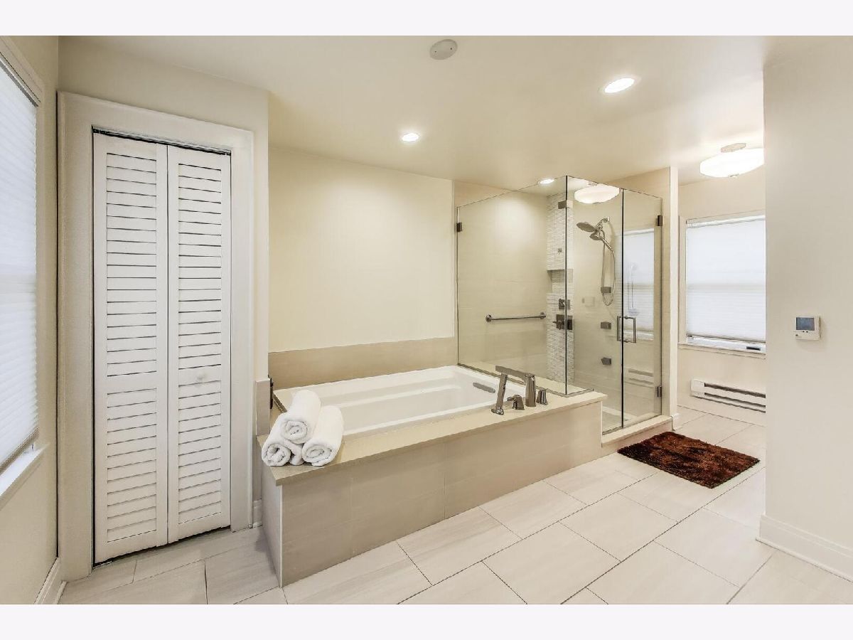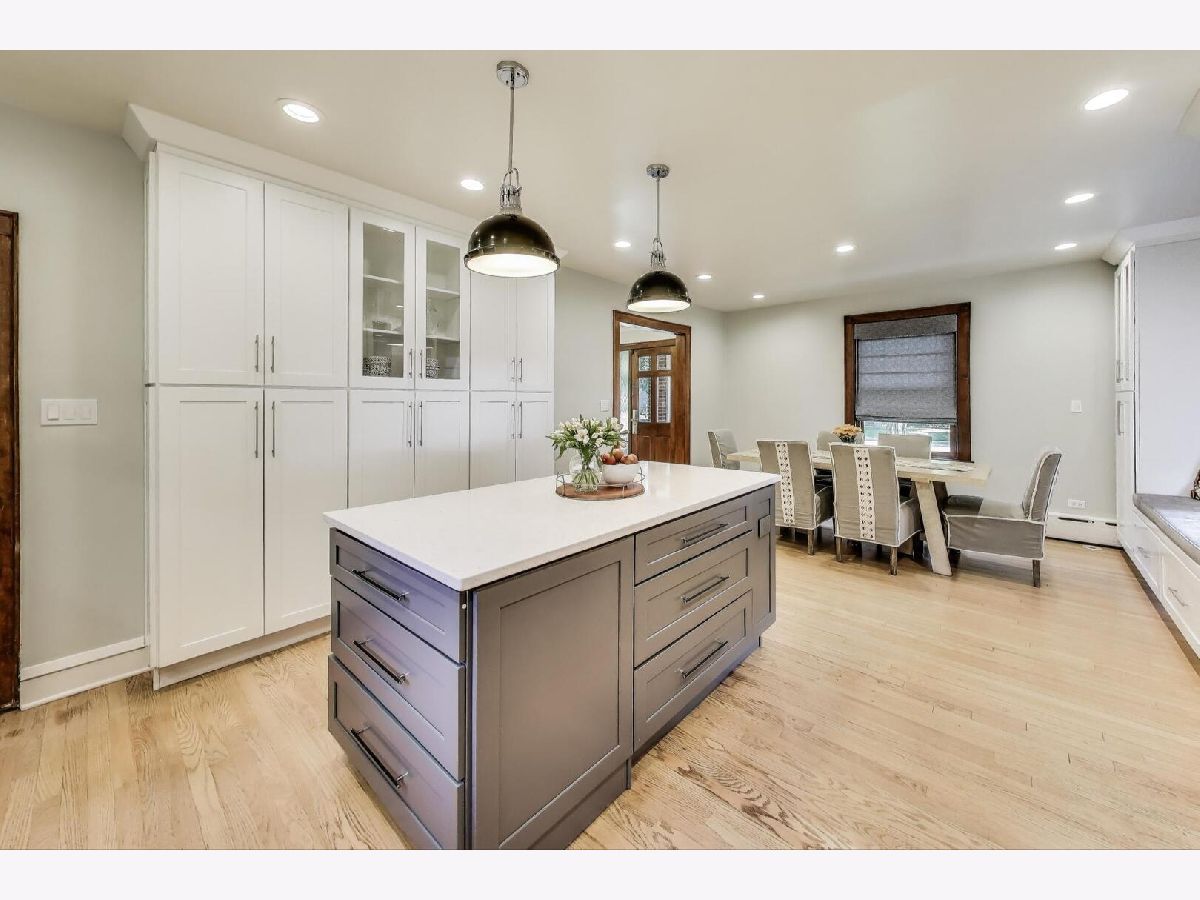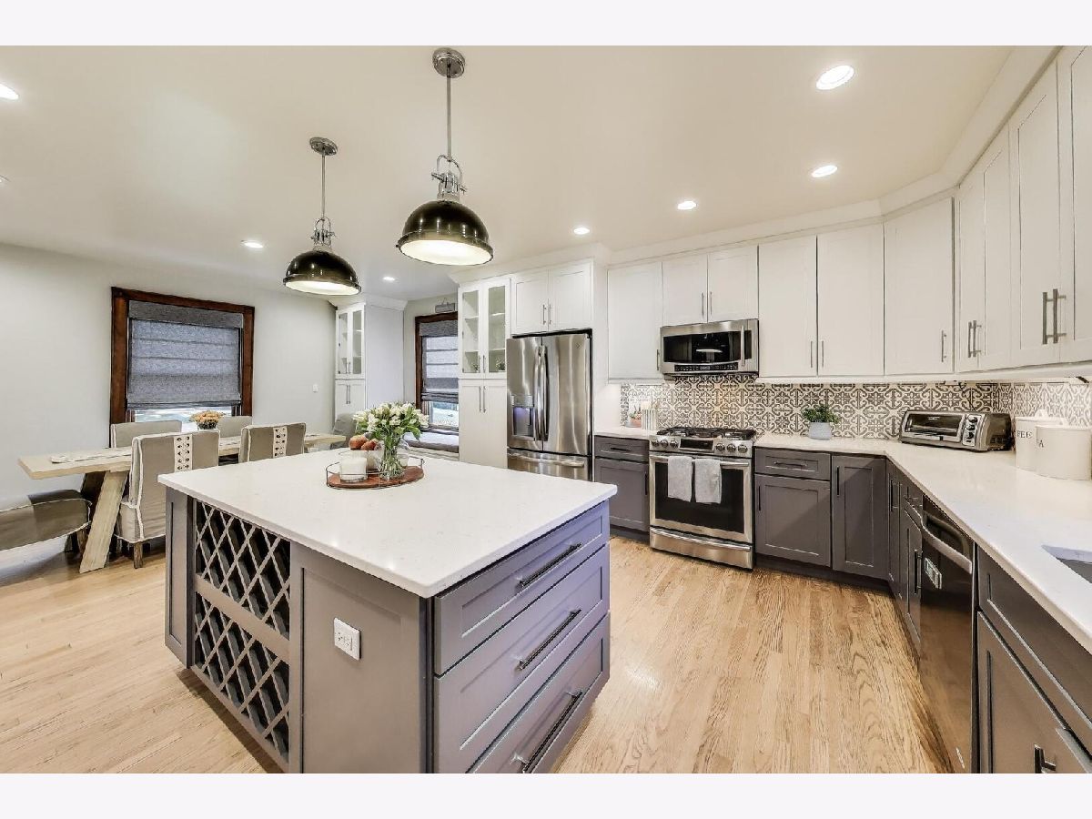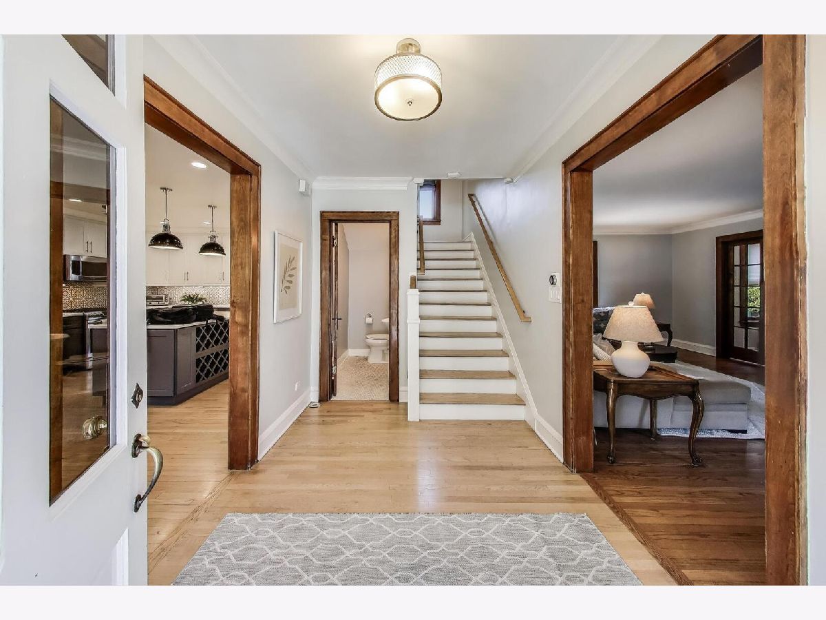 This beautifully renovated (2019) classic red brick Colonial home blends timeless charm with modern comfort. Set on an expansive 98x150 lot, it features an open, sun-filled white kitchen with abundant cabinetry, quartz counters, stainless steel appliances, and real oak hardwood floors throughout. A large open dining space is conveniently in ktichen room. Upstairs, spacious bedrooms include a stunning renovated primary suite with a huge walk-in closet & spa-inspired bath-complete with radiant heated floors, a deep soaking tub, and a frameless glass shower with sprays. The main floor offers a large living room with a wood-burning fireplace and an adjacent office with doors for privacy-perfect for working from home. The finished basement expands your living space with a full bath, generous closets, upgraded laundry, and even an extra fridge and freezer. Dual-zoned heating (radiant + gas forced air) & Space Pak and Cental A/C with Nest Thermostats ensure year-round comfort. Outside, enjoy a fenced backyard with patio space and a newer hot tub, ideal for entertaining or relaxing. The huge fenced in side yard will be the envy of all your neighbors and dog owners. The oversized 2.5-car garage features soaring ceilings and attic storage. Truly a move-in ready home with modern updates, thoughtful details, and exceptional value. A quick walk or 5 minute bike ride to downtown Highland Park's amazing shops, restaurants, cafes, gyms, and the Metra Train line too.