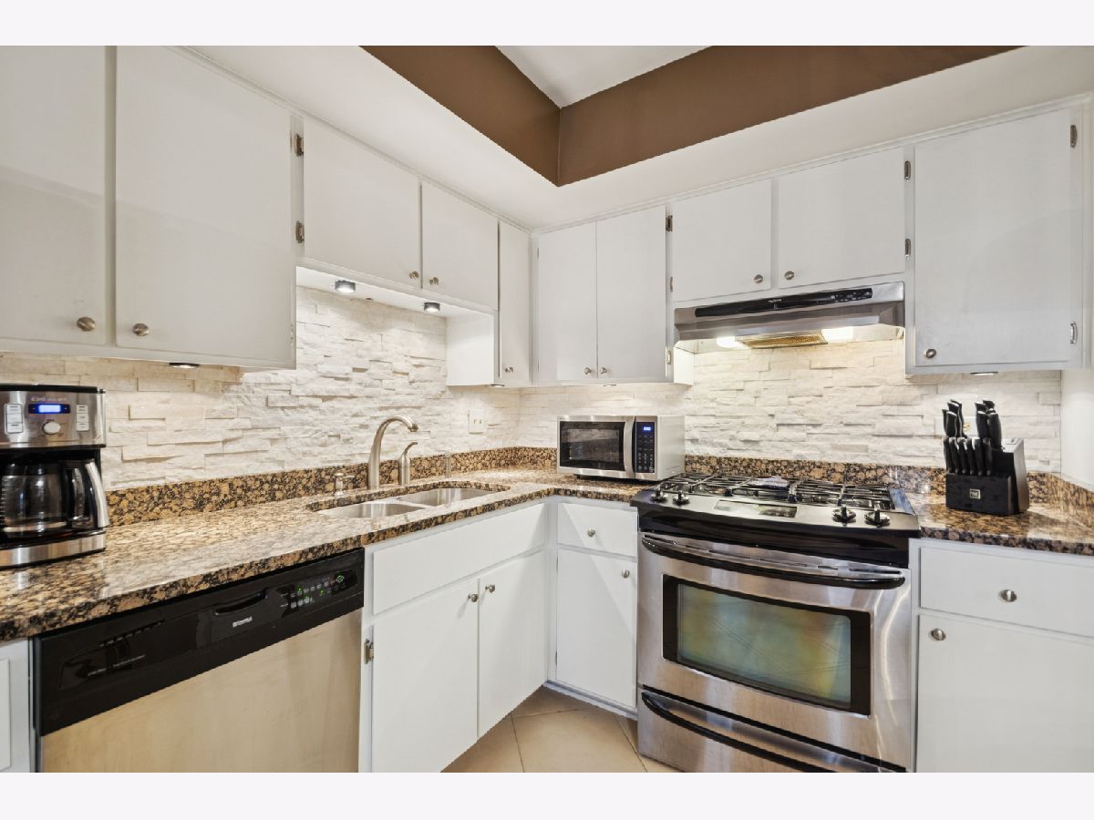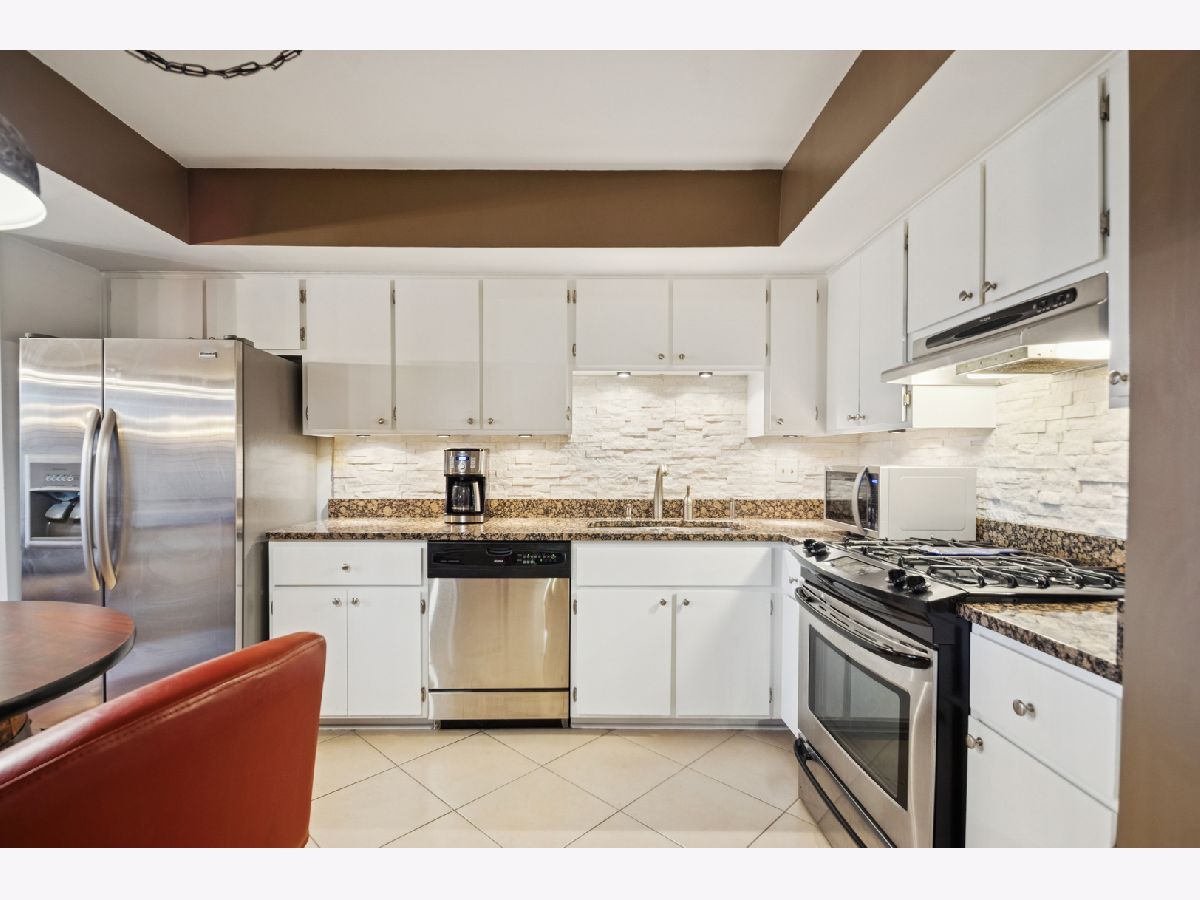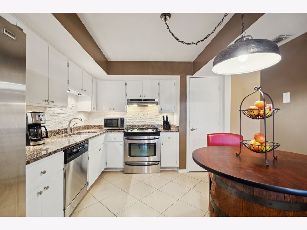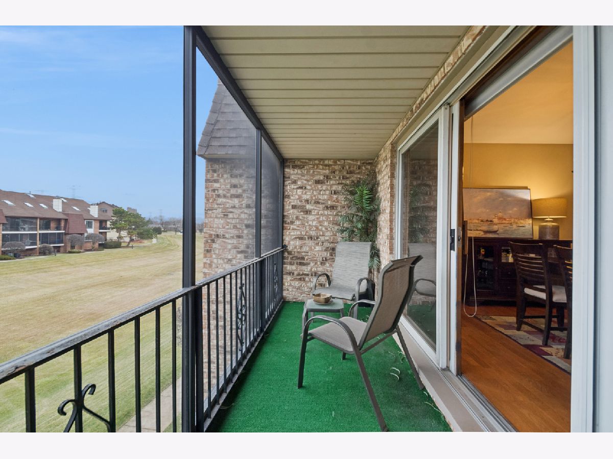 Step into this light filled, stunning GOLFVIEW 2B/2B 2nd floor condo with a 2-car attached tandem HEATED GARAGE. 2-separate huge locked storage closet areas. Enjoy serene evenings on your private, screened-in balcony. Updated kitchen features white cabinets, modern backsplash, stainless steel appliances, pantry closet, and granite countertops. Ample space for a dining area. Enjoy the luxury of having a separate laundry room with a newer washer & dryer. Warm up this winter next to the cozy fireplace in the living room, hardwood floors throughout. Large master suite features double closets, and a private bathroom with a shower. Freshly painted and newly installed HVAC July 2025. Beautifully maintained in move-in condition and in a highly desired location close to shopping, restaurants and all major expressways.