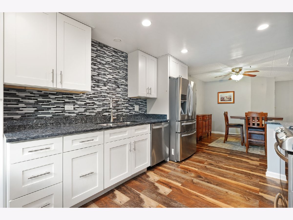 Welcome home to this beautifully updated first floor, end unit condo in the sought after Orlan Brook neighborhood. Step inside to an open concept layout filled with natural light from the west and south facing windows. The inviting living room features custom built-in shelving with accent lighting framing the cozy wood burning fireplace, perfect for relaxing evenings. The dining area flows seamlessly into the updated kitchen, which offers a large peninsula with breakfast bar, granite countertops, stainless steel appliances, and shaker cabinets. The spacious primary suite includes a walk-in closet with custom organizer and a private ensuite bath. A second bedroom, full bath, and convenient laundry room with extra storage add even more comfort. Recent upgrades include new siding and gutters in 2023, a new air conditioner and sliding glass door in 2024, and a brand new roof in 2025. Additional improvements are also being made with high speed internet currently being installed in the backyard. The oversized one car garage provides plenty of storage, while the private patio opens to a wraparound green space, creating the perfect spot to enjoy the outdoors. Residents of Orlan Brook enjoy a clubhouse with a party room, jacuzzi, fitness center, and both indoor and outdoor pools. The HOA takes care of lawn care and snow removal, making this home truly move-in ready and maintenance-free! This ideal location places you near Centennial Park, Orland Square Mall, and numerous dining options. Easy access to the Metra and I-80 makes commuting a breeze. Do not miss the opportunity to make this exceptional home yours.