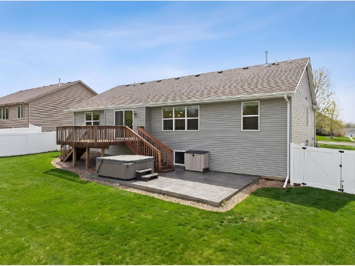 Built in 2021, this like-new modern ranch home offers spacious single-level living and is move-in ready. The open-concept main level features three bedrooms and two full bathrooms with an abundance of natural light and stylish finishes throughout. The kitchen is equipped with granite countertops, sleek stainless steel appliances and a generous size island making it the perfect place to cook and entertain. If the nearly 2,000 square foot main level isn't enough, the basement has limitless potential with an additional bathroom rough-in, finished bedroom, and plenty of storage space. Step outside and enjoy the deck and newly laid concrete patio, ideal for outdoor dining and relaxing. The recently installed white vinyl privacy fence creates a secluded atmosphere to enjoy your time outdoors. Hot tub, water softener, and filtration stays with the property. 3-car garage. Immediate occupancy possible.