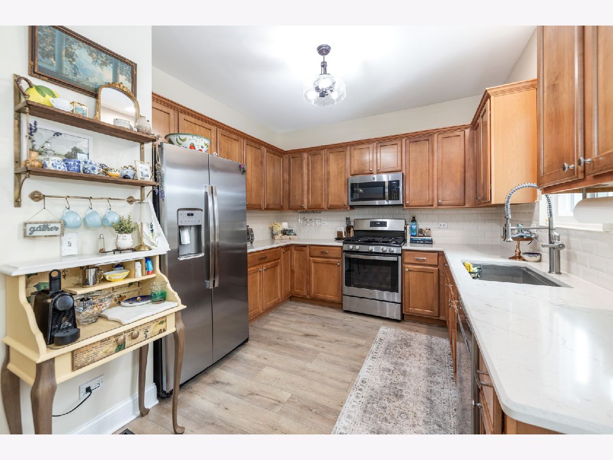 Beautifully Updated Duplex with Extensive Recent Improvements! This meticulously maintained duplex offers modern updates, quality finishes, and peace of mind with major system upgrades already completed. The home features brand new vinyl plank flooring thoughout, extensive molding throughout complemented by stylish 5-inch baseboards creating a cohesive and contemporary look in every room. The kitchen is functional and elegant, showcasing quartz countertops and a classic subway tile backsplash-perfect for everyday living and entertaining. Both bathrooms have been renovated, including a guest bath updated in 2024 and a stunning primary bath renovation completed in 2025. Additional recent upgrades include a fully renovated laundry room, fresh interior paint throughout-including basement ceilings and walls. Comfort and efficiency are prioritized with a new furnace (2021), new air conditioner (2022), a new auxiliary hot water tank, and radon mitigation. Major structural improvements include new roof (2023), all new triple-pane windows, a new patio sliding door, and a sump pump with backup battery ejector for added protection. This duplex is truly move-in ready!!