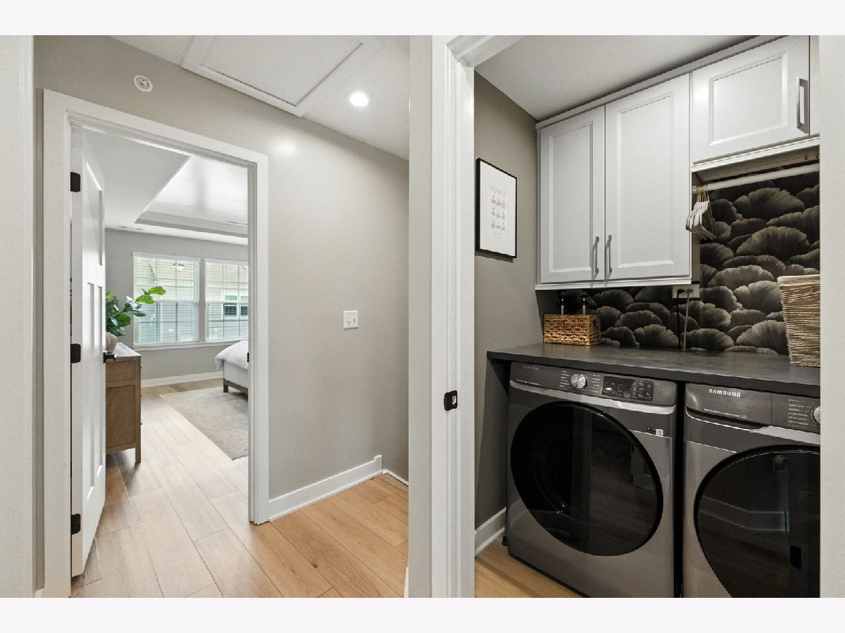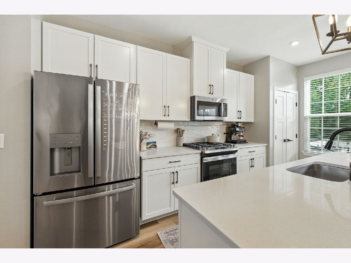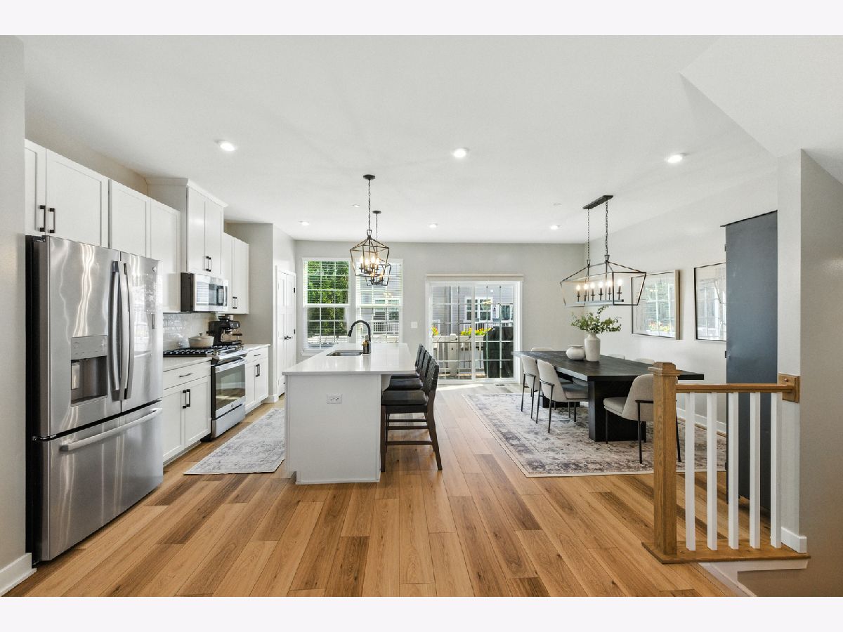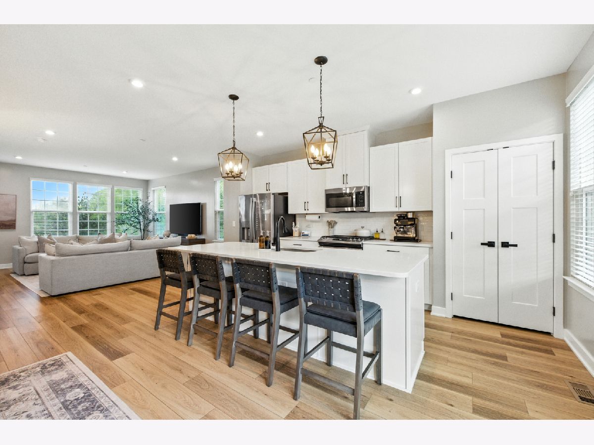 Stunning Designer End-Unit Townhome - Just Minutes from Downtown Lake Zurich. Built in 2022 and thoughtfully upgraded in 2025, this home offers a perfect blend of modern sophistication and architectural elegance. With 3 spacious bedrooms, 4 bathrooms, and a finished basement, every detail has been elevated with designer touches. Step inside to an open, bright, and airy main level where the kitchen, dining, and living areas flow seamlessly together. The gourmet kitchen features sleek quartz countertops, an oversized island with new pendant lighting, a brand-new added GE 5-burner gas range, and just upgraded cabinet hardware. A new statement designer chandelier highlights the dining area, while the living room boasts an abundance of windows and ample space for oversized furniture-ideal for entertaining. All of this is set over the just installed brand-new luxury vinyl plank flooring throughout the entire home, including custom staircase finishes. The spacious balcony on the main level also offers a space for outdoor enjoyment. Upstairs, the primary suite feels like a boutique hotel, complete with tray ceilings and new designer wallpaper accents. Relax in the en-suite spa-inspired bathroom, with a double vanity and large walk-in shower. A spacious walk-in closet completes the retreat. Two additional bedrooms with fresh updates, wallpaper accents, and walk-in closets, share a stylish updated full bath with a newly added vanity. The convenient second-floor laundry room includes new top-of-the-line Samsung washer and dryer, custom cabinetry, shelving, and chic wallpaper, all just added for a contemporary touch. The finished lower level provides flexible space for a home office, gym, or media room, plus an additional half bathroom-making this home as functional as it is beautiful. Freshly painted walls, ceilings, trim, and baseboards throughout the entire home make for clean lines and organic ambiance. The Oversized 2.5-car garage comes with ample storage and space. Perfectly located just minutes from Lake Zurich's downtown, including Breezewald Park, dining, shopping, fishing, swimming at the beach and the Metra train. This rare home combines luxury, convenience, and style. A home that truly defines the term move-in ready. Blending high-end designer living with the comfort of a year-round vacation retreat, this is an opportunity to accomplish all your home requirements.