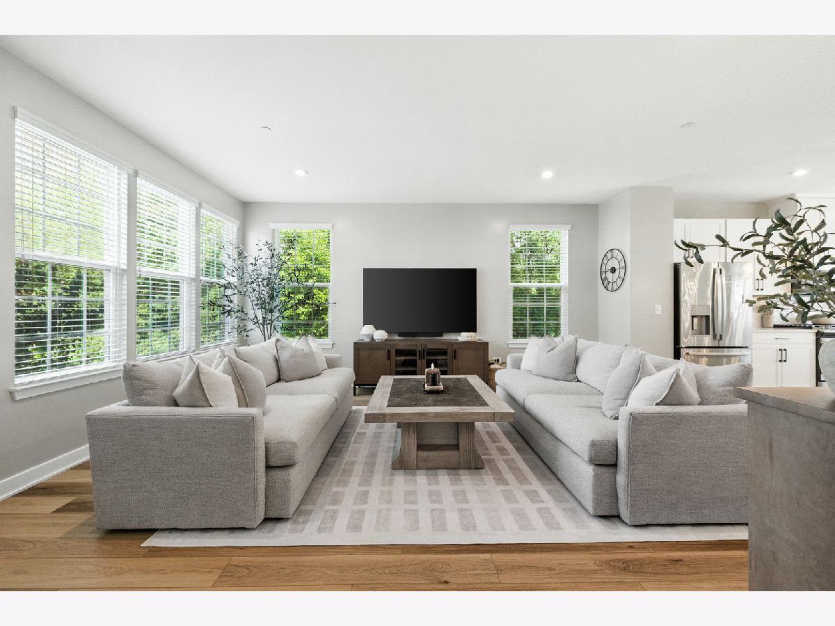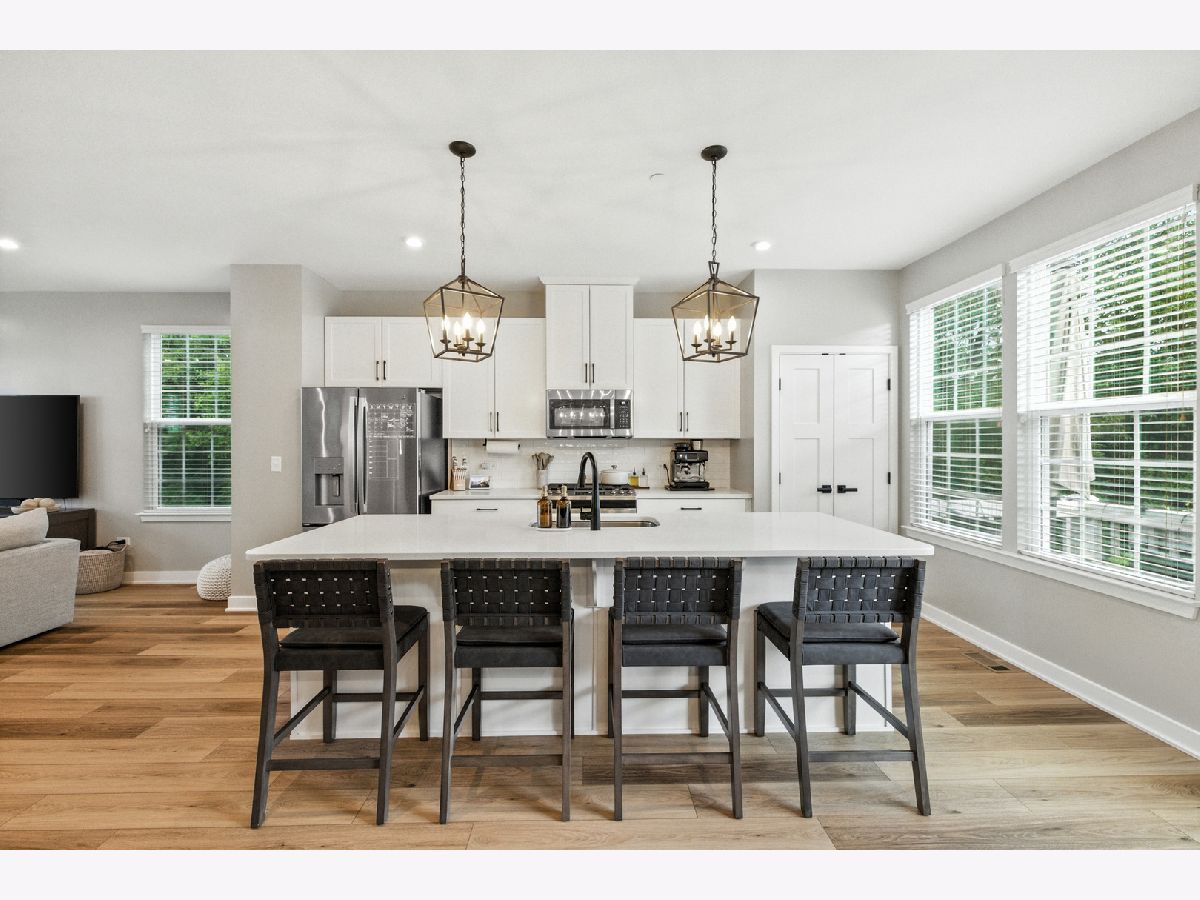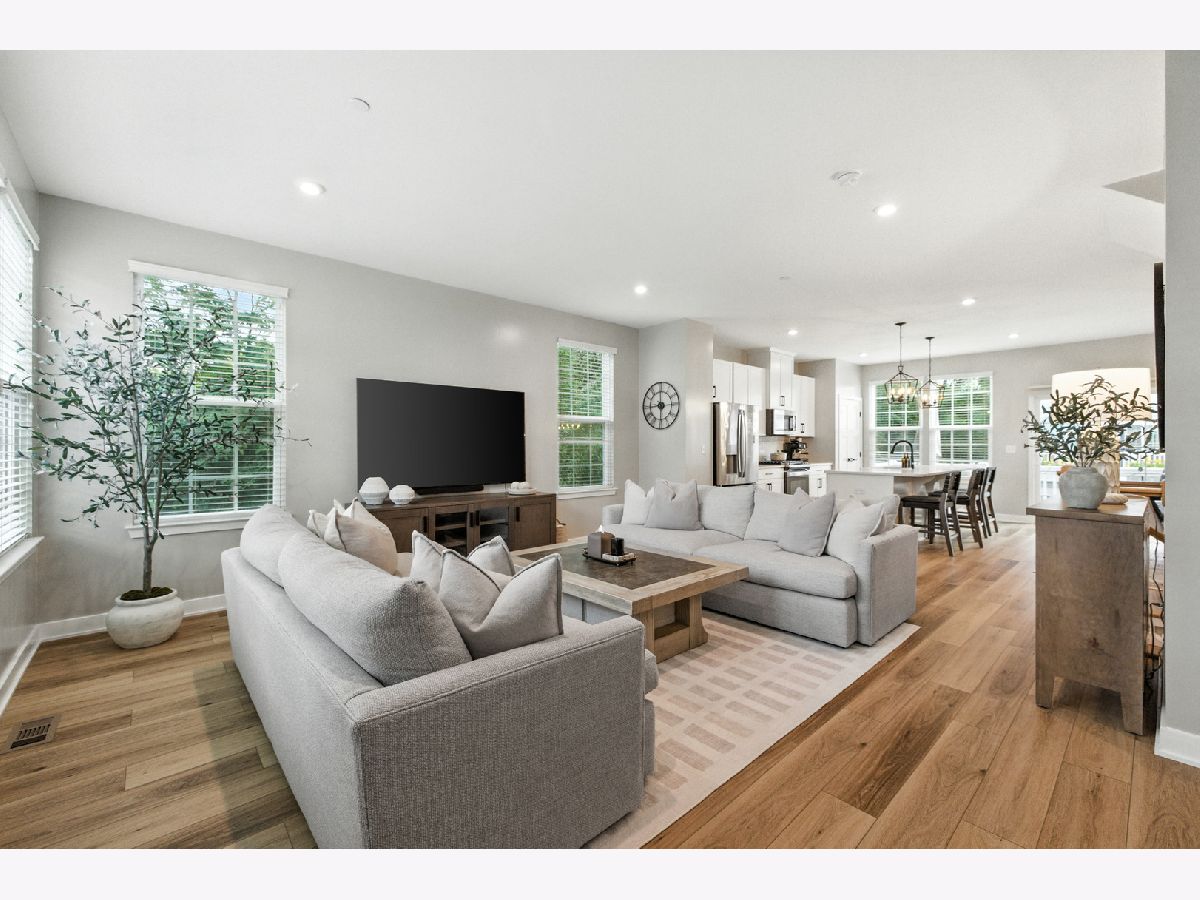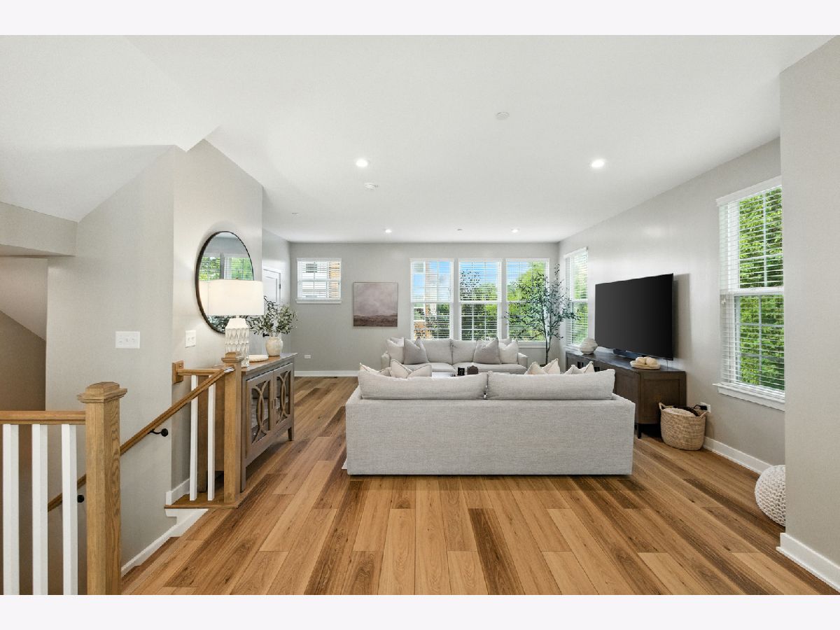 Stunning Designer End-Unit Townhome - Just Minutes from Downtown Lake Zurich. Built in 2022 and thoughtfully upgraded in 2025, this home offers a perfect blend of modern sophistication and architectural elegance. With 3 spacious bedrooms, 4 bathrooms, and a finished basement, every detail has been elevated with designer touches. Step inside to an open, bright, and airy main level where the kitchen, dining, and living areas flow seamlessly together. The gourmet kitchen features sleek quartz countertops, an oversized island with new pendant lighting, a brand-new added GE 5-burner gas range, and just upgraded cabinet hardware. A new statement designer chandelier highlights the dining area, while the living room boasts an abundance of windows and ample space for oversized furniture-ideal for entertaining. All of this is set over the just installed brand-new luxury vinyl plank flooring throughout the entire home, including custom staircase finishes. The spacious balcony on the main level also offers a space for outdoor enjoyment. Upstairs, the primary suite feels like a boutique hotel, complete with tray ceilings and new designer wallpaper accents. Relax in the en-suite spa-inspired bathroom, with a double vanity and large walk-in shower. A spacious walk-in closet completes the retreat. Two additional bedrooms with fresh updates, wallpaper accents, and walk-in closets, share a stylish updated full bath with a newly added vanity. The convenient second-floor laundry room includes new top-of-the-line Samsung washer and dryer, custom cabinetry, shelving, and chic wallpaper, all just added for a contemporary touch. The finished lower level provides flexible space for a home office, gym, or media room, plus an additional half bathroom-making this home as functional as it is beautiful. Freshly painted walls, ceilings, trim, and baseboards throughout the entire home make for clean lines and organic ambiance. The Oversized 2.5-car garage comes with ample storage and space. Perfectly located just minutes from Lake Zurich's downtown, including Breezewald Park, dining, shopping, fishing, swimming at the beach and the Metra train. This rare home combines luxury, convenience, and style. A home that truly defines the term move-in ready. Blending high-end designer living with the comfort of a year-round vacation retreat, this is an opportunity to accomplish all your home requirements.