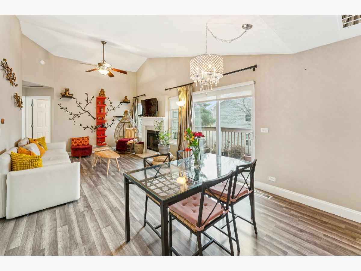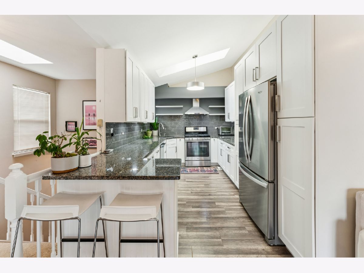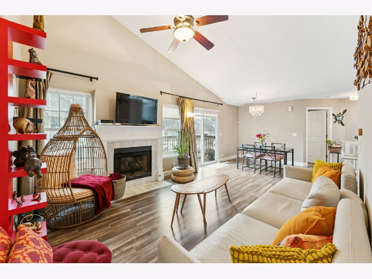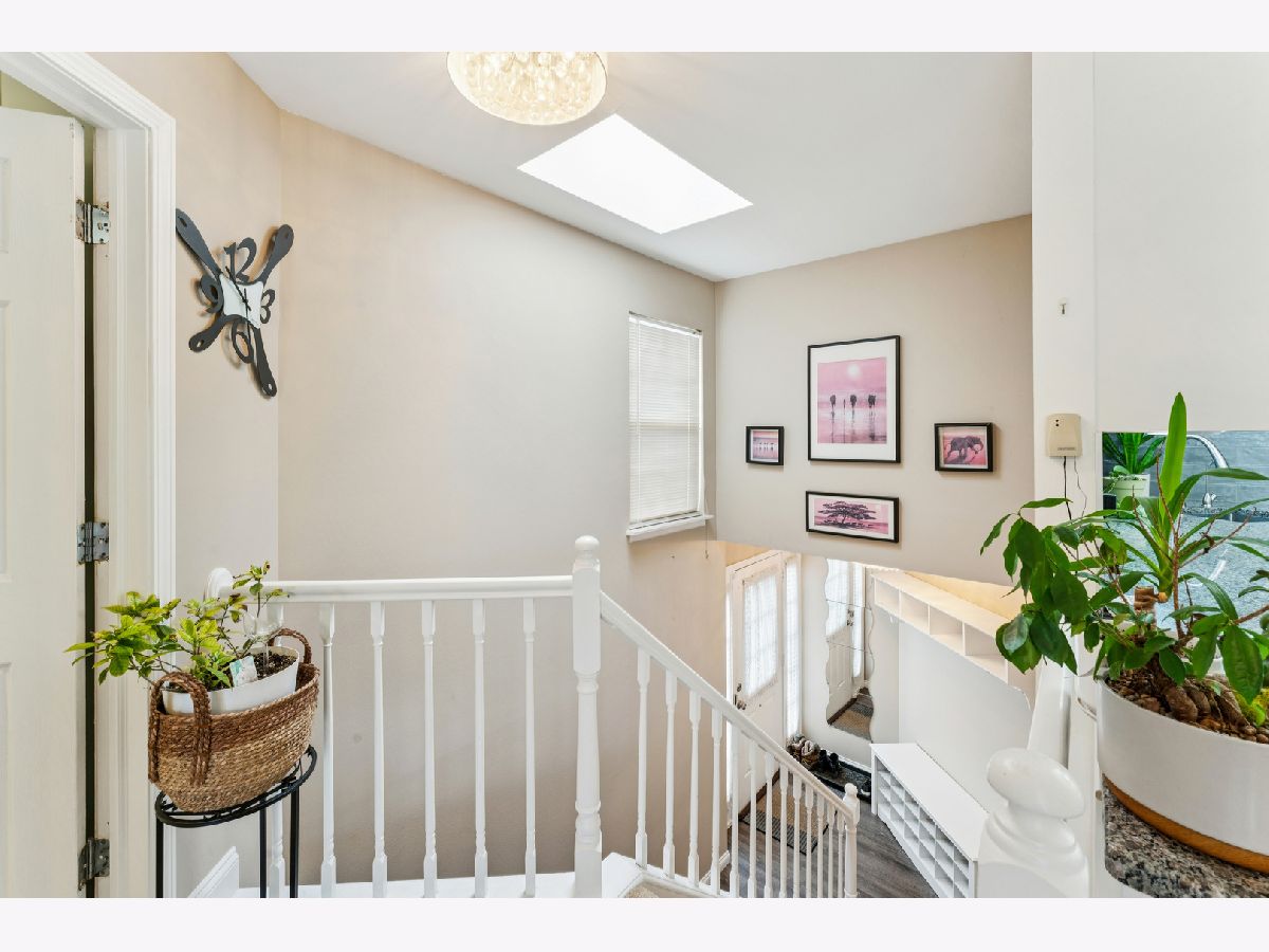 Welcome home to this beautifully updated second-floor ranch townhome in the heart of Palatine! This well-maintained 2-bedroom, 1-bath residence offers comfortable, low-maintenance living with a 1-car attached garage and a thoughtfully designed layout. Step inside to find wood laminate flooring throughout, creating a seamless and modern feel. The inviting living space is filled with natural light from three skylights and features a cozy gas fireplace, perfect for relaxing evenings at home. The updated kitchen showcases granite countertops, stainless steel appliances, and a reverse-osmosis filtered water system at the sink, ideal for everyday living and entertaining. Enjoy morning coffee or evening downtime on your private balcony, and appreciate the convenience of an in-unit utility room with a full-size washer and dryer. Additional highlights include NEW Andersen windows that comes with warranty, extra storage, and a furnace and A/C only 6 years old, offering peace of mind for years to come. Located just off Northwest Highway, this home provides unbeatable access to restaurants, grocery stores, banks, and the Metra, making commuting and daily errands effortless. A fantastic opportunity to own a move-in-ready home in a prime Palatine location with green space and walking trails