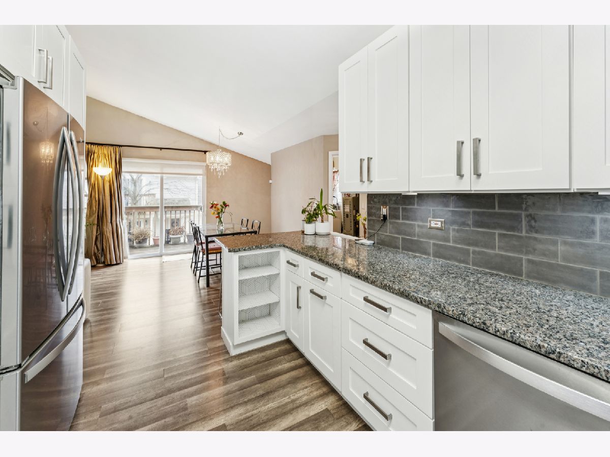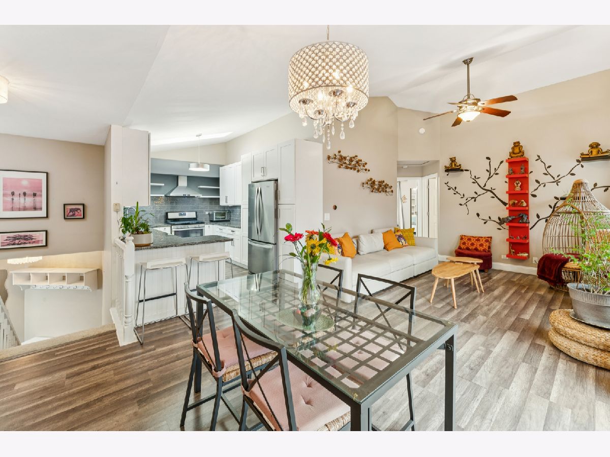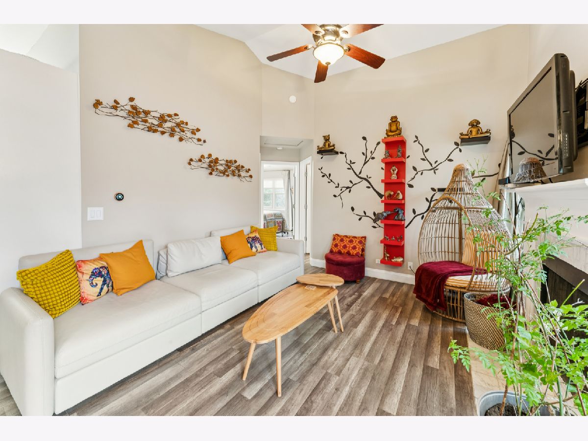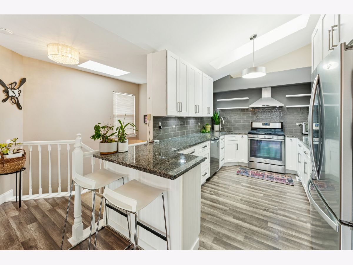 Welcome home to this beautifully updated second-floor ranch townhome in the heart of Palatine! This well-maintained 2-bedroom, 1-bath residence offers comfortable, low-maintenance living with a 1-car attached garage and a thoughtfully designed layout. Step inside to find wood laminate flooring throughout, creating a seamless and modern feel. The inviting living space is filled with natural light from three skylights and features a cozy gas fireplace, perfect for relaxing evenings at home. The updated kitchen showcases granite countertops, stainless steel appliances, and a reverse-osmosis filtered water system at the sink, ideal for everyday living and entertaining. Enjoy morning coffee or evening downtime on your private balcony, and appreciate the convenience of an in-unit utility room with a full-size washer and dryer. Additional highlights include NEW Andersen windows that comes with warranty, extra storage, and a furnace and A/C only 6 years old, offering peace of mind for years to come. Located just off Northwest Highway, this home provides unbeatable access to restaurants, grocery stores, banks, and the Metra, making commuting and daily errands effortless. A fantastic opportunity to own a move-in-ready home in a prime Palatine location with green space and walking trails