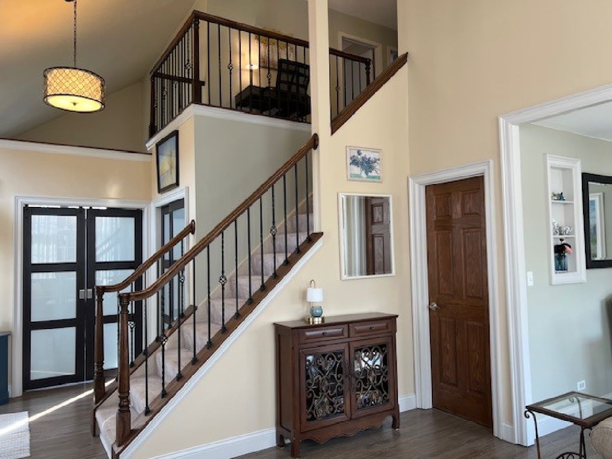 This stunning end-unit townhome offers the perfect blend of style, space and natural light. Soaring vaulted ceilings create an open, airy feel, while an abundance of oversized windows fills the home with sunshine from every angle. The inviting living area is anchored by a beautiful fireplace, adding warmth and charm to the space. A versatile den on the main floor provides the ideal space for a home office, reading nook or flex room to suit your lifestyle. The kitchen is both functional and elegant, featuring gleaming granite counters, SS appliances and a lovely bay window that creates the perfect spot for casual dining or morning coffee. There is an additional space for more formal dining. Upstairs, you'll find three spacious bedrooms, including a serene primary retreat, along with an elegant full bathroom designed with comfort and sophistication in mind. With its premium end-unit location, thoughtful upgrades, and light-filled design, this home truly stands out as a refined and comfortable place to call your own.
