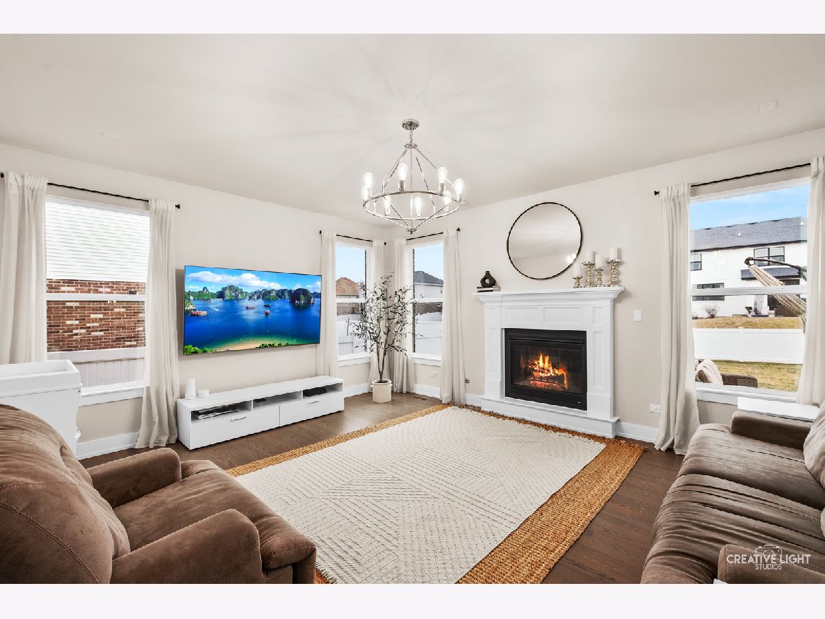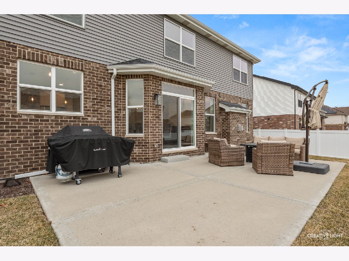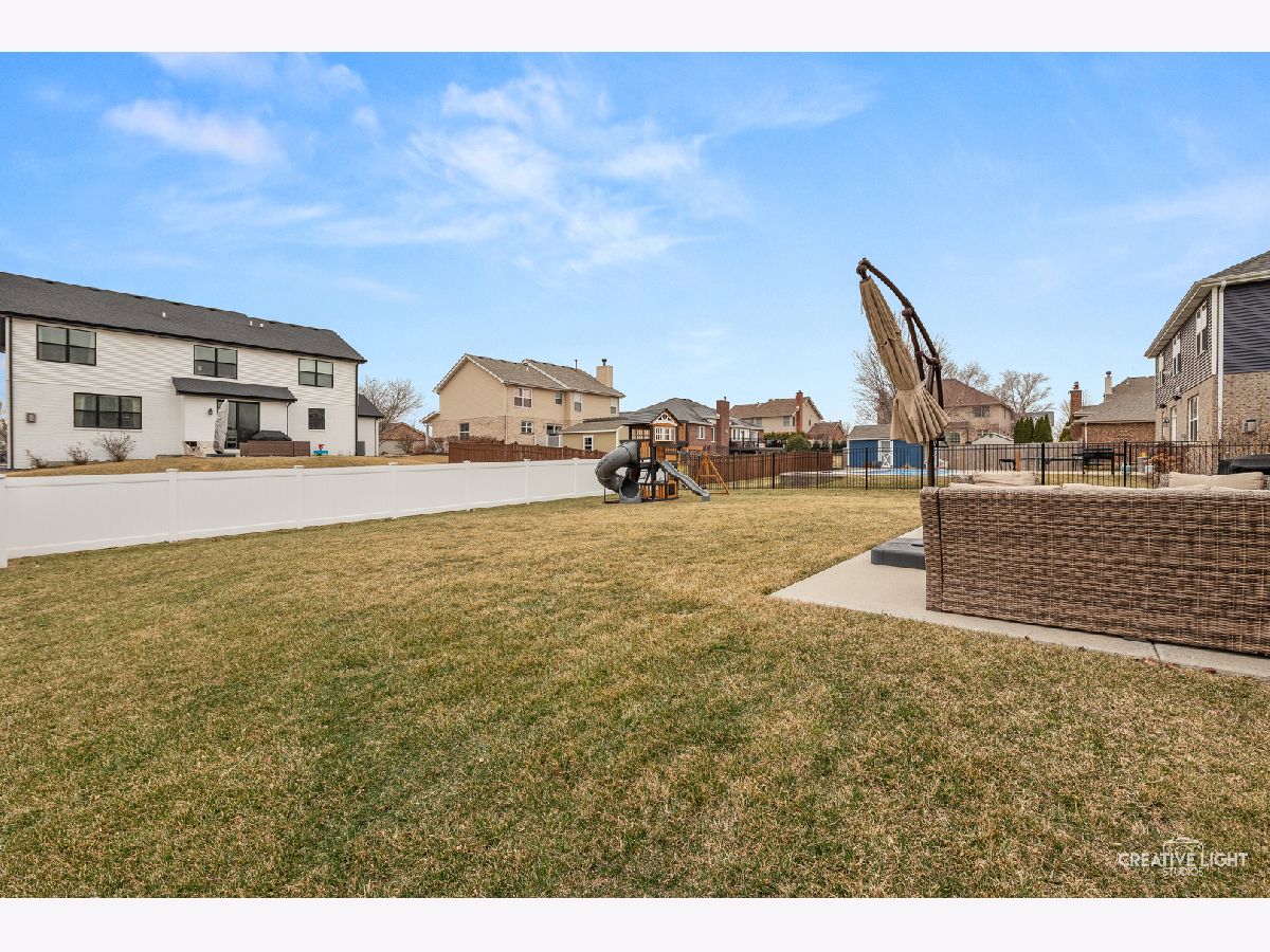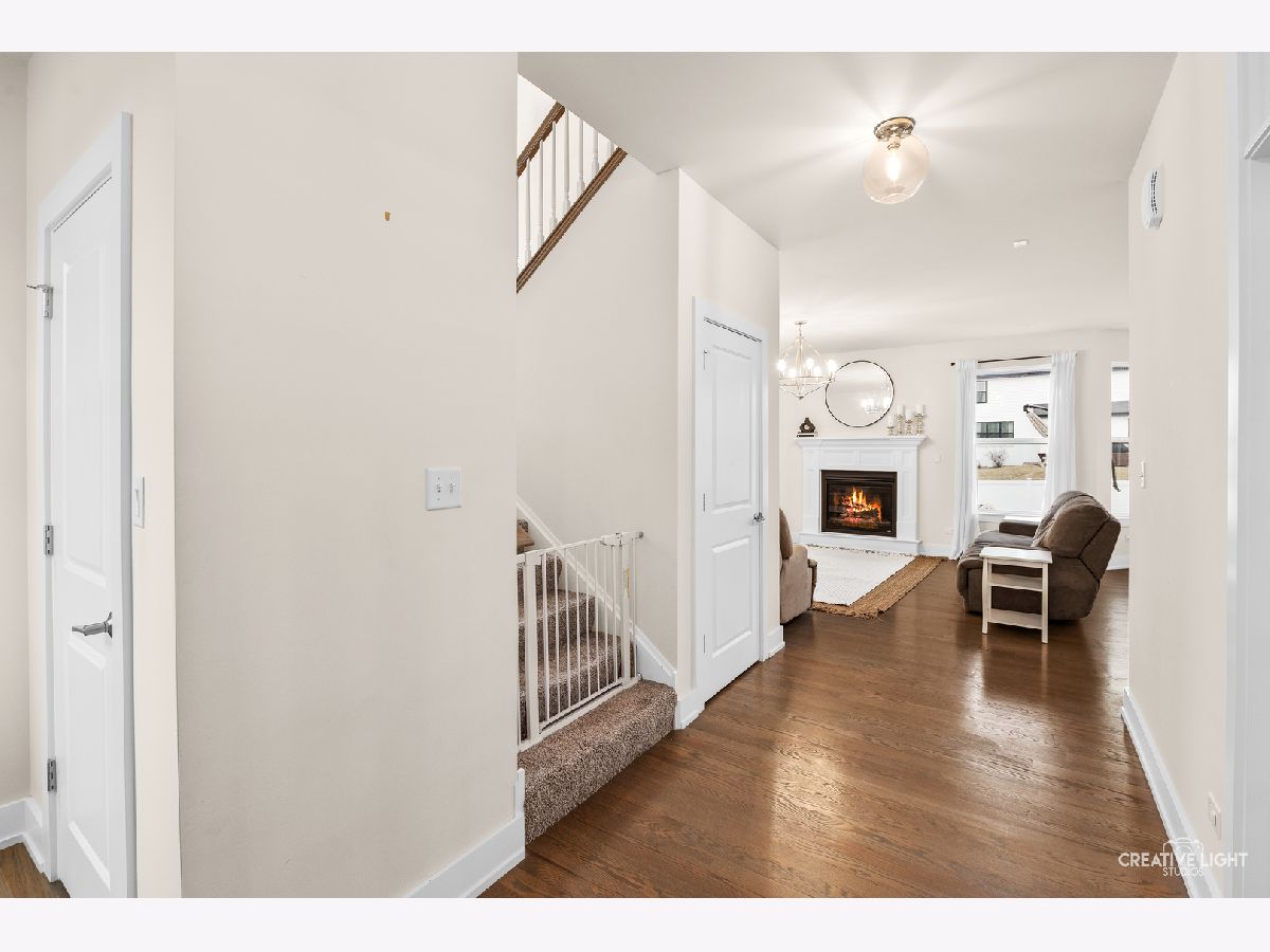 Welcome home to this beautifully maintained, light-filled 4-bedroom, 2.1-bath home designed for both everyday living and effortless entertaining! The open-concept main level features rich hardwood flooring, a cozy gas fireplace, and a private den with French doors-perfect for a home office or playroom. A thoughtfully designed mudroom, walk-in pantry, and butler's bar add both charm and function. The stunning kitchen is truly the heart of the home, showcasing abundant storage with deep drawers and 2 lazy Susans, a large center island, farmhouse sink, white cabinetry, quartz countertops, stylish backsplash, and a double oven with wall-mounted range hood-ideal for hosting and holiday gatherings. This home is fully CAT5 wired and surround-sound ready in the family room, blending comfort with modern convenience. Upstairs, you'll find spacious bedrooms, a versatile loft area, and the convenience of second-floor laundry. Both full bathrooms feature double vanities, and generous closet space throughout ensures room for everything. The 9-foot-pour basement offers excellent storage or the opportunity to finish to your liking, complete with rough-in plumbing and a water softener already in place. An oversized garage with insulated doors, a rear service door, and additional overhead storage adds even more functionality. Step outside through the kitchen slider to a 16 x 26 concrete patio-perfect for summer entertaining-overlooking a fully fenced yard. Ideally located near parks and with easy access to I-355, this home truly has it all.