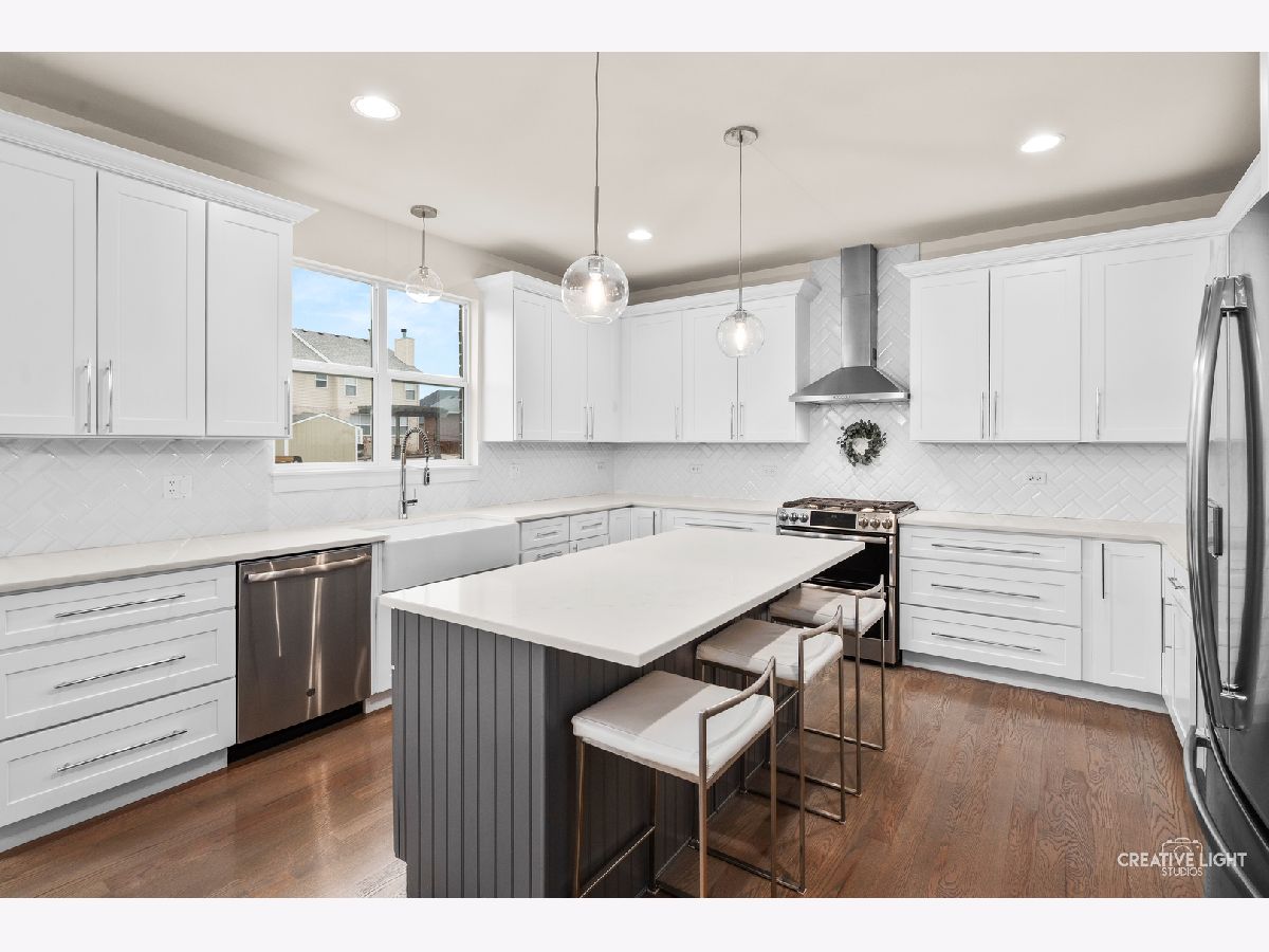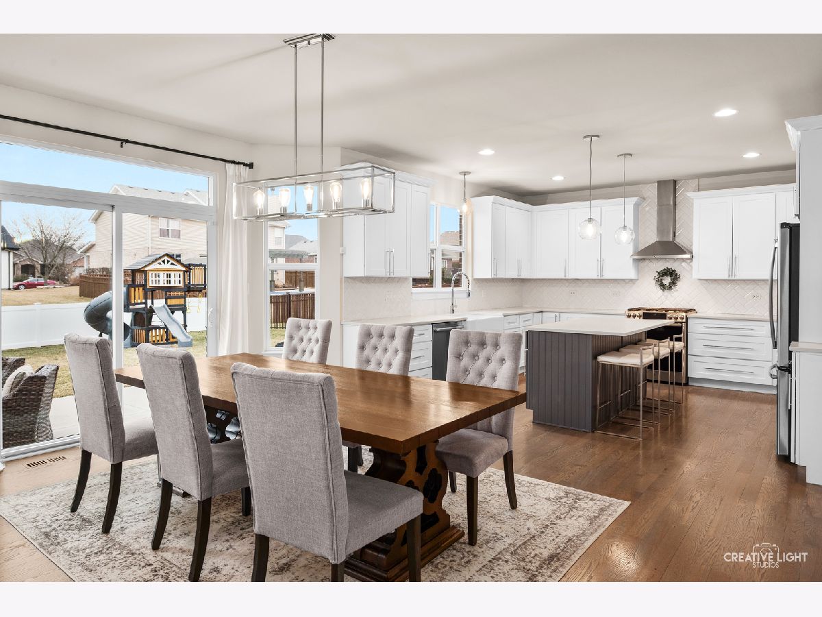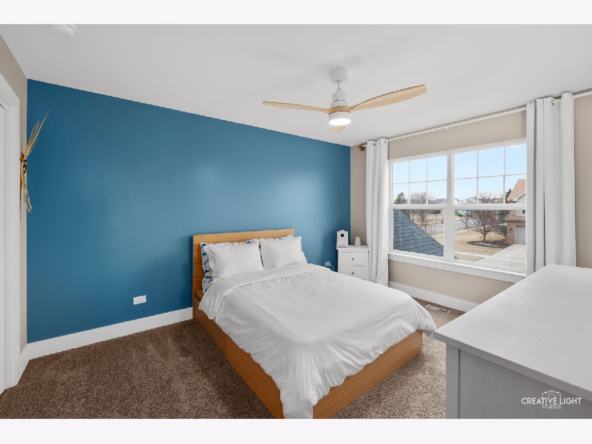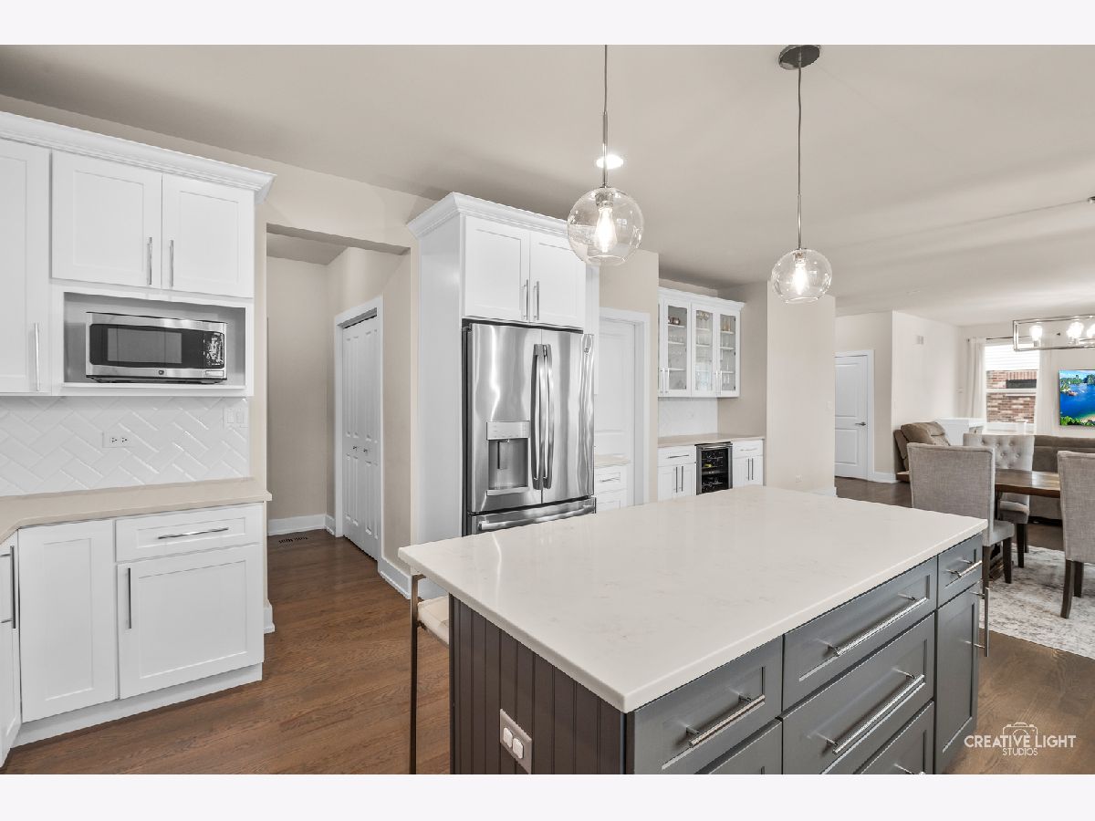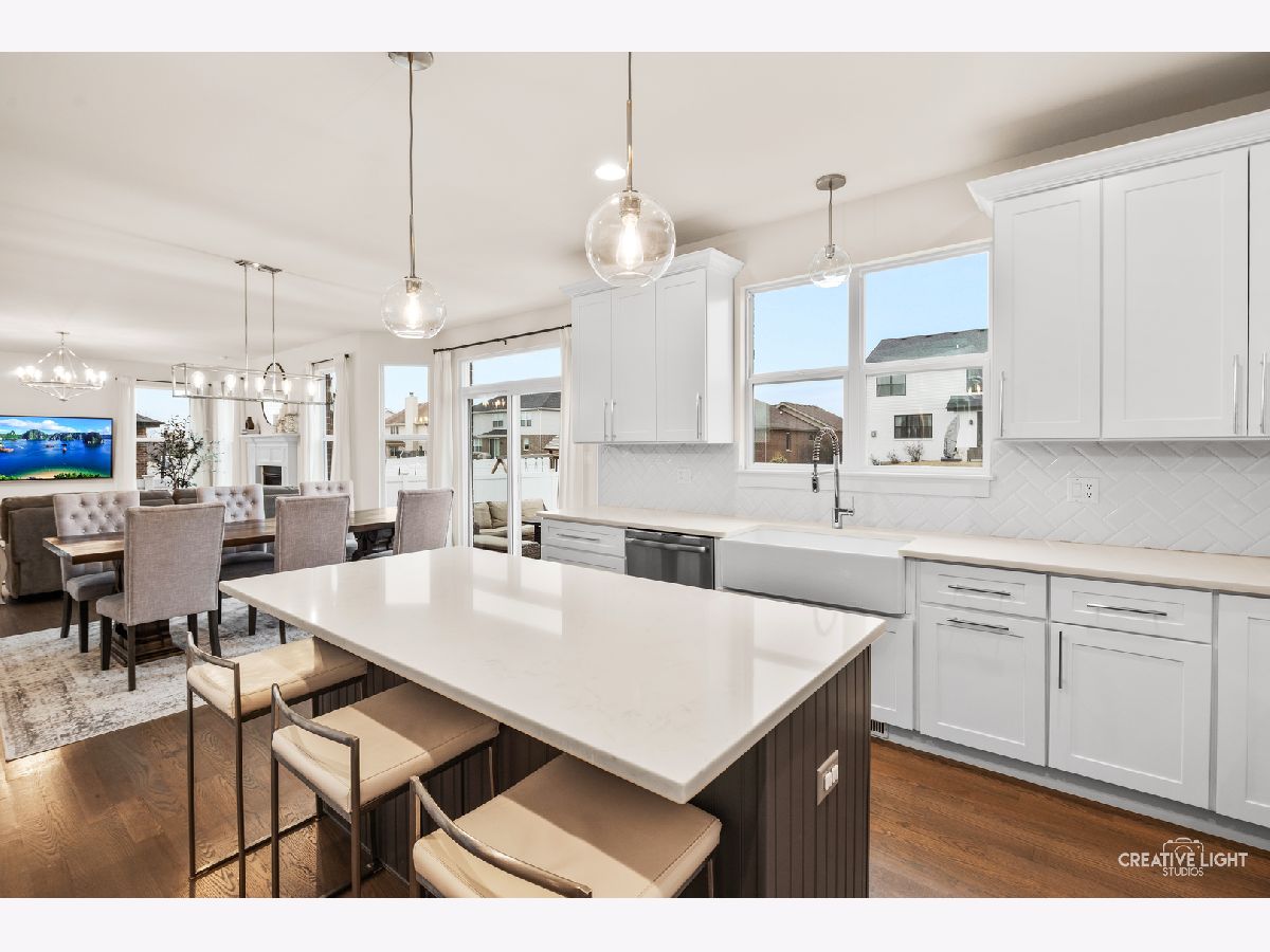 Welcome home to this beautifully maintained, light-filled 4-bedroom, 2.1-bath home designed for both everyday living and effortless entertaining! The open-concept main level features rich hardwood flooring, a cozy gas fireplace, and a private den with French doors-perfect for a home office or playroom. A thoughtfully designed mudroom, walk-in pantry, and butler's bar add both charm and function. The stunning kitchen is truly the heart of the home, showcasing abundant storage with deep drawers and 2 lazy Susans, a large center island, farmhouse sink, white cabinetry, quartz countertops, stylish backsplash, and a double oven with wall-mounted range hood-ideal for hosting and holiday gatherings. This home is fully CAT5 wired and surround-sound ready in the family room, blending comfort with modern convenience. Upstairs, you'll find spacious bedrooms, a versatile loft area, and the convenience of second-floor laundry. Both full bathrooms feature double vanities, and generous closet space throughout ensures room for everything. The 9-foot-pour basement offers excellent storage or the opportunity to finish to your liking, complete with rough-in plumbing and a water softener already in place. An oversized garage with insulated doors, a rear service door, and additional overhead storage adds even more functionality. Step outside through the kitchen slider to a 16 x 26 concrete patio-perfect for summer entertaining-overlooking a fully fenced yard. Ideally located near parks and with easy access to I-355, this home truly has it all.