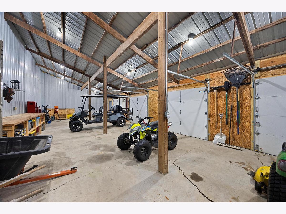 Hobby Farmers take a look! Absolutely breathtaking 4-bedroom, 2.5-bathroom raised ranch on 5 acres of land! Beautiful hardwood flooring is laid throughout the open-concept living room, kitchen, and dining room. There are plenty of entertainment spaces in this home! The laundry room is located on the main floor, making it convenient to take loads with you to the 4 main floor bedrooms. You'll fall in love with the oversized primary bedroom, walk-in closet with shelving/drawers, and private full bathroom. The primary bedroom has access out to the spacious back patio. The luxurious tiled primary bathroom features a large bathtub perfect for soaking, double sinks, and a HUGE walk-in shower that you'll never want to leave! The other 3 bedrooms all have great closet space and are carpeted. The main floor full bathroom features double sinks and closet storage. Turn the basement into your own dream basement with ample space, a wood-burning fireplace, and a utility storage room. The large, oversized 2-car garage is attached and can be accessed from the basement. It even has its own half bathroom and plenty of extra space for storage, a workspace, or whatever your heart desires! Spacious outbuilding in the back features horse stalls and side storage with garage doors. This is your DREAM HOME! Schedule your private tour today and make it your own.