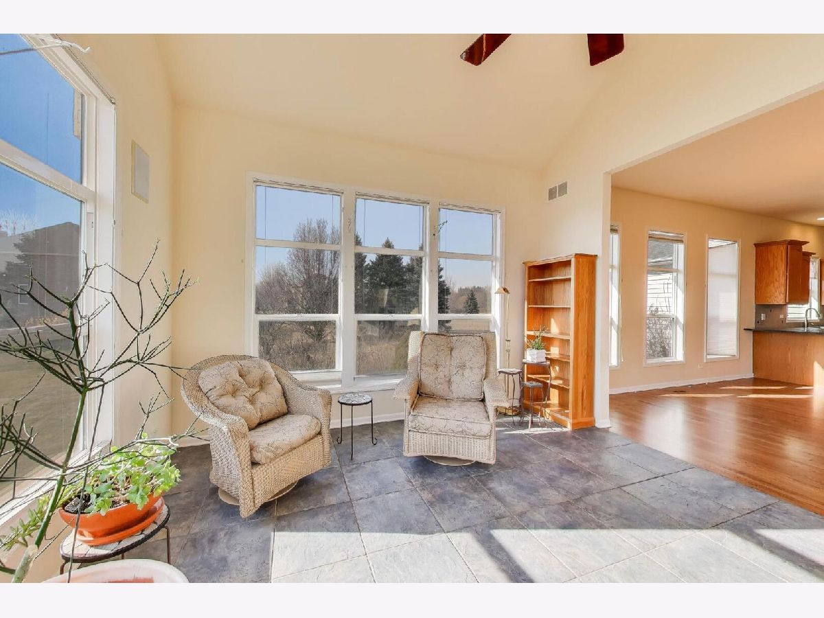 Beautiful Ranch on quiet cul-de-sac in the coveted Triple Oaks Farm neighborhood. Handsome curb appeal draws you to the covered front porch entry. Foyer exposes vaulted ceiling and double door coat closet to keep you organized. The bright Living Room with gas start fireplace is perfect for conversation. Trey ceiling detail in dining rooms sets a formal tone. This Entertaining sized kitchen features wood cabinetry, granite countertops, pantry closet filled with shelving, breakfast bar and large eating area -making this the hub of the home! Sunroom lined in windows opens to your private deck and lower patio. 1st floor laundry room and back hall closet leads to your 3 Car Garage! English basement is filled with natural light! While unfinished it boasts over 2,900 square feet of amazing space. There is an enclosed space, with French doors that had been used as the ultimate workshop! EXTRAS in basement include the rough-in for plumbing. WELL done in 2015. Premium location provides stunning views of open prairie landscape, serene views to enjoy year round with gorgeous colors and interest. Great floor plan with over 3,000 square feet PLUS additional 2,900+ square footage in the FULL BASEMENT! Updates include: Water Heater in 2014, New Roof in 2016, New Furnace in 2016, New Humidifier in 2019, New Refrigerator in 2025. Property sold AS-IS