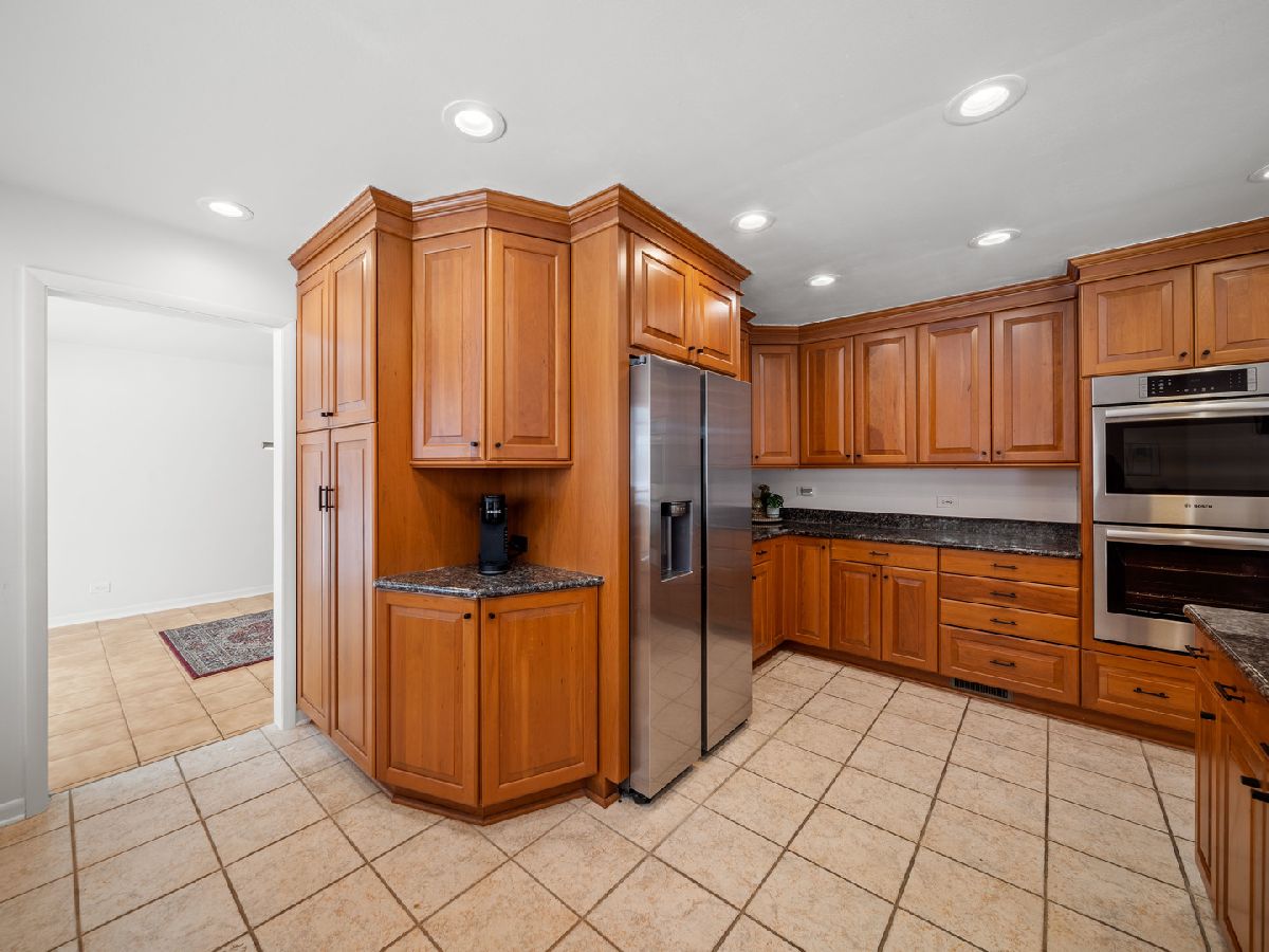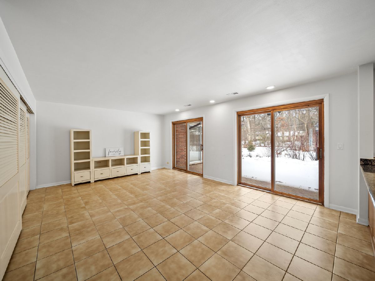 Set gracefully on a generous .6 acre wooded homesite, this refined and thoughtfully updated ranch delivers a seamless blend of enduring design and modern functionality, all anchored by a layout that lives beautifully on one level. A slate-tiled foyer with guest coat closet introduces interiors defined by clean lines, natural light, and purposeful finishes, flowing into a living room warmed by a wood-burning fireplace with stone surround and recessed lighting, while the adjoining dining room opens via sliding glass doors to an expansive brick paver patio, ideal for effortless indoor-outdoor entertaining. The kitchen is both practical and polished, featuring granite countertops, tile flooring, stainless steel appliance suite and direct access to the patio. The family room continues the home's easy livability with ceramic tile flooring, dual sliding glass doors to the yard, and generous storage, complemented by a discreet washer/dryer closet with LG appliances, utility sink, and shelving. The private bedroom wing is anchored by a spacious primary suite with hardwood flooring, dual double-door closets, and a spa-inspired bath with ample linen and storage closets. Three additional bedrooms, each with hardwood flooring, including one with patio access and another with a cedar closet, are served by a well appointed hall bath. Other highlights include: a three-car garage, newer roof(2024), a Generac generator, 200-amp electrical service, Lennox furnace with Aprilaire humidifier, Honeywell thermostat and water heater (2025). Just a stone's throw to the community pool, parks and located in award winning Stevenson High School district and District 103! Shopping, dining, golfing, recreation and access to highways are only minutes away. Designed for comfort, resilience, and understated sophistication, this is a home where thoughtful updates support an elegant, low-maintenance lifestyle amid a tranquil, private setting.
