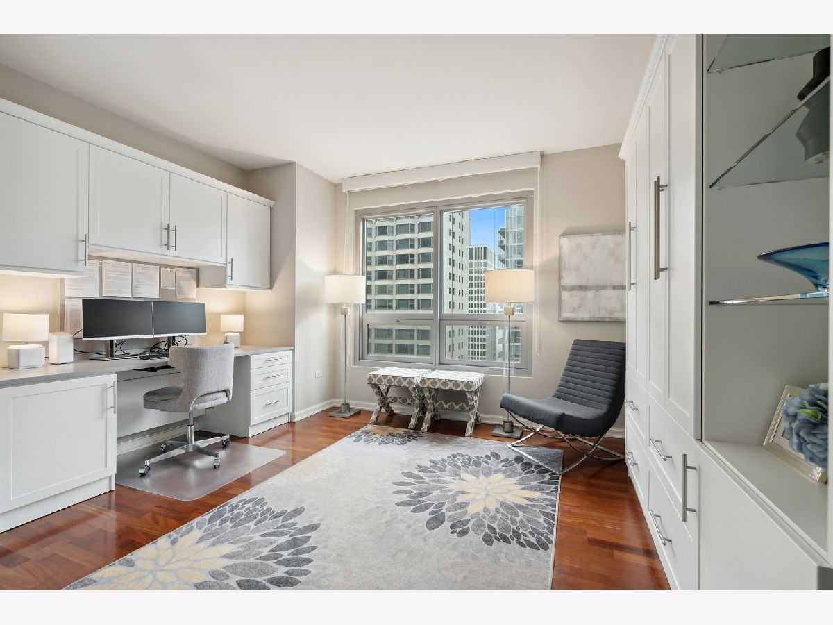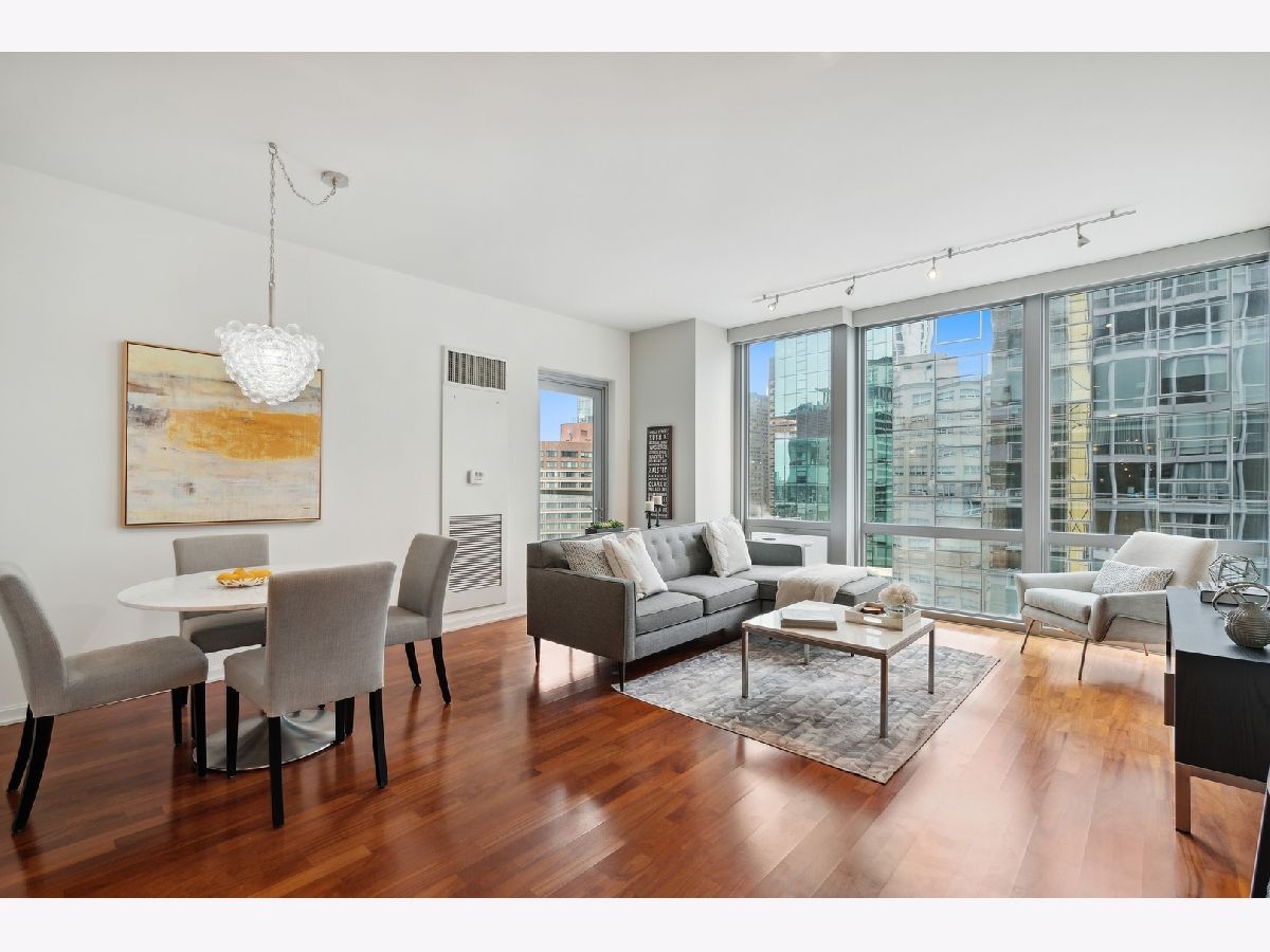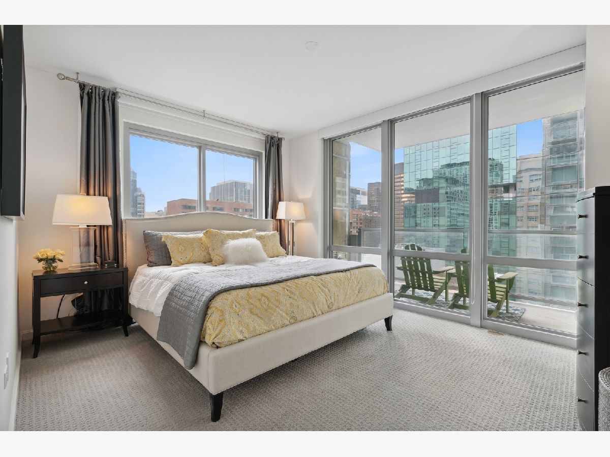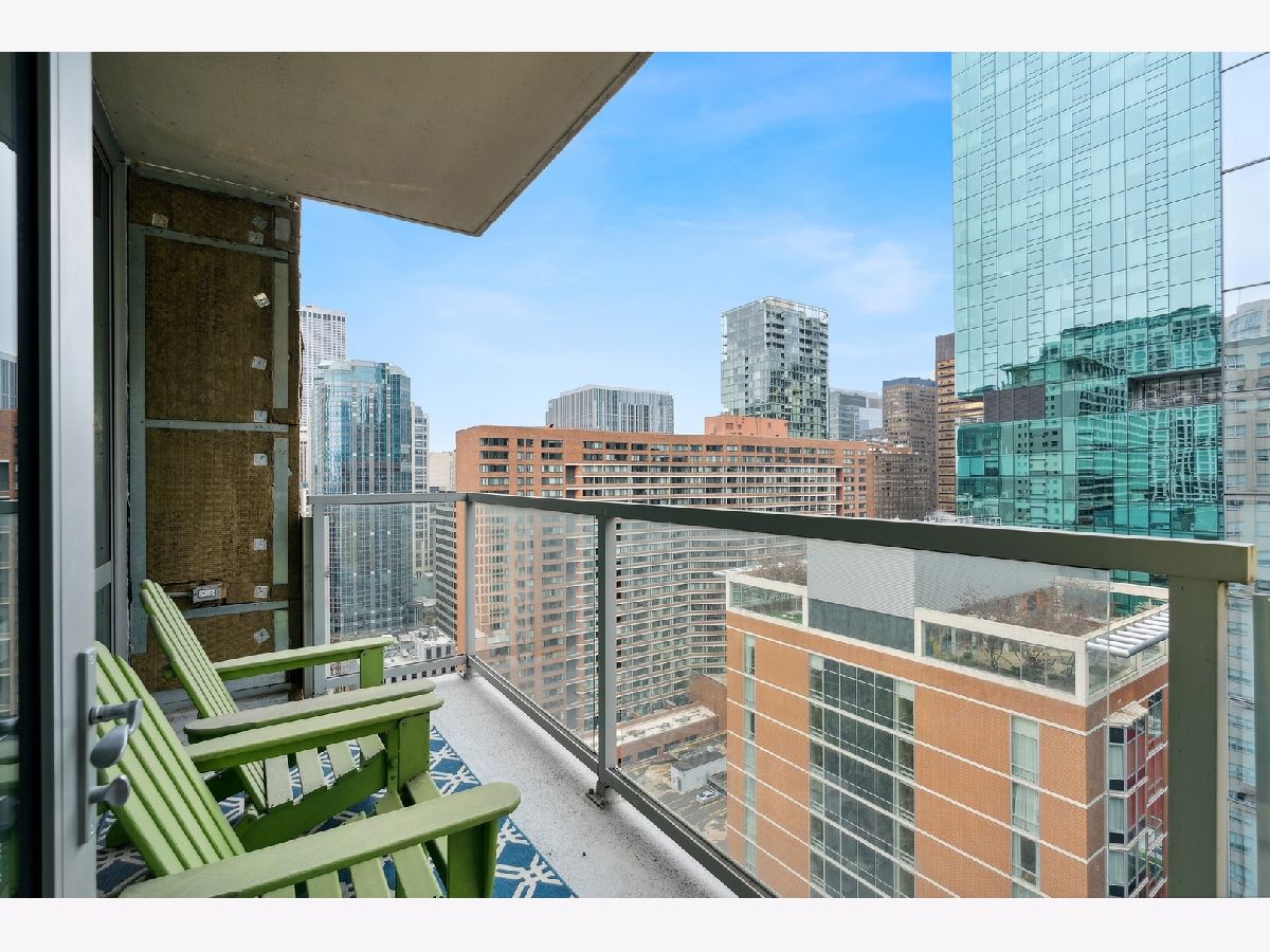 Welcome to the Mag Mile, a fantastic location and steps from everything! Extremely well maintained and well appointed, you won't want to miss this home! The spacious floorplan of 1400+ square feet is in the north east corner with views of the Chicago River as well as the City from floor to ceiling windows! The open kitchen features quartz counters, new backsplash, stainless appliances and large breakfast bar. Great for entertaining! A large balcony is accessed off the living room on the east side of the building for being able to grill, watch the city and enjoy the energy of the Streeterville area! The primary bedroom suite is generous in size and has a huge walk in closet with custom organizers. The spa-like bath has a separate marble shower and tub as well as double vanity. The 2nd bedroom is also very spacious and can be an office and bedroom/guest room depending on your needs. There is a beautiful custom built in desk as well as a queen-size murphy bed. The 2nd bath is accessed from both the 2nd bedroom as well as the hallway so it acts as an ensuite bedroom as well. In unit washer dryer, hardwood floors, custom roller shades in windows with black out blinds in primary bedroom, professionally organized closets! So many luxury finishes in this home, you must just come and see it for yourself! Building amenities include: state of the art fitness center with newly-upgraded equipment; well-appointed hospitality room with full kitchen and baby grand piano for entertaining; wrap-around outdoor deck; assigned storage lockers, secure bike room, 24-hour staffed building security and doorman. Garage parking space #716 is $35,000 additional in the private garage. Storage locker is #25. Assessment includes: Heat, air (4 pipe system), water, gas cooking, cable and internet. Truly a must-see!