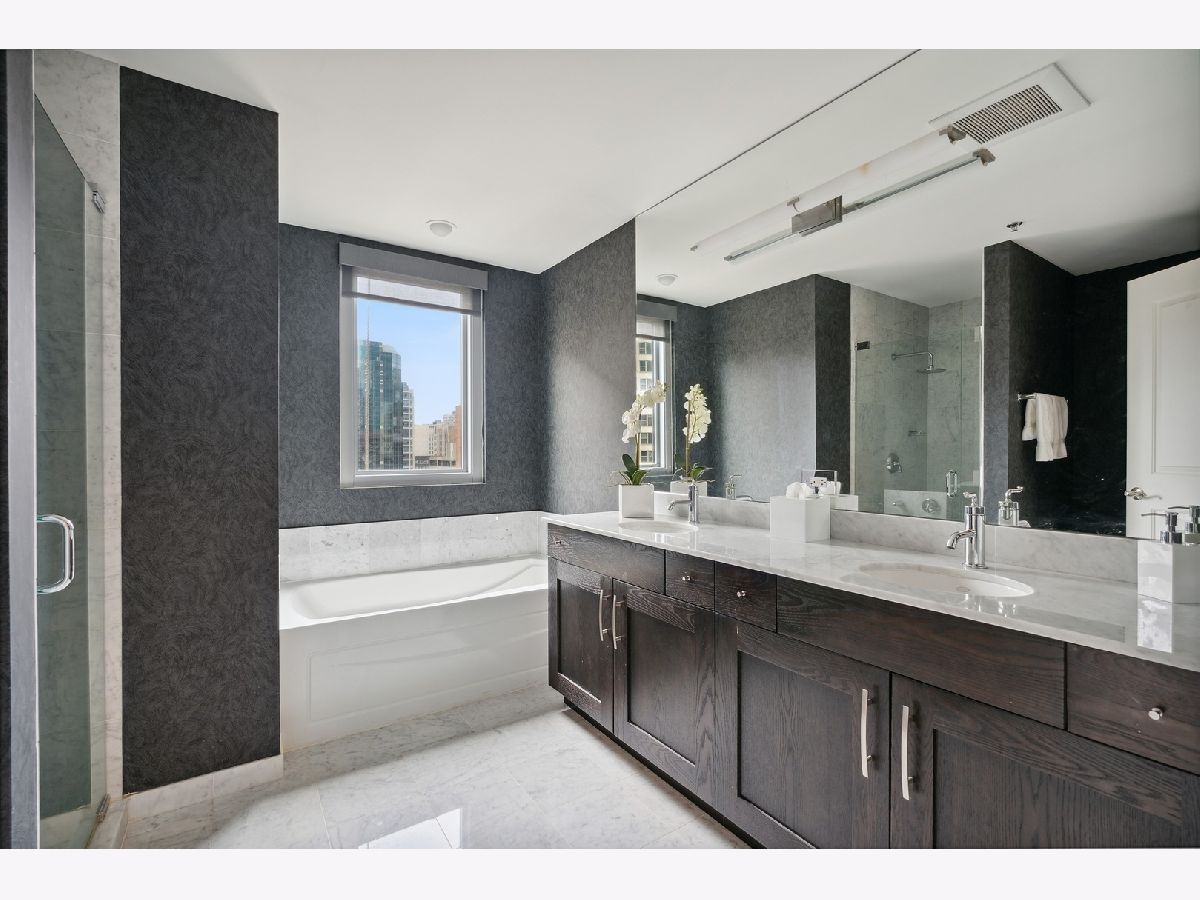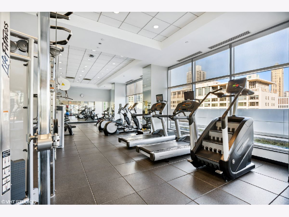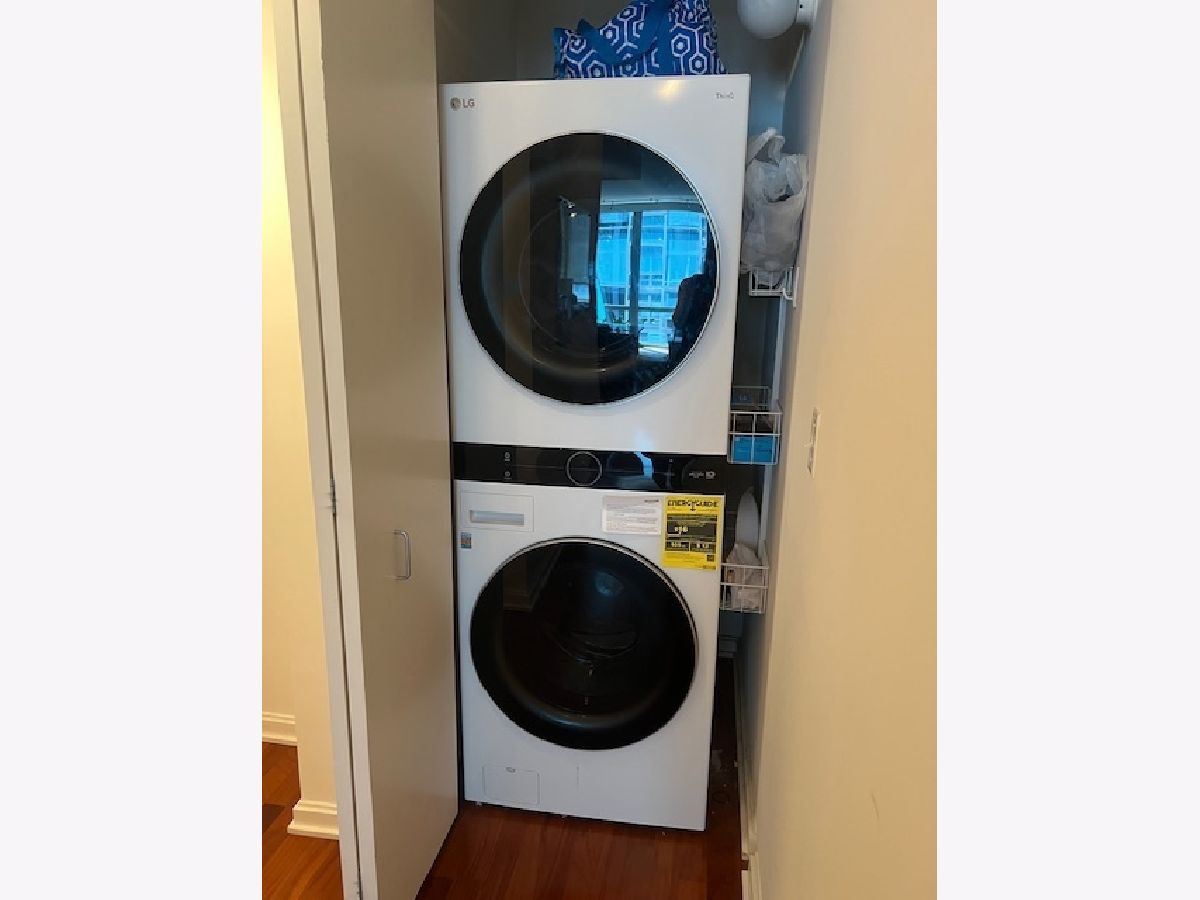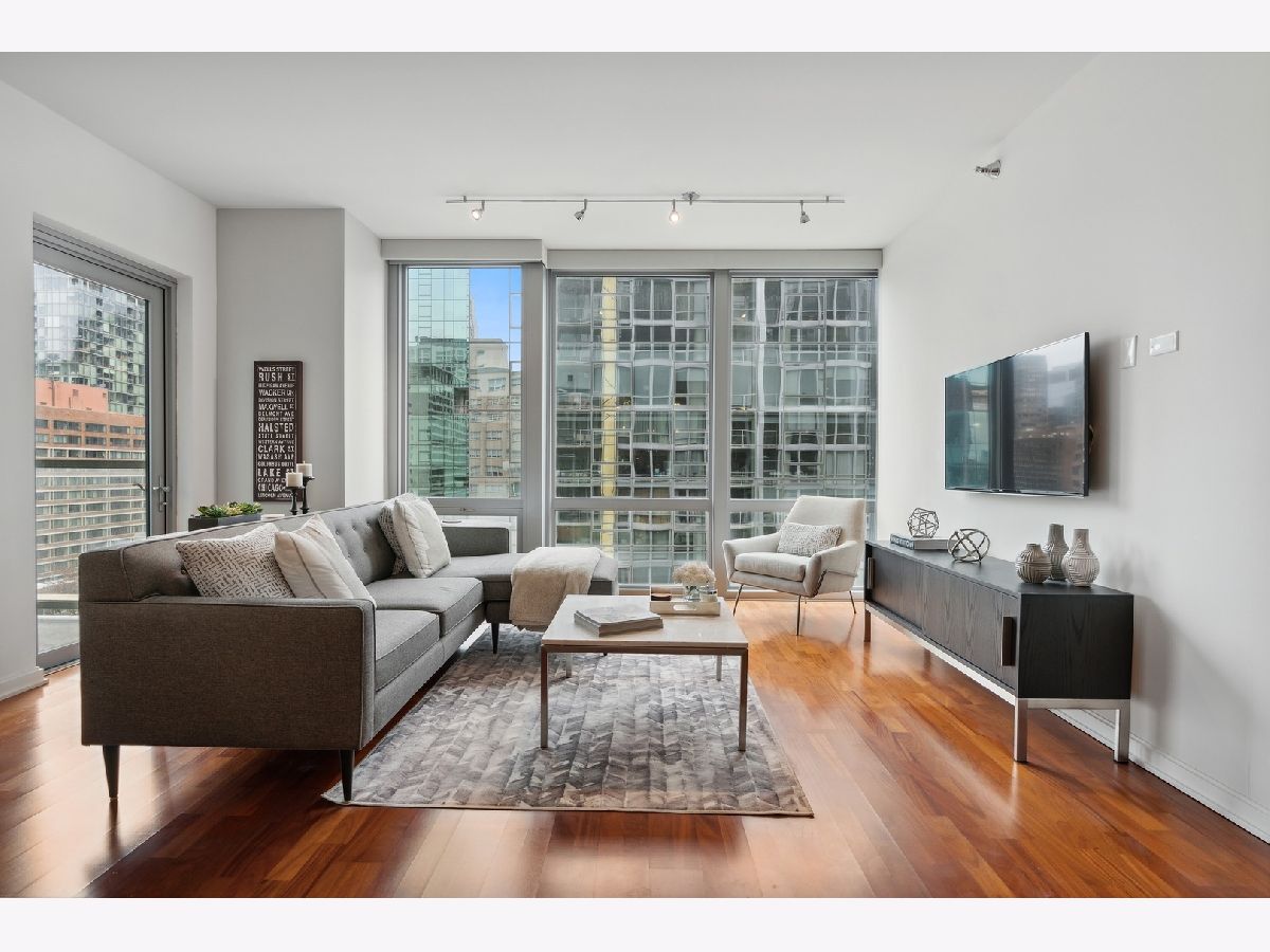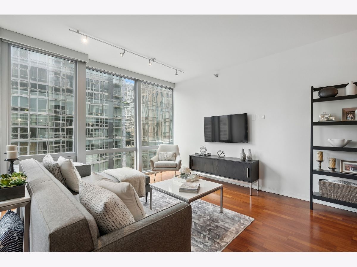 Welcome to the Mag Mile, a fantastic location and steps from everything! Extremely well maintained and well appointed, you won't want to miss this home! The spacious floorplan of 1400+ square feet is in the north east corner with views of the Chicago River as well as the City from floor to ceiling windows! The open kitchen features quartz counters, new backsplash, stainless appliances and large breakfast bar. Great for entertaining! A large balcony is accessed off the living room on the east side of the building for being able to grill, watch the city and enjoy the energy of the Streeterville area! The primary bedroom suite is generous in size and has a huge walk in closet with custom organizers. The spa-like bath has a separate marble shower and tub as well as double vanity. The 2nd bedroom is also very spacious and can be an office and bedroom/guest room depending on your needs. There is a beautiful custom built in desk as well as a queen-size murphy bed. The 2nd bath is accessed from both the 2nd bedroom as well as the hallway so it acts as an ensuite bedroom as well. In unit washer dryer, hardwood floors, custom roller shades in windows with black out blinds in primary bedroom, professionally organized closets! So many luxury finishes in this home, you must just come and see it for yourself! Building amenities include: state of the art fitness center with newly-upgraded equipment; well-appointed hospitality room with full kitchen and baby grand piano for entertaining; wrap-around outdoor deck; assigned storage lockers, secure bike room, 24-hour staffed building security and doorman. Garage parking space #716 is $35,000 additional in the private garage. Storage locker is #25. Assessment includes: Heat, air (4 pipe system), water, gas cooking, cable and internet. Truly a must-see!