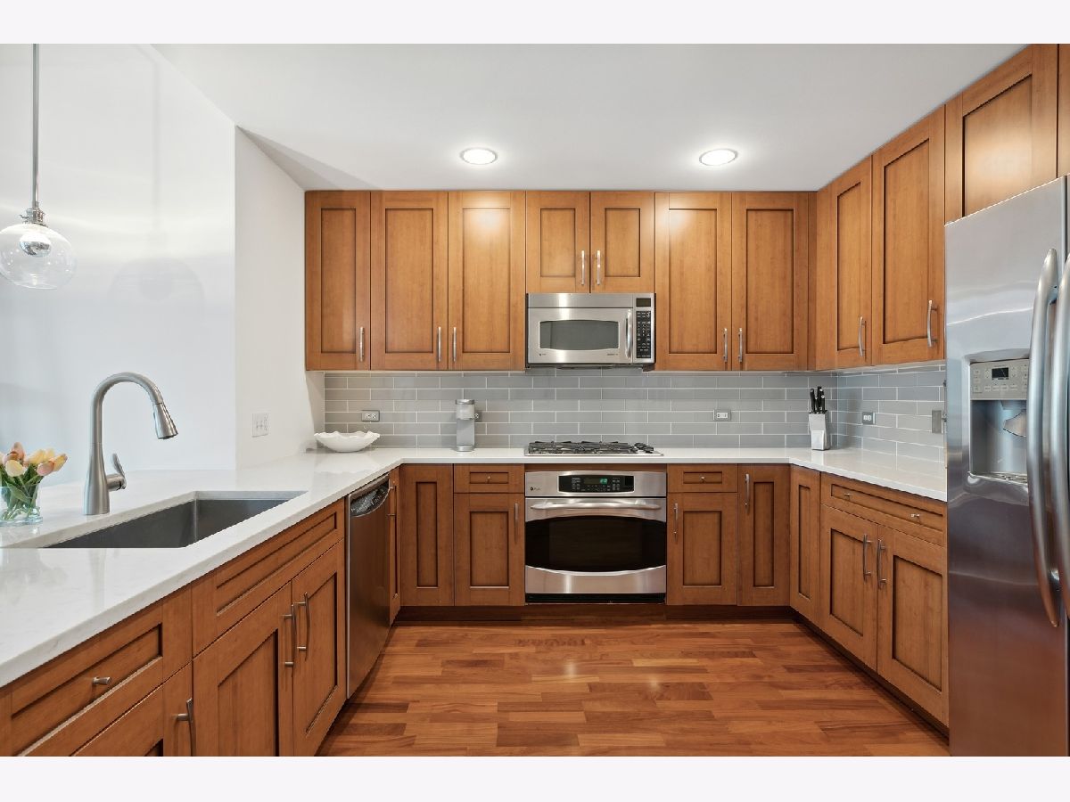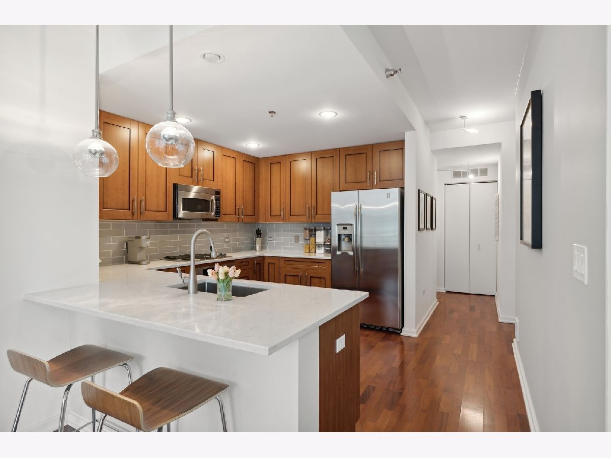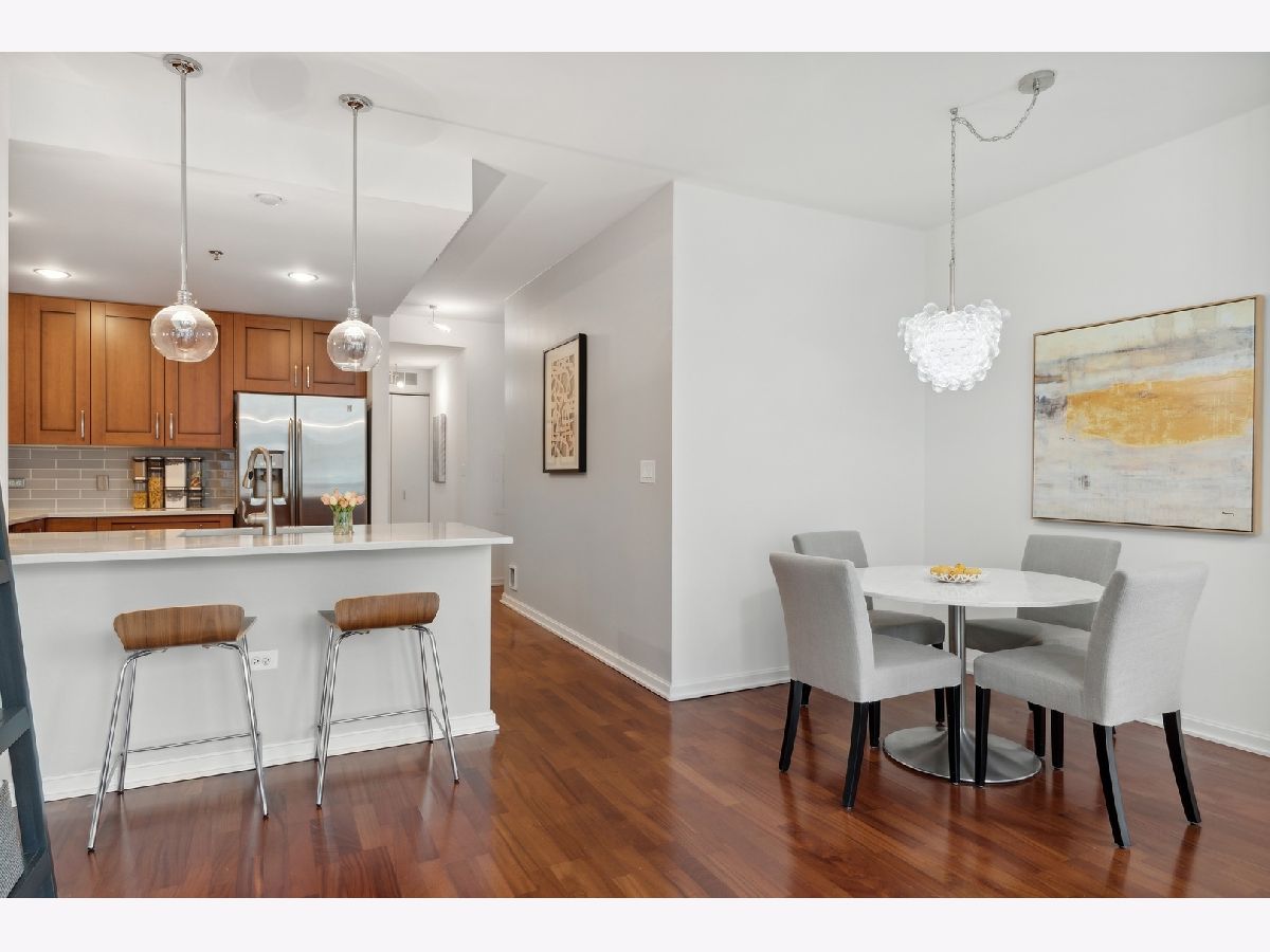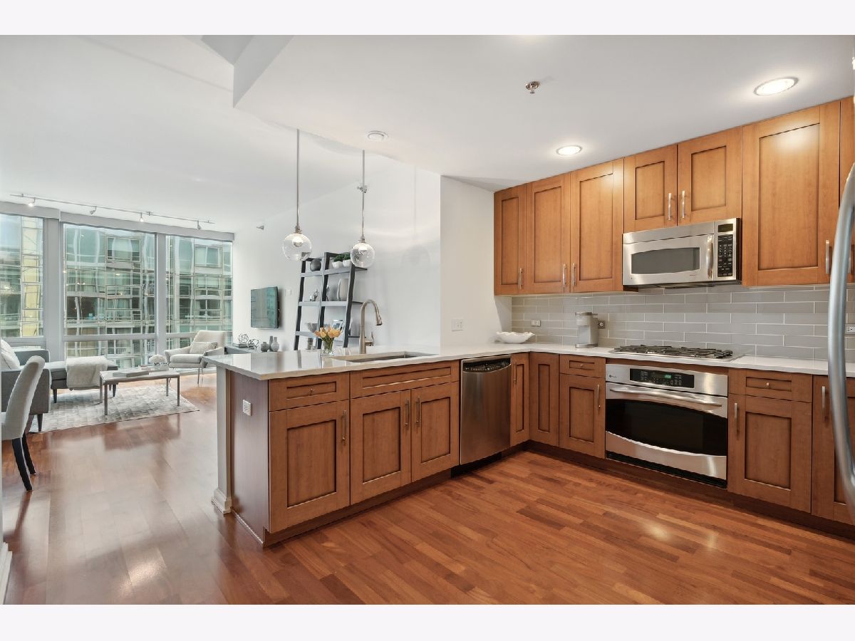 Welcome to the Mag Mile, a fantastic location and steps from everything! Extremely well maintained and well appointed, you won't want to miss this home! The spacious floorplan of 1400+ square feet is in the north east corner with views of the Chicago River as well as the City from floor to ceiling windows! The open kitchen features quartz counters, new backsplash, stainless appliances and large breakfast bar. Great for entertaining! A large balcony is accessed off the living room on the east side of the building for being able to grill, watch the city and enjoy the energy of the Streeterville area! The primary bedroom suite is generous in size and has a huge walk in closet with custom organizers. The spa-like bath has a separate marble shower and tub as well as double vanity. The 2nd bedroom is also very spacious and can be an office and bedroom/guest room depending on your needs. There is a beautiful custom built in desk as well as a queen-size murphy bed. The 2nd bath is accessed from both the 2nd bedroom as well as the hallway so it acts as an ensuite bedroom as well. In unit washer dryer, hardwood floors, custom roller shades in windows with black out blinds in primary bedroom, professionally organized closets! So many luxury finishes in this home, you must just come and see it for yourself! Building amenities include: state of the art fitness center with newly-upgraded equipment; well-appointed hospitality room with full kitchen and baby grand piano for entertaining; wrap-around outdoor deck; assigned storage lockers, secure bike room, 24-hour staffed building security and doorman. Garage parking space #716 is $35,000 additional in the private garage. Storage locker is #25. Assessment includes: Heat, air (4 pipe system), water, gas cooking, cable and internet. Truly a must-see!