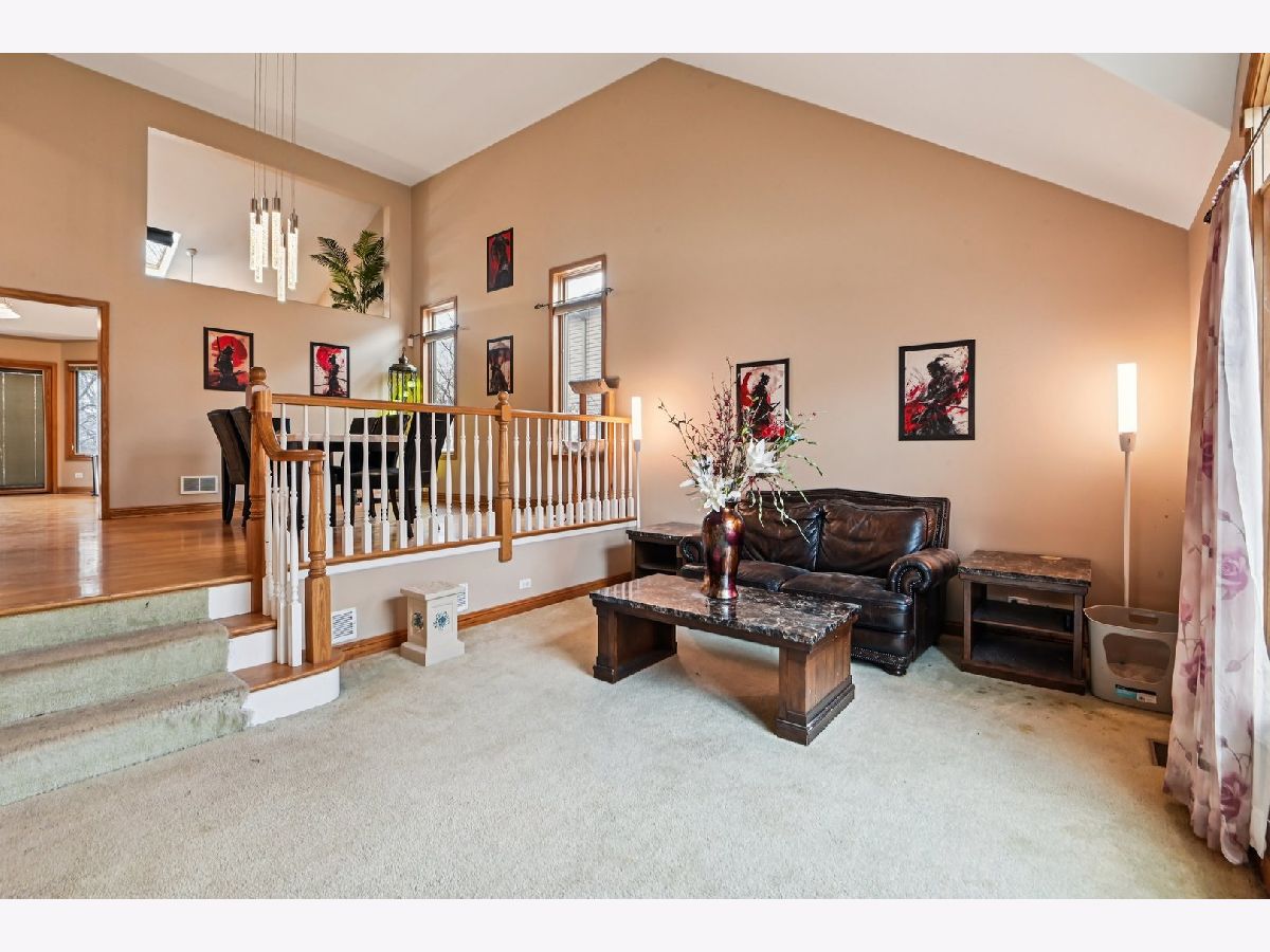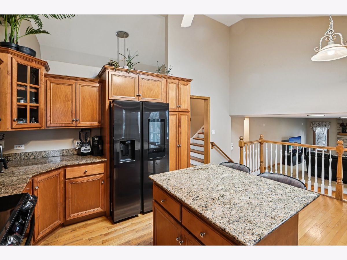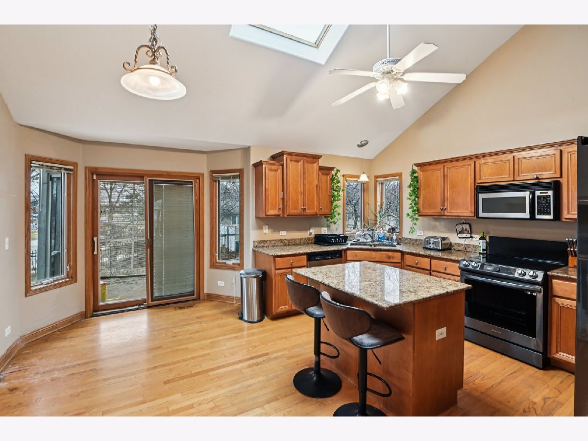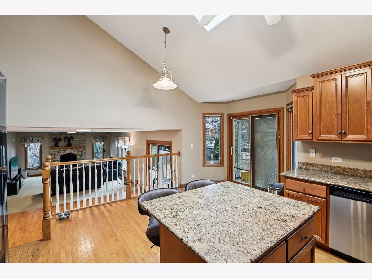 This beautiful home features an open and airy floor plan with 4 spacious bedrooms and 3 full bathrooms. The primary suite offers a luxurious retreat with a separate shower, large soaking tub, double sinks, and a generous walk-in closet. Enjoy vaulted and soaring cathedral ceilings in the living and dining rooms, creating a bright and inviting atmosphere. The home showcases hardwood floors, a cozy fireplace, and an impressive gourmet kitchen with granite countertops, a center island, stainless steel appliances, and quality cabinetry. The kitchen provides convenient access to a private deck, perfect for entertaining or relaxing. The extra-large family room sits adjacent to the kitchen, making it ideal for gatherings. The fully finished basement offers additional living space including a large recreation area, office/den, plenty of storage, and even an additional kitchen area. Located in a fantastic area near downtown Roselle, with easy access to the Metra station, Route 390, shopping, dining, and more.