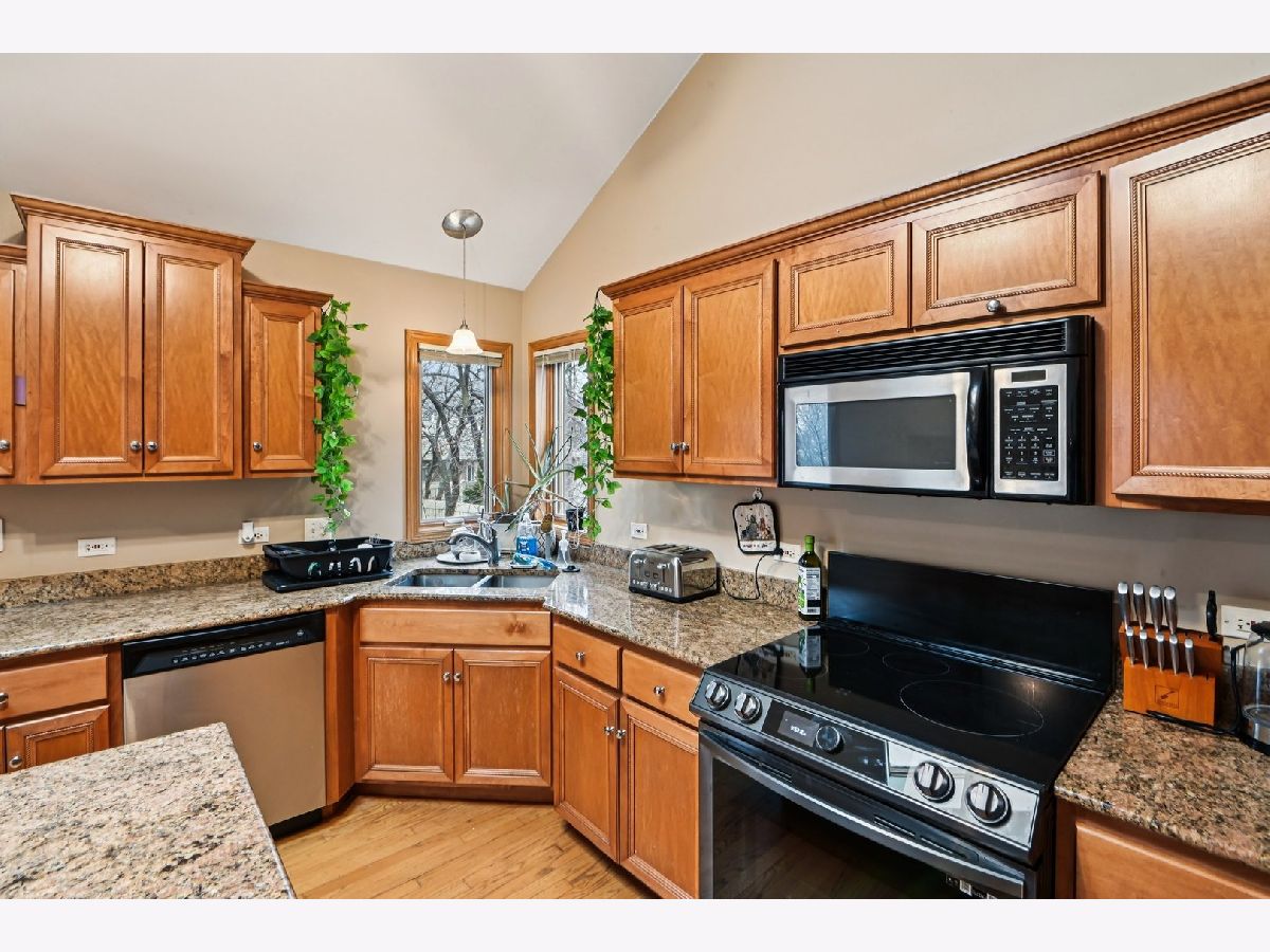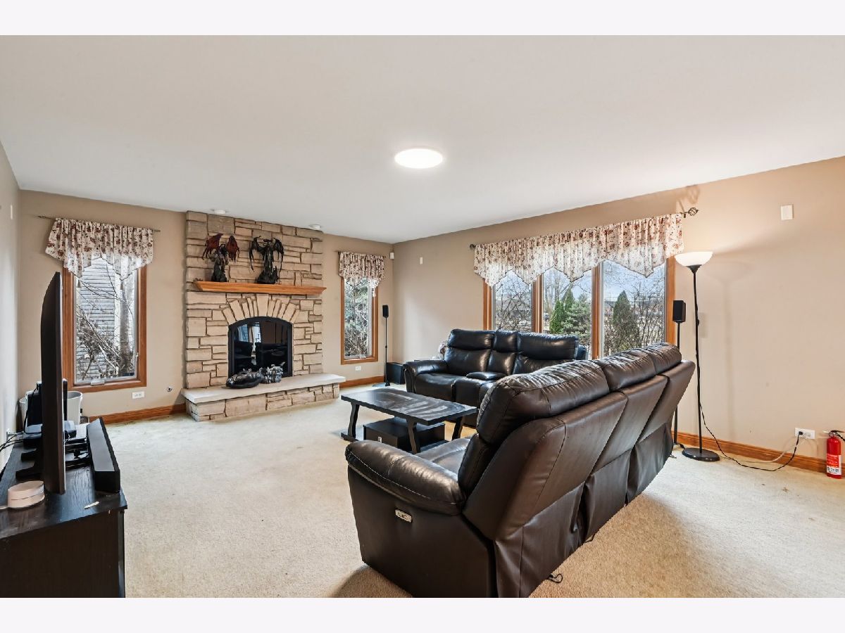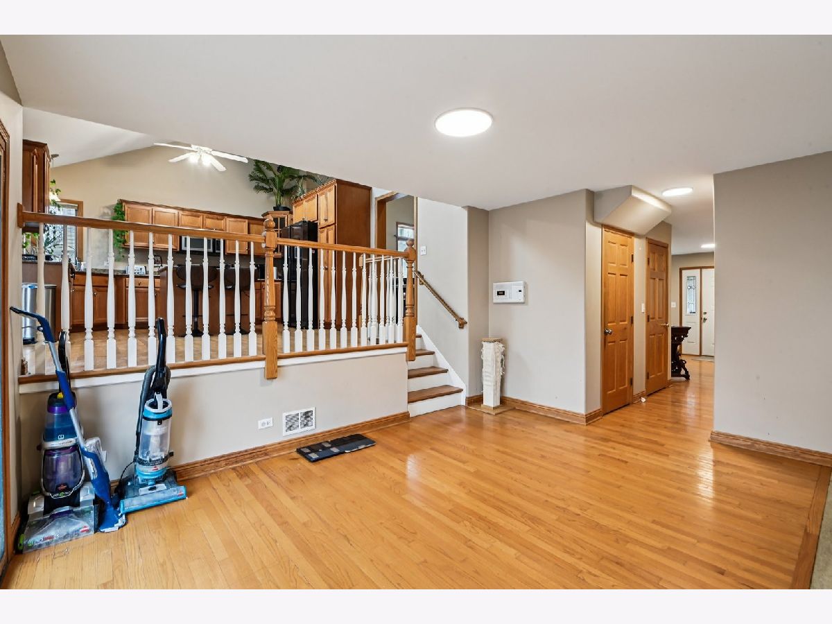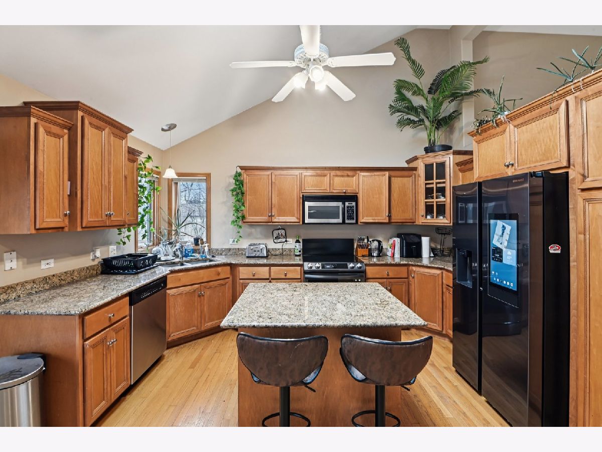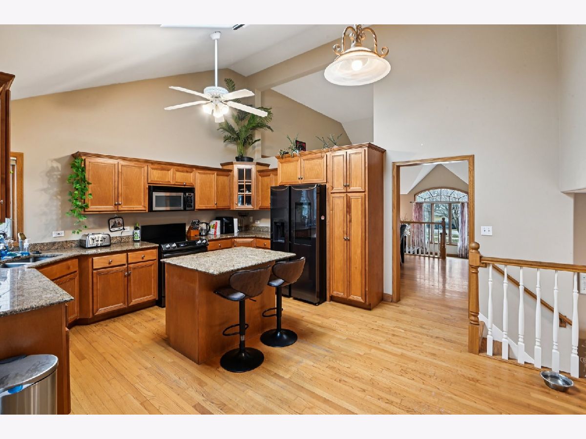 This beautiful home features an open and airy floor plan with 4 spacious bedrooms and 3 full bathrooms. The primary suite offers a luxurious retreat with a separate shower, large soaking tub, double sinks, and a generous walk-in closet. Enjoy vaulted and soaring cathedral ceilings in the living and dining rooms, creating a bright and inviting atmosphere. The home showcases hardwood floors, a cozy fireplace, and an impressive gourmet kitchen with granite countertops, a center island, stainless steel appliances, and quality cabinetry. The kitchen provides convenient access to a private deck, perfect for entertaining or relaxing. The extra-large family room sits adjacent to the kitchen, making it ideal for gatherings. The fully finished basement offers additional living space including a large recreation area, office/den, plenty of storage, and even an additional kitchen area. Located in a fantastic area near downtown Roselle, with easy access to the Metra station, Route 390, shopping, dining, and more.
