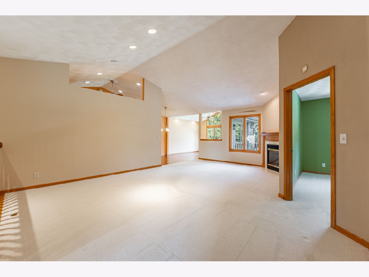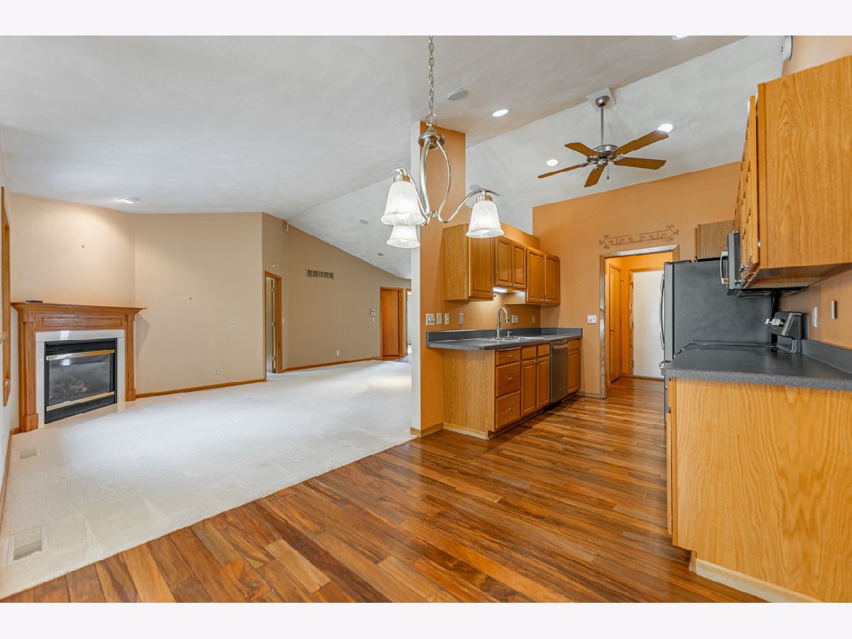 Beautiful, all-brick duplex condo built by Zentz in Boone County that is truly move-in ready! This spacious home offers a desirable main-floor primary suite and an open-concept great room and dining area anchored by a cozy corner fireplace. Hardwood flooring runs through the foyer and kitchen, opening seamlessly into the family room beneath soaring cathedral ceilings. Sliding patio doors lead to a private deck-perfect for morning coffee or relaxing evenings. The full basement provides endless possibilities for additional living space, storage, or future finishing. Outside, you'll appreciate the beautifully maintained landscaping, mature trees, and vibrant perennials. Enjoy maintenance-free living with no mowing or snow shoveling. Located in Boone County School District and directly across from Newbury Village Golf Course, this subdivision also backs up to the scenic Kishwaukee River for added privacy and natural views. Recent updates include a new furnace, water softener, and water heater (2025), new carpet in the living room and bedrooms (2025), and a washer and dryer (2025). The attached garage features a durable epoxy floor, generous storage, and space for two cars. Sharp, spotless, and ready for its next owner!
