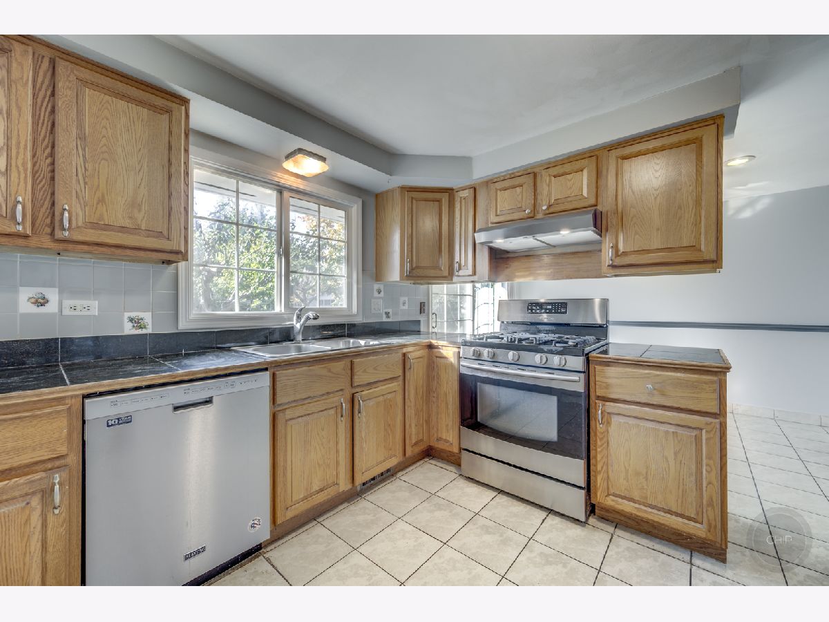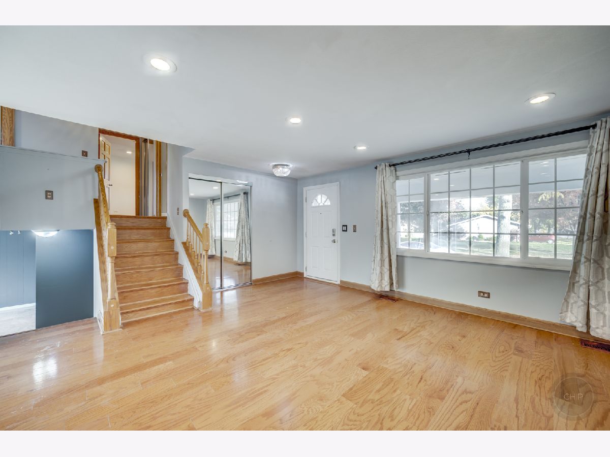 Updated and meticulously maintained split level home ready for new owners! This amazing property sits on an oversized corner lot in a quiet subdivision. Professionally landscaped yard and large front porch greet you as you pull in. Upon entry you will notice hardwood floors, updated can lighting, oversized windows to allow tons of natural light. Leading into the kitchen, the stainless steel appliances have all been updated most noticeably, the range hood in October 2025. If you need even more space, the walk out lower level english basement features marble tile and a sliding glass door leading to your patio and private backyard oasis. Follow the freshly painted steps up to find a FENCED yard filled with numerous fruit trees that will give you an abundance to last you all through the season. The lower level also features a full bathroom, and large laundry room with NEW laundry sink 2025 and newer washer and dryer! BRAND NEW FURNACE AND A/C REPLACED IN 2025. Upstairs features all hardwood flooring in three bedrooms, can lights and Solid wood 6 panel doors. Updated bathroom with NEW vanity! Home also features updated windows, newer roof. Perfectly located in the heart of schaumburg close to expressways, shopping and so much more!