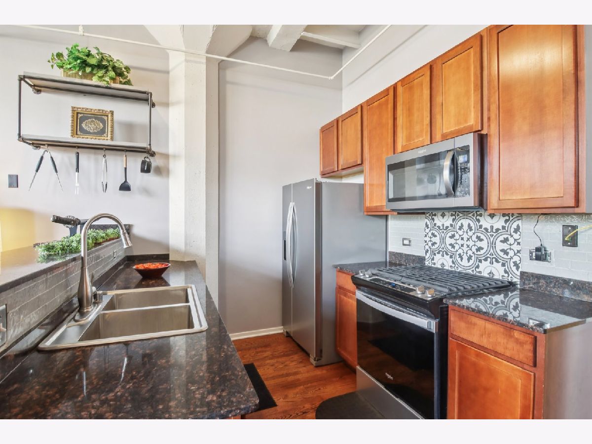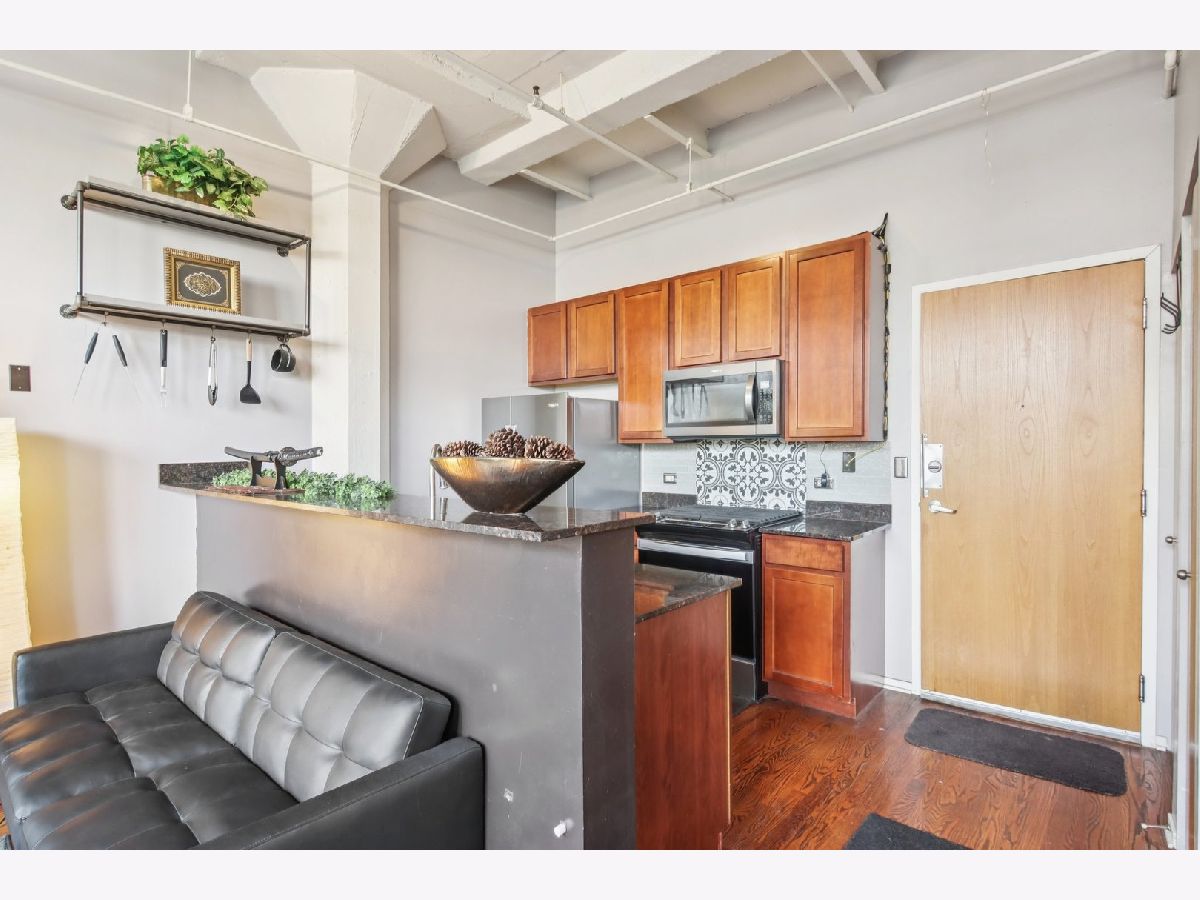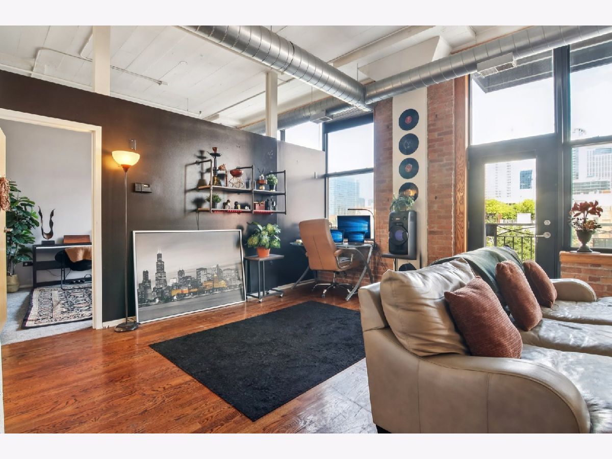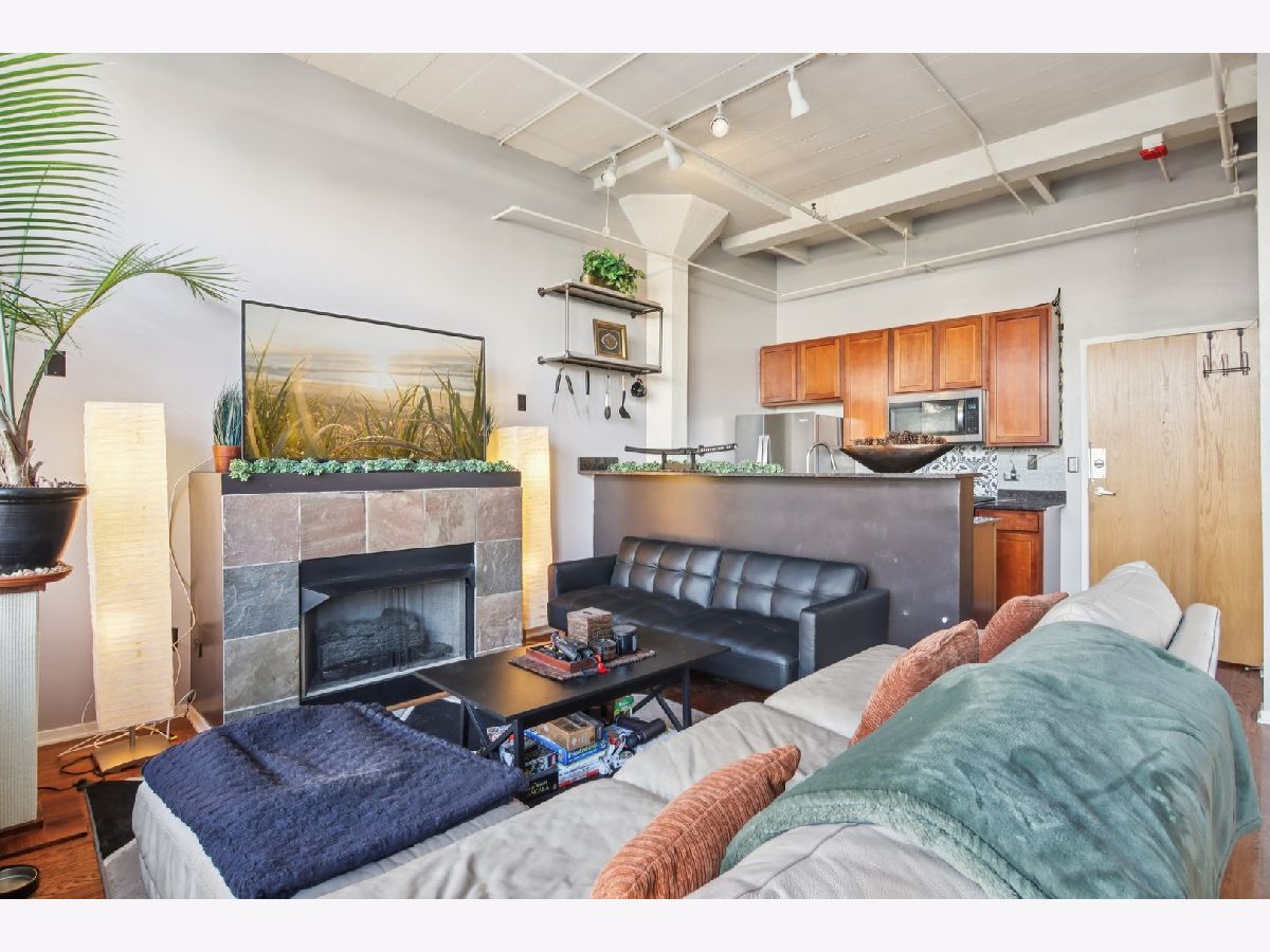 Welcome to this light-filled 1 bed, 1 bath condo in the vibrant heart of the South Loop! Enjoy stunning skyline views through oversized windows that fill the open-concept layout with natural light. The spacious living area features a gas log fireplace for cozy evenings, and the adjoining dining area easily accommodates a large table-or can be used as a flexible office space to suit your lifestyle. The kitchen is outfitted with granite countertops, stainless steel appliances, a breakfast bar, and rich cabinetry. The oversized bedroom includes a generous walk-in closet, and beautiful hardwood floors flow throughout the unit. In-unit washer & dryer provide added convenience. Step out onto your private balcony-perfect for relaxing or entertaining during warmer months. Additional basement storage locker and a deeded outdoor parking space are both included in the price-a rare find in this neighborhood! The building also offers guest parking. Walk to everything the South Loop has to offer: the lakefront, Museum Campus, Grant Park, local restaurants, groceries, and public transportation. Move-in ready and perfectly located!