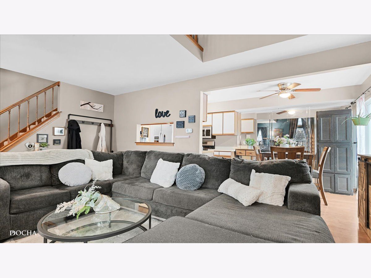 Welcome to this wonderful townhome with an open and airy floorplan. You are greeted by the wonderful living room featuring a vaulted ceiling, natural light, and a gorgeous fireplace. The galley kitchen has stainless steel appliances and plenty of storage, with the dining space between the two rooms. The half bathroom has also been updated. Upstairs, you find a large master bedroom with a large walk-in closet, an attached bathroom, a second bedroom, and a spacious loft perfect for a home office, library, or playroom. New windows in 2018, siding 2016, patio door 2019, upstairs flooring in 2019
