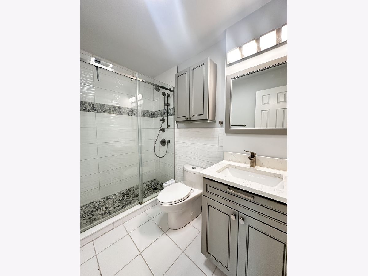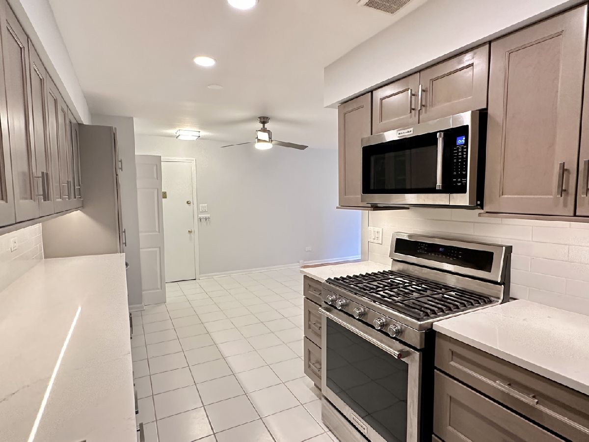 Welcome to this beautifully remodeled 2 bedroom 1 bath condo perfectly located in the heart of Arlington Heights. This well-designed unit offers a spacious living room with a dining area with a sliding door leading to a private patio. Stunning, newly remodeled kitchen with high-end quartz countertops, premium stainless steel appliances, under-cabinet lighting, pantry cabinet with pull-out trays, beverage fridge. An elegant, modern design bath features frameless glass shower door, vanity with quartz top, and designer tile from floor to ceiling. A truly move-in ready unit offers in-unit washer and dryer, master bedroom walk-in closet, freshly painted throughout, refinished hardwood floors, brand new carpets in both bedrooms and more. This welcoming community with Outdoor Pool, Sundeck, Park with Playground and walking paths, located in Highly Rated Schools makes it an ideal place to live and relax. Low monthly assessment includes heat, A/C, water, scavenger, and parking. No rental cap and pet friendly. FHA approved. 10+!