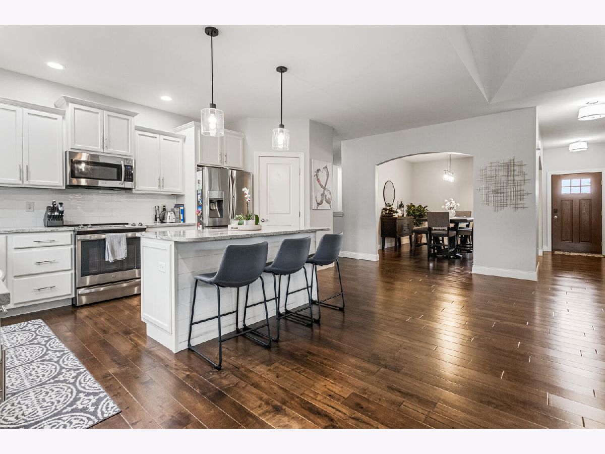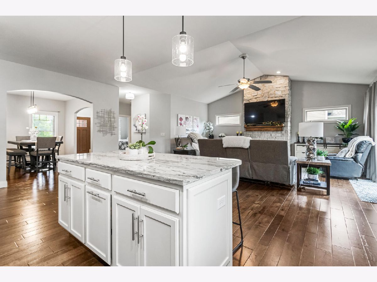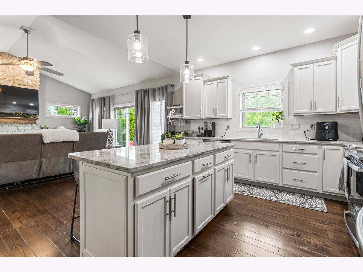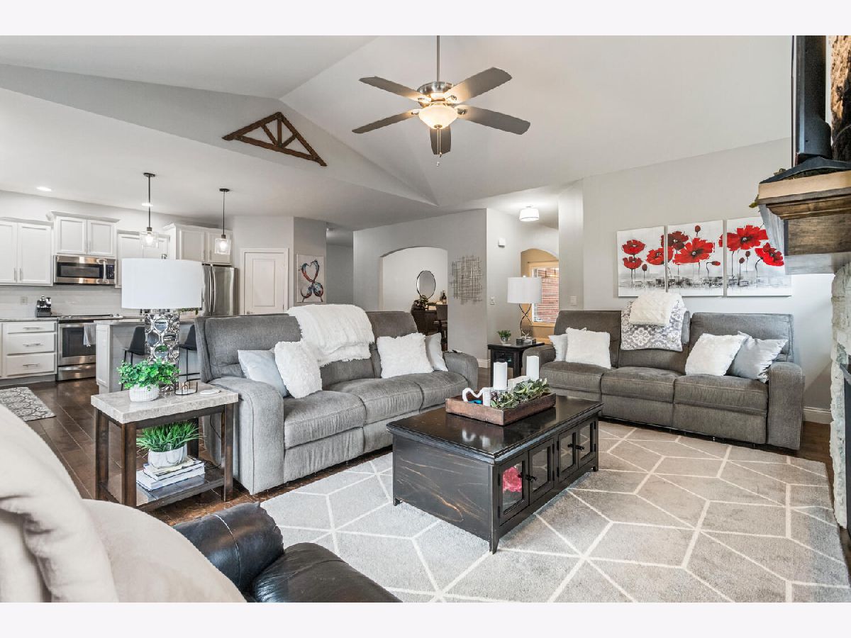 This beautifully maintained, better-than-new ranch home offers the ideal blend of thoughtful design, finished amenities, and an unbeatable location close to top-rated schools, shopping, and dining-everything today's busy households value most. With 4 bedrooms, 4 full baths, a partially finished basement, and a 3-car garage, the open-concept layout is both functional and inviting. The cathedral-ceiling great room centers around a cozy gas-log fireplace and flows seamlessly into a dedicated dining area-perfect for everyday living and entertaining alike. The kitchen is a true gathering space, featuring a large granite and shiplap island, stainless steel appliances, abundant prep space, and hardwood floors throughout the main level. Three bedrooms are located on the main floor, including a spacious primary suite with a spa-like bath offering a soaker tub, walk-in shower, private toilet area, and generous walk-in closet. Practical details elevate daily life, including a separate laundry room with folding space and a welcoming mud/drop zone off the garage complete with bench and coat hooks. A main-floor mother-in-law suite adds flexibility, offering its own private bath and French doors that open to a peaceful private patio. The finished basement expands your living space with a large fourth bedroom, full bath, movie room, built-in desk area, and an impressive 1,238 sq ft of unfinished storage-complete with multiple storage racks, something rarely found in new construction. Step outside to enjoy the professionally landscaped, fully fenced backyard-a standout upgrade you won't get with a new build. Mature plantings, concrete BorderMagic edging, window treatments already in place, and a rear patio off the great room create a move-in-ready outdoor retreat perfect for entertaining or unwinding. This home offers the ease of a newer build without the added expense, time, or hassle-all in a location that keeps you connected to schools, dining, and everyday conveniences.