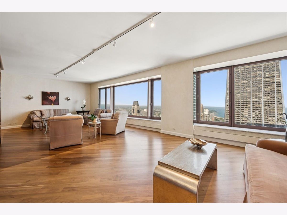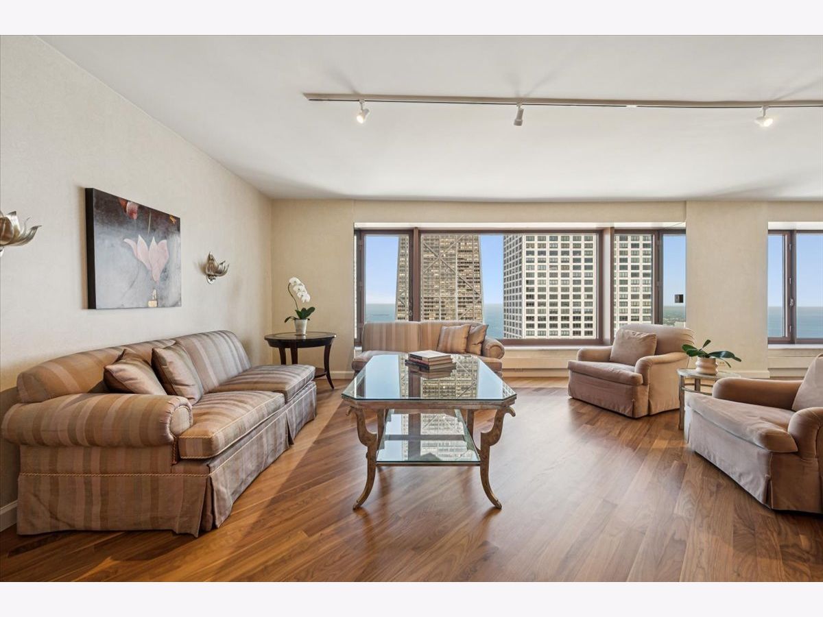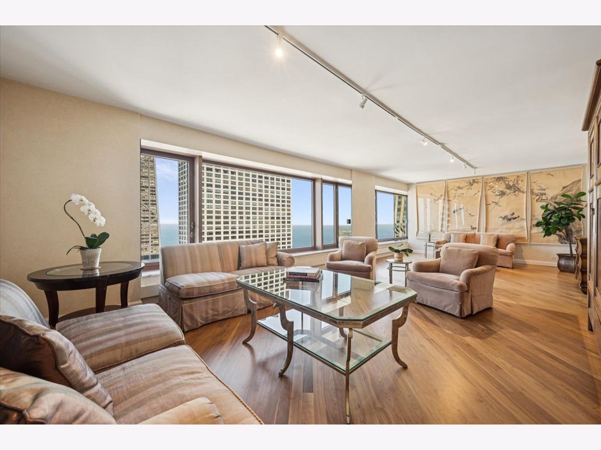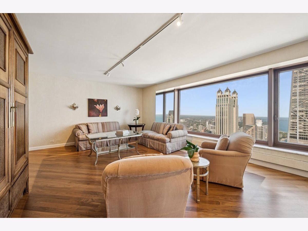 Perched high above the city, this 1,456 sq. ft. residence offers sweeping northeast views of Chicago's skyline, Lake Shore Drive, and Lake Michigan through oversized picture windows. The expansive living and dining room, finished with hardwood floors, seamlessly opens to a chef's custom kitchen featuring stainless steel appliances, abundant cabinetry, and a sleek design perfect for both everyday living and entertaining. The luxurious primary suite boasts two fully organized walk-in closets, a built-in dressing cabinet, and a spa-inspired stone bath with a soaking tub, walk-in shower, and oversized vanity. For convenience, the home also includes a laundry closet and a stylish powder room. This residence is among the most spacious and desirable one-bedroom layouts in the city-an exceptional opportunity in the prestigious Olympia Centre. A full-size storage cage is just steps from the unit on the same floor. Located in the highly sought-after 161 E. Chicago Avenue building, residents enjoy full-service amenities, including 24-hour door and maintenance staff, concierge, an exercise room, and two cardio rooms, indoor pool, hot tub, hospitality suite, and a rooftop deck with panoramic views. Don't miss this opportunity to live in one of Chicago's finest buildings! Rental parking options are available in the attached garage.