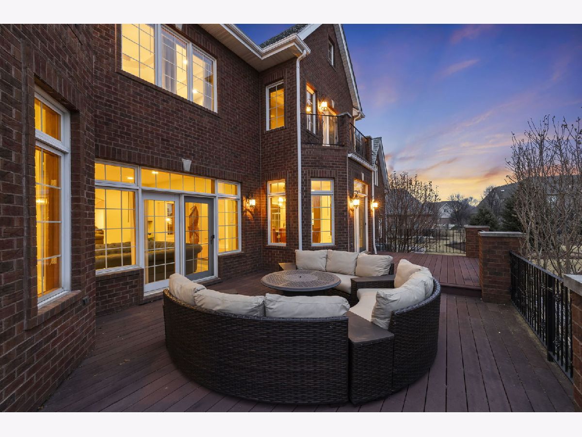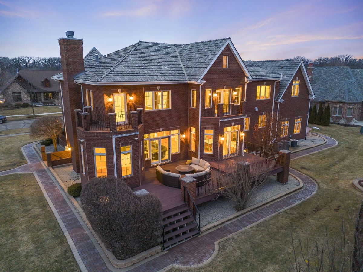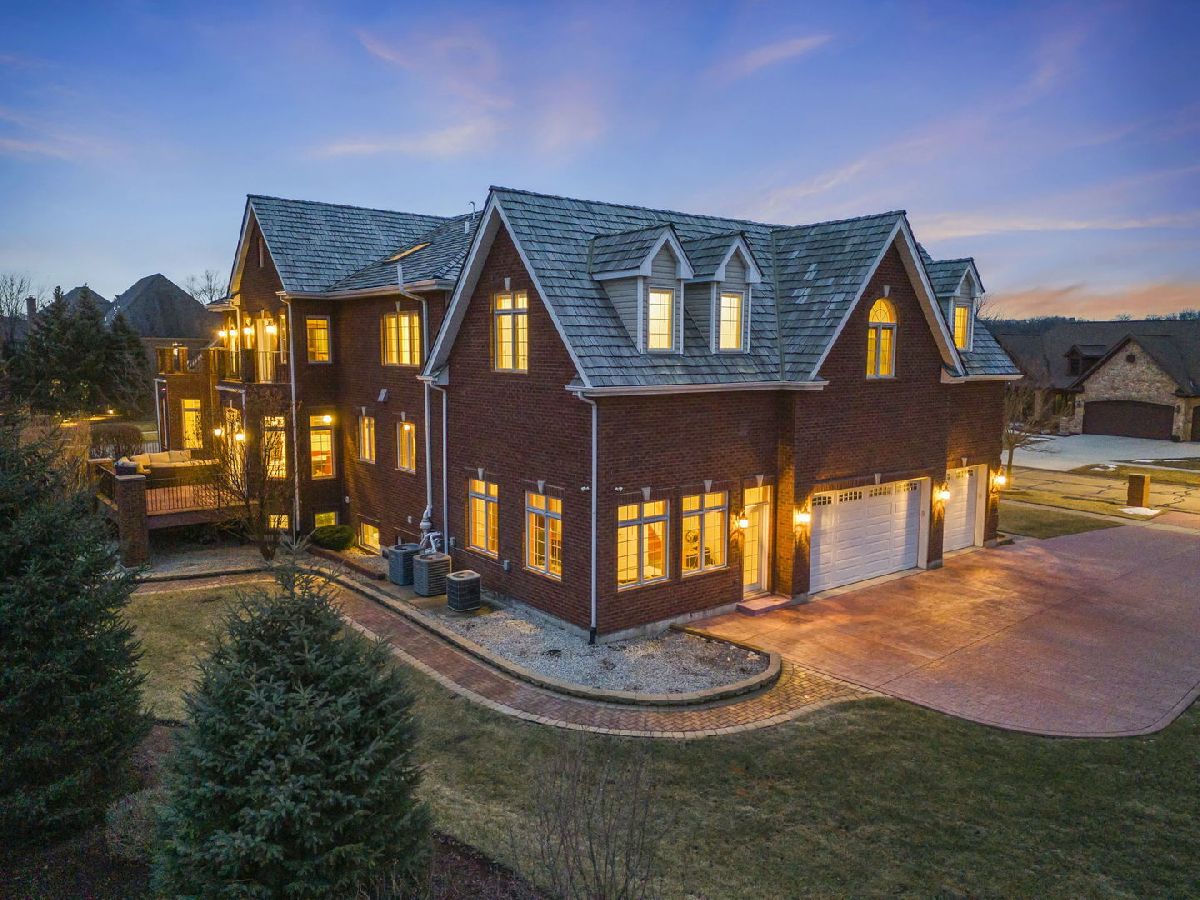 Fabulous luxury estate offering over 7300 SF of living space, perfectly designed for extended family living and entertaining. With five true bedrooms and four full baths on the second floor, there is ample room to accommodate a crowd. Ideally located near downtown Plainfield, just minutes from Rt. 59, I-55, and two easily accessible Metra stations, this residence offers both convenience and prestige. A grand brick-paver walkway welcomes you to this stunning, east-west-facing, all-brick home within the highly acclaimed Plainfield North High School boundary. Impeccably maintained, it showcases superior construction and elegant appointments, with architectural details that set it apart: soaring 9'-21' ceilings, two turrets, multiple balconies and porches, arched entries, curved staircases, and five fireplaces. Thoughtfully placed custom windows bathe the interior in natural light, flowing through the cut-glass front door into the two-story foyer, formal living room, and dining room, which features a new chandelier and exhibit lighting. The spectacular chef's kitchen is fully outfitted with Viking Professional appliances, custom cabinetry, a walk-in pantry, and a large island with an eat-in nook that opens seamlessly to the family room. A spacious main-floor office/flex room includes a private entrance for added convenience. The three-car garage, with 13-foot ceilings, connects to an expansive, textured driveway, ideal for outdoor play or guest parking. Upstairs, the luxurious primary suite is a true retreat, complete with a spa-like bath, a two-sided fireplace, and a private balcony, perfect for enjoying morning coffee. The second-floor laundry room provides ample storage and versatile space for school projects or personal hobbies. Two staircases lead to the fully finished walk-out basement, an entertainer's dream featuring a kitchenette, media room, gym, and recreation area. Outdoor living is equally impressive on the .36-acre lot, with a custom brick-paver walkway connecting terraces, a patio, and a composite deck, all designed for minimal maintenance. This home could not be built today at this price with its size, features, and finishes. It truly is the whole package and ready for its next owner! NEW TEAR-OFF ROOF