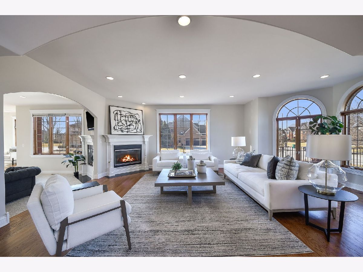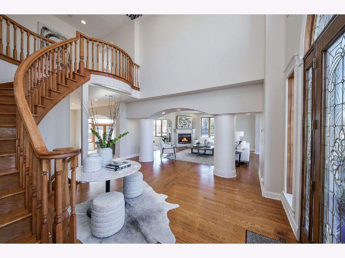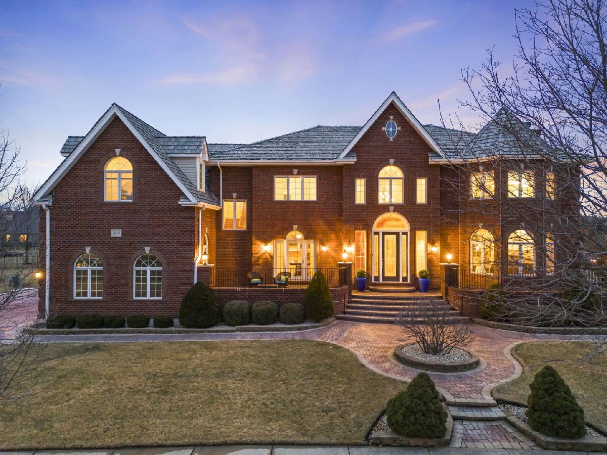 Fabulous luxury estate offering over 7300 SF of living space, perfectly designed for extended family living and entertaining. With five true bedrooms and four full baths on the second floor, there is ample room to accommodate a crowd. Ideally located near downtown Plainfield, just minutes from Rt. 59, I-55, and two easily accessible Metra stations, this residence offers both convenience and prestige. A grand brick-paver walkway welcomes you to this stunning, east-west-facing, all-brick home within the highly acclaimed Plainfield North High School boundary. Impeccably maintained, it showcases superior construction and elegant appointments, with architectural details that set it apart: soaring 9'-21' ceilings, two turrets, multiple balconies and porches, arched entries, curved staircases, and five fireplaces. Thoughtfully placed custom windows bathe the interior in natural light, flowing through the cut-glass front door into the two-story foyer, formal living room, and dining room, which features a new chandelier and exhibit lighting. The spectacular chef's kitchen is fully outfitted with Viking Professional appliances, custom cabinetry, a walk-in pantry, and a large island with an eat-in nook that opens seamlessly to the family room. A spacious main-floor office/flex room includes a private entrance for added convenience. The three-car garage, with 13-foot ceilings, connects to an expansive, textured driveway, ideal for outdoor play or guest parking. Upstairs, the luxurious primary suite is a true retreat, complete with a spa-like bath, a two-sided fireplace, and a private balcony, perfect for enjoying morning coffee. The second-floor laundry room provides ample storage and versatile space for school projects or personal hobbies. Two staircases lead to the fully finished walk-out basement, an entertainer's dream featuring a kitchenette, media room, gym, and recreation area. Outdoor living is equally impressive on the .36-acre lot, with a custom brick-paver walkway connecting terraces, a patio, and a composite deck, all designed for minimal maintenance. This home could not be built today at this price with its size, features, and finishes. It truly is the whole package and ready for its next owner! NEW TEAR-OFF ROOF