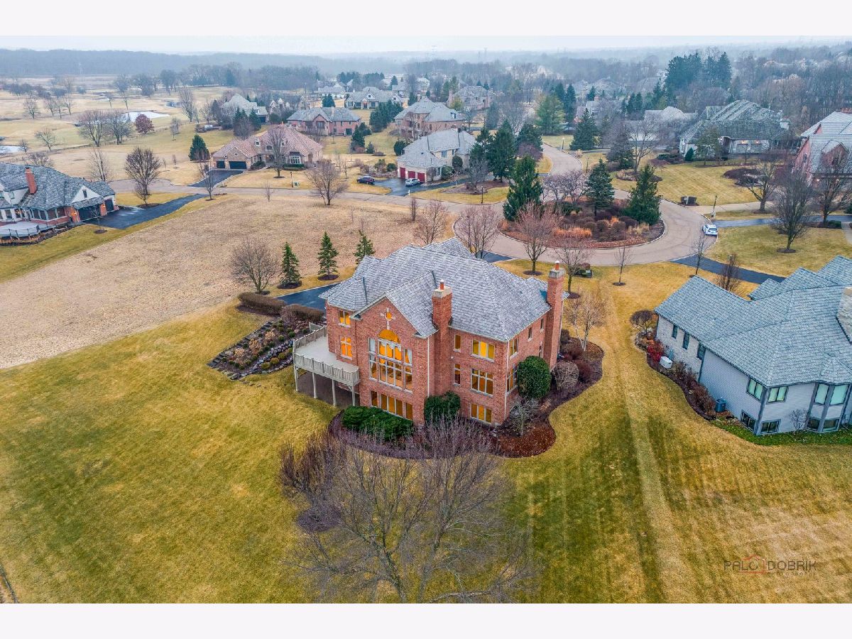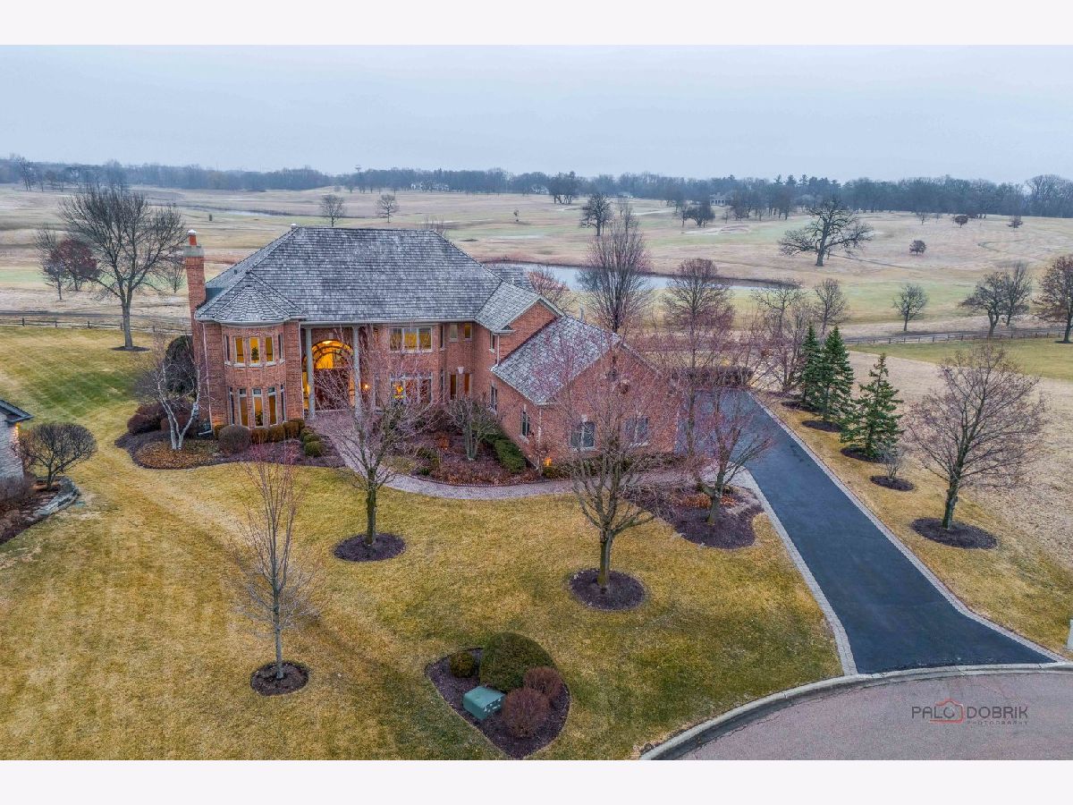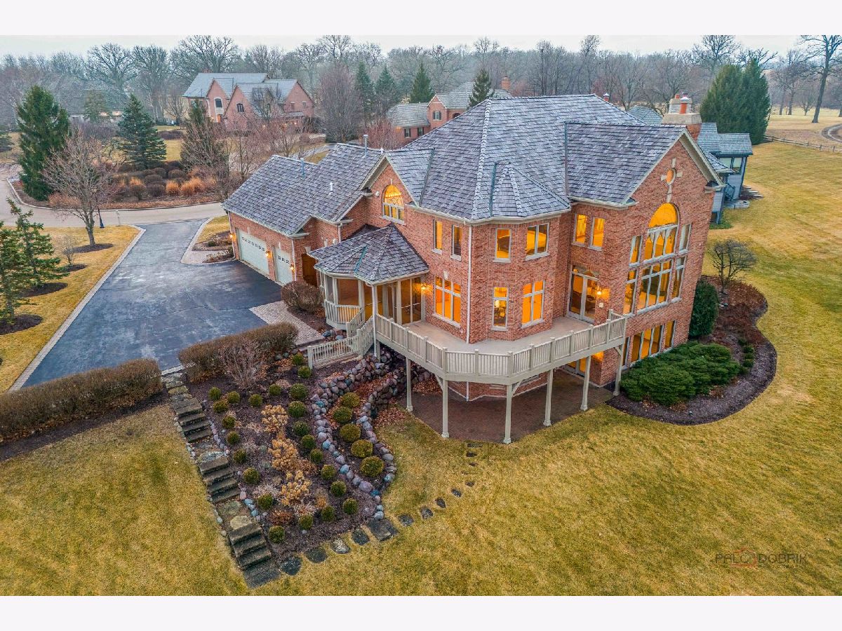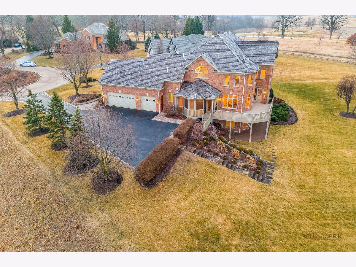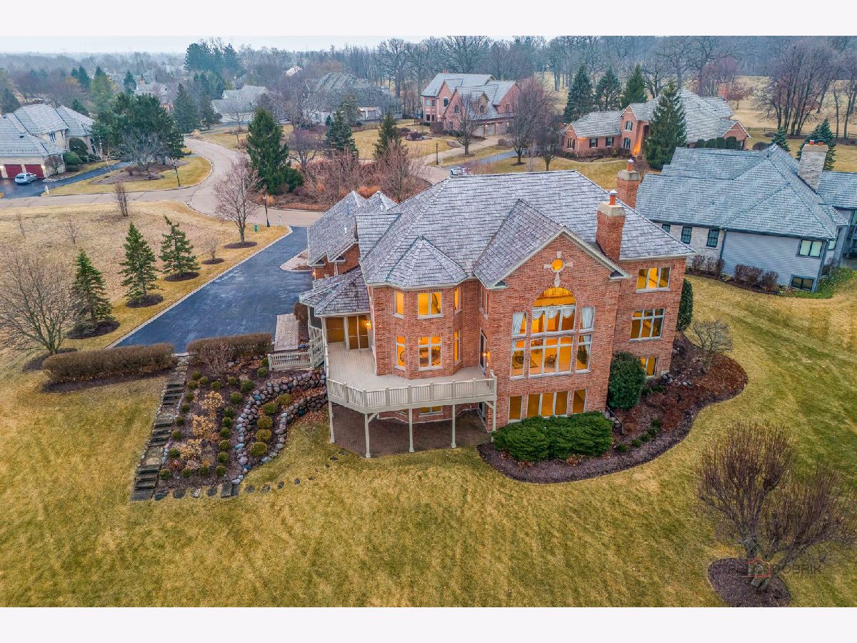 Incredible all-brick 5-bedroom, 5.2-bath home nestled on a quiet cul-de-sac within a prestigious gated community. Situated on nearly one acre, this beautifully landscaped property overlooks the 4th fairway of the Merit Club Golf Course, offering stunning views of ponds and rolling greens. This impressive residence showcases exceptional craftsmanship with detailed millwork, custom built-ins, elegant columns, arched doorways, inlaid hardwood floors, and high-profile moldings throughout. Luxury begins at the grand entrance with an oversized front door leading into a dramatic two-story foyer featuring a sweeping staircase and statement chandelier. The living room offers a tray ceiling, charming bay window, and cozy fireplace, while the formal dining room provides the perfect setting for entertaining and special gatherings. The gourmet kitchen features a large center island with breakfast bar and prep sink, granite countertops, a spacious walk-in pantry, and newer stainless steel appliances including a double oven. The bright and open eating area leads to a screened-in porch, ideal for enjoying the scenic surroundings. The breathtaking family room boasts a wall of windows, a fireplace, and access to a partial wraparound deck. A spacious den, laundry room, and powder room complete the main level. Upstairs, the luxurious primary suite offers spectacular golf course views, two walk-in closets, and a spa-like ensuite bath with dual vanities, whirlpool tub, and separate shower. Three additional bedrooms complete the second level, including two with private ensuites plus an additional full bath. The fully finished walkout basement expands the living space with a fifth bedroom, full bath, and a large recreation room with wet bar and access to a brick paver patio-perfect for entertaining or relaxing. Additional highlights include professional landscaping and a heated three-car garage. Enjoy resort-style living in this spectacular gated community adjacent to a private golf club, while being just minutes from shopping, dining, the train, and tollway access.