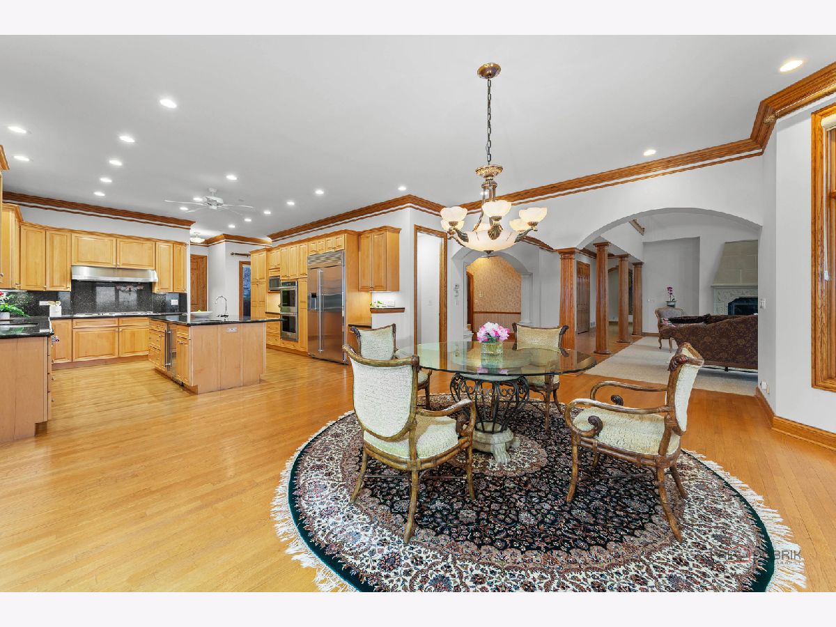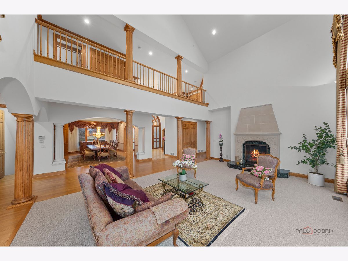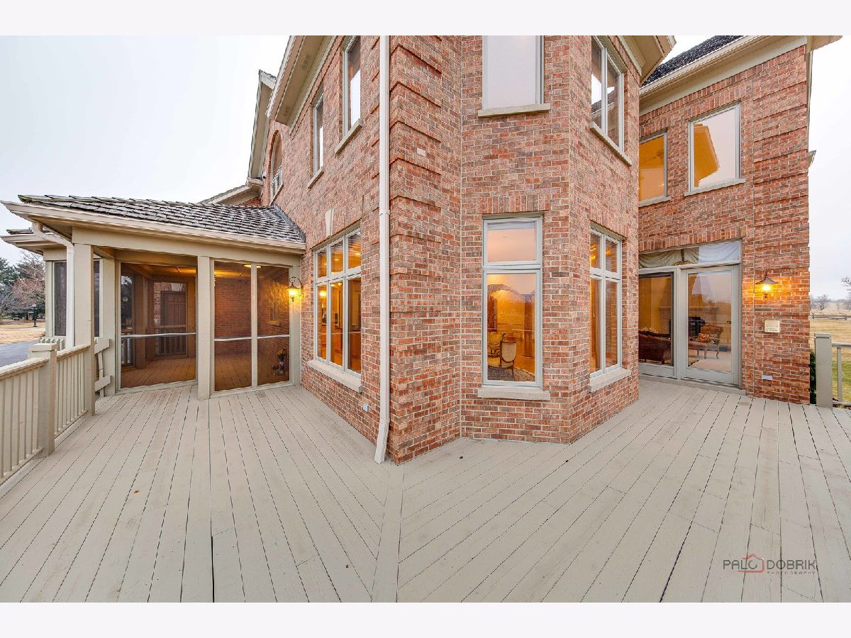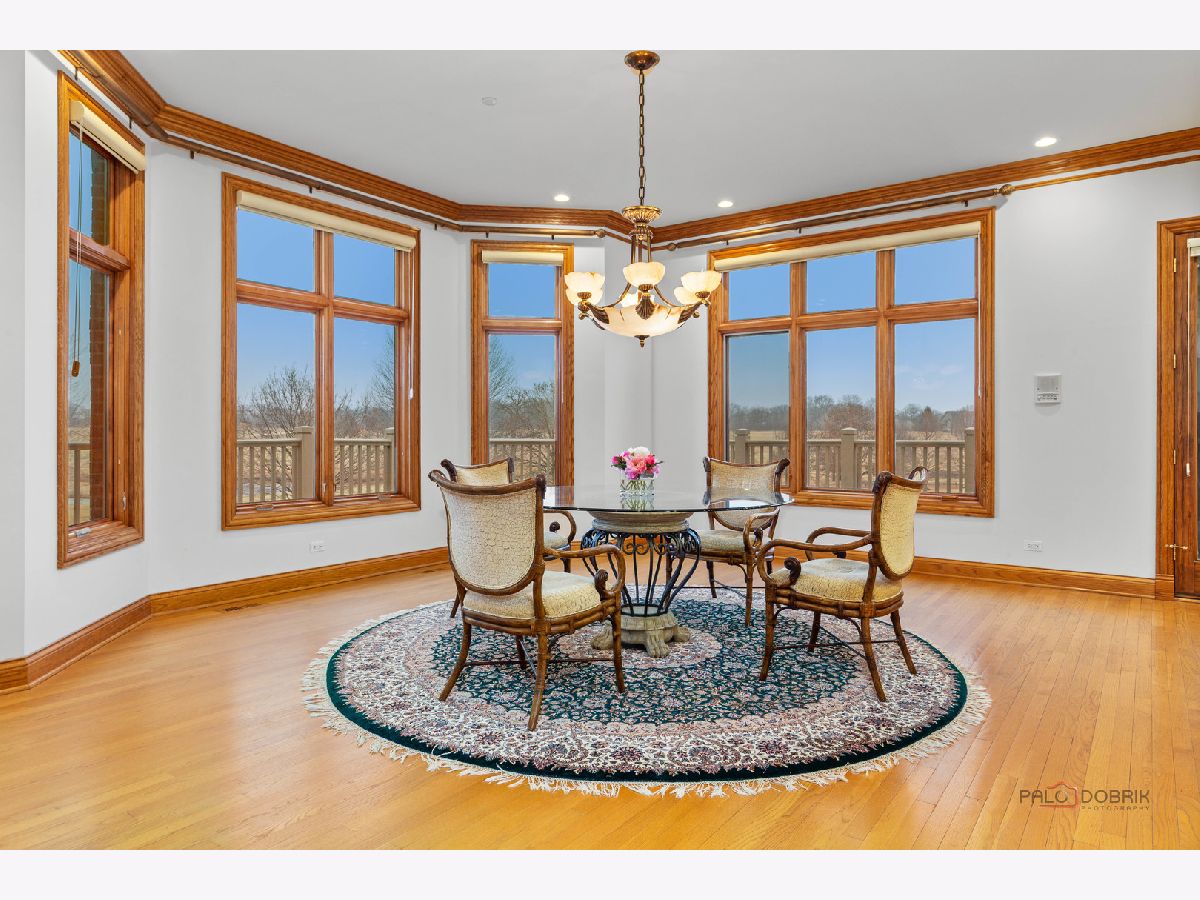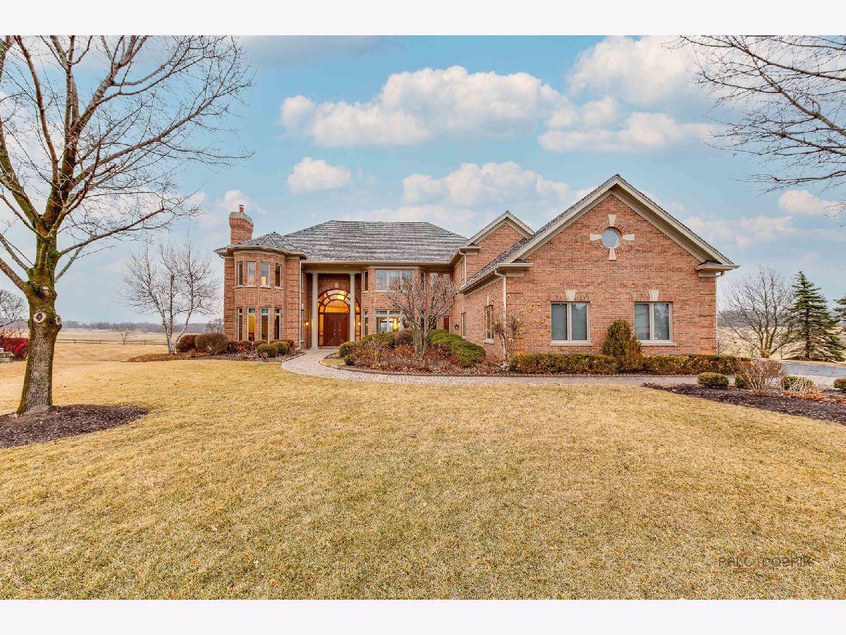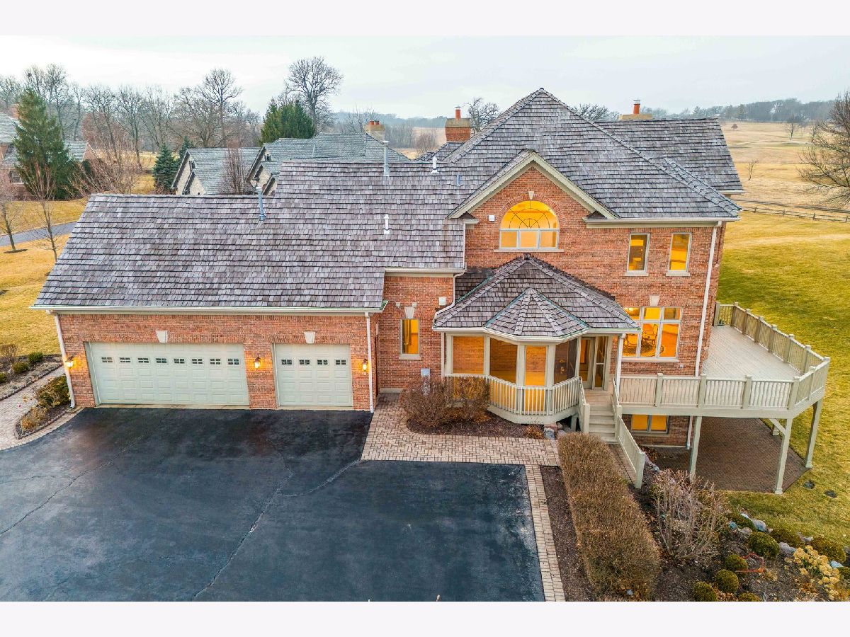 Incredible all-brick 5-bedroom, 5.2-bath home nestled on a quiet cul-de-sac within a prestigious gated community. Situated on nearly one acre, this beautifully landscaped property overlooks the 4th fairway of the Merit Club Golf Course, offering stunning views of ponds and rolling greens. This impressive residence showcases exceptional craftsmanship with detailed millwork, custom built-ins, elegant columns, arched doorways, inlaid hardwood floors, and high-profile moldings throughout. Luxury begins at the grand entrance with an oversized front door leading into a dramatic two-story foyer featuring a sweeping staircase and statement chandelier. The living room offers a tray ceiling, charming bay window, and cozy fireplace, while the formal dining room provides the perfect setting for entertaining and special gatherings. The gourmet kitchen features a large center island with breakfast bar and prep sink, granite countertops, a spacious walk-in pantry, and newer stainless steel appliances including a double oven. The bright and open eating area leads to a screened-in porch, ideal for enjoying the scenic surroundings. The breathtaking family room boasts a wall of windows, a fireplace, and access to a partial wraparound deck. A spacious den, laundry room, and powder room complete the main level. Upstairs, the luxurious primary suite offers spectacular golf course views, two walk-in closets, and a spa-like ensuite bath with dual vanities, whirlpool tub, and separate shower. Three additional bedrooms complete the second level, including two with private ensuites plus an additional full bath. The fully finished walkout basement expands the living space with a fifth bedroom, full bath, and a large recreation room with wet bar and access to a brick paver patio-perfect for entertaining or relaxing. Additional highlights include professional landscaping and a heated three-car garage. Enjoy resort-style living in this spectacular gated community adjacent to a private golf club, while being just minutes from shopping, dining, the train, and tollway access.