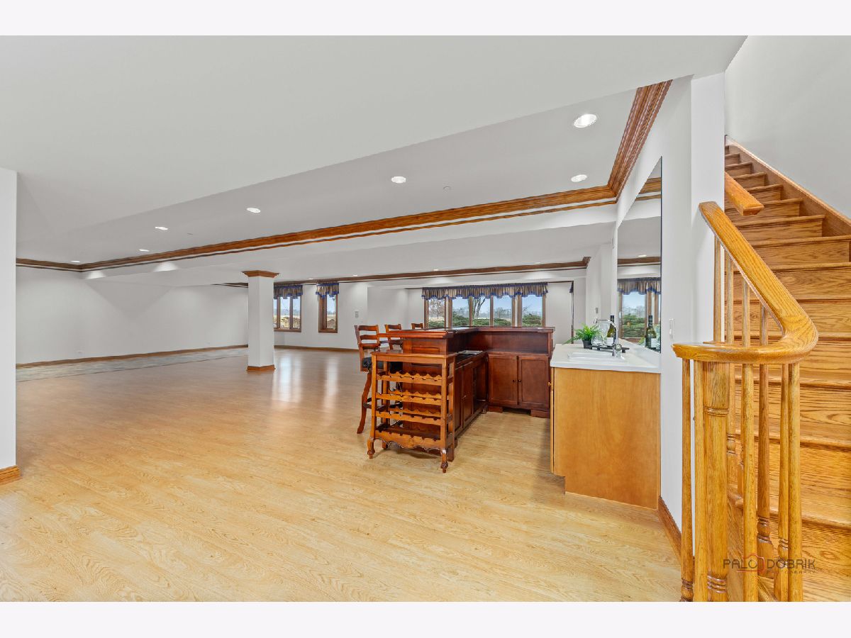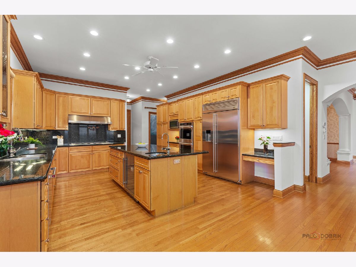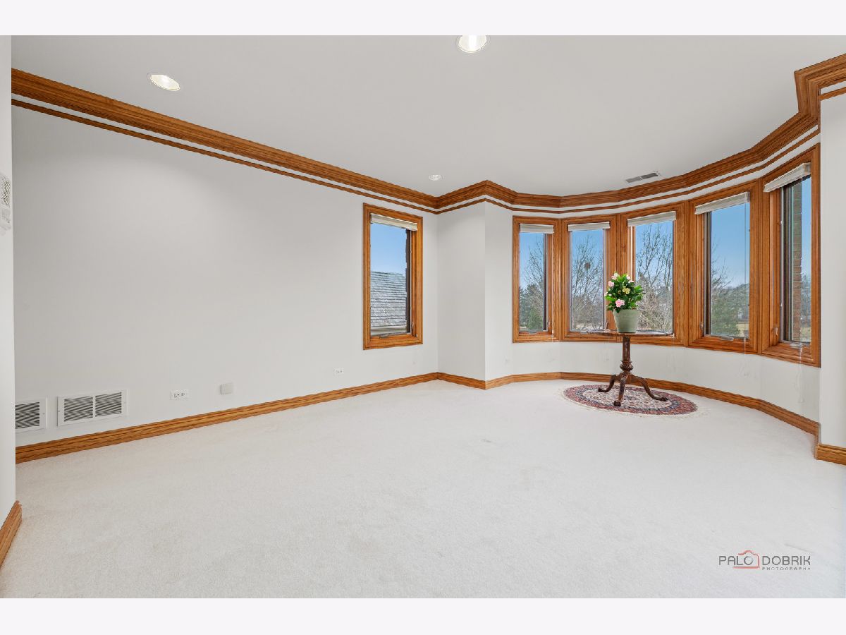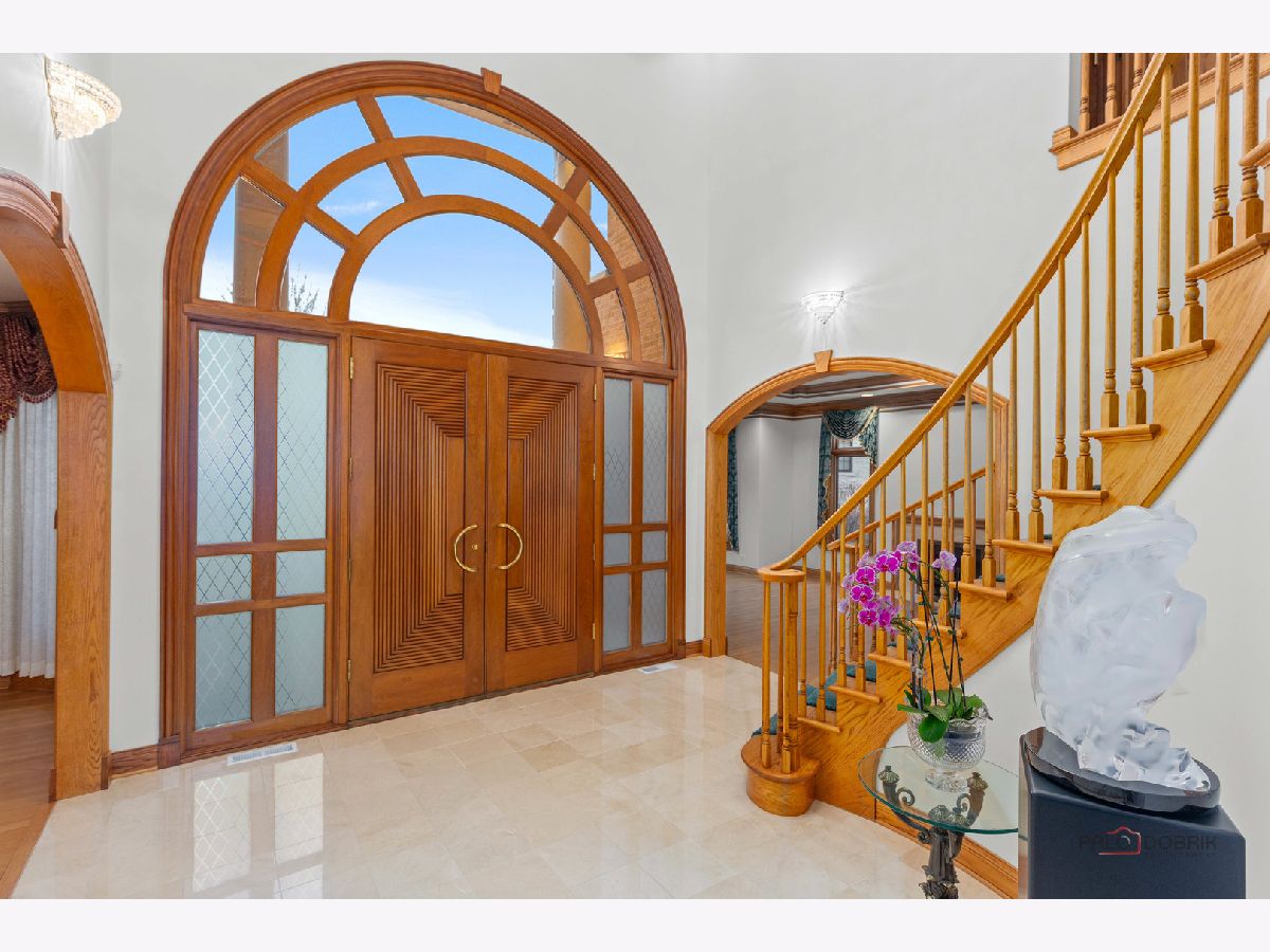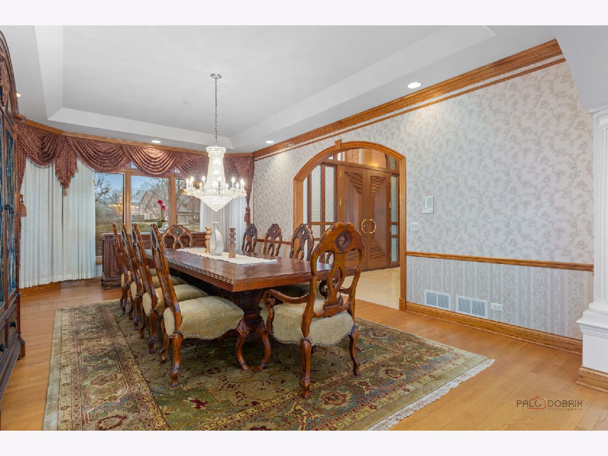 Incredible all-brick 5-bedroom, 5.2-bath home nestled on a quiet cul-de-sac within a prestigious gated community. Situated on nearly one acre, this beautifully landscaped property overlooks the 4th fairway of the Merit Club Golf Course, offering stunning views of ponds and rolling greens. This impressive residence showcases exceptional craftsmanship with detailed millwork, custom built-ins, elegant columns, arched doorways, inlaid hardwood floors, and high-profile moldings throughout. Luxury begins at the grand entrance with an oversized front door leading into a dramatic two-story foyer featuring a sweeping staircase and statement chandelier. The living room offers a tray ceiling, charming bay window, and cozy fireplace, while the formal dining room provides the perfect setting for entertaining and special gatherings. The gourmet kitchen features a large center island with breakfast bar and prep sink, granite countertops, a spacious walk-in pantry, and newer stainless steel appliances including a double oven. The bright and open eating area leads to a screened-in porch, ideal for enjoying the scenic surroundings. The breathtaking family room boasts a wall of windows, a fireplace, and access to a partial wraparound deck. A spacious den, laundry room, and powder room complete the main level. Upstairs, the luxurious primary suite offers spectacular golf course views, two walk-in closets, and a spa-like ensuite bath with dual vanities, whirlpool tub, and separate shower. Three additional bedrooms complete the second level, including two with private ensuites plus an additional full bath. The fully finished walkout basement expands the living space with a fifth bedroom, full bath, and a large recreation room with wet bar and access to a brick paver patio-perfect for entertaining or relaxing. Additional highlights include professional landscaping and a heated three-car garage. Enjoy resort-style living in this spectacular gated community adjacent to a private golf club, while being just minutes from shopping, dining, the train, and tollway access.