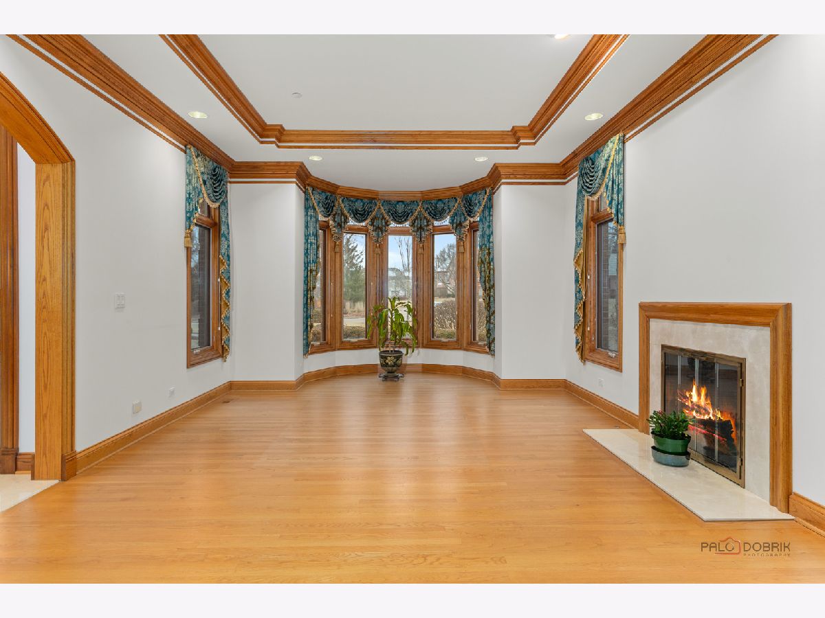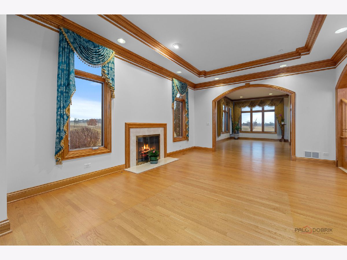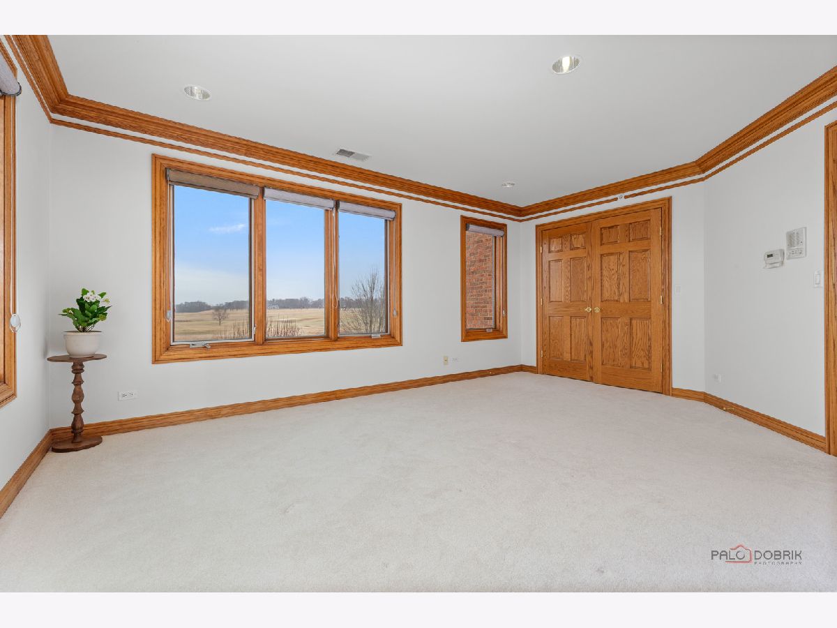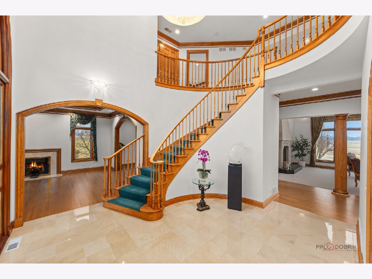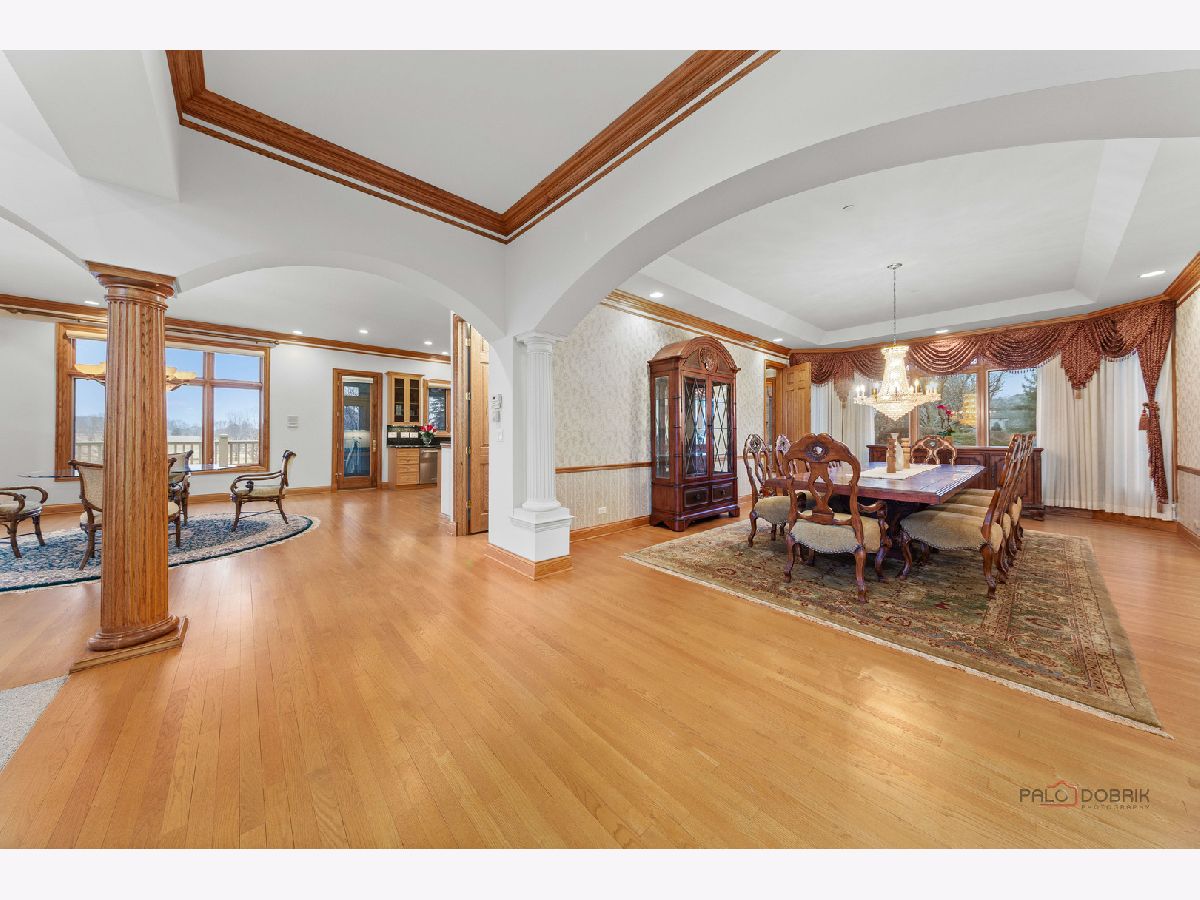 Incredible all-brick 5-bedroom, 5.2-bath home nestled on a quiet cul-de-sac within a prestigious gated community. Situated on nearly one acre, this beautifully landscaped property overlooks the 4th fairway of the Merit Club Golf Course, offering stunning views of ponds and rolling greens. This impressive residence showcases exceptional craftsmanship with detailed millwork, custom built-ins, elegant columns, arched doorways, inlaid hardwood floors, and high-profile moldings throughout. Luxury begins at the grand entrance with an oversized front door leading into a dramatic two-story foyer featuring a sweeping staircase and statement chandelier. The living room offers a tray ceiling, charming bay window, and cozy fireplace, while the formal dining room provides the perfect setting for entertaining and special gatherings. The gourmet kitchen features a large center island with breakfast bar and prep sink, granite countertops, a spacious walk-in pantry, and newer stainless steel appliances including a double oven. The bright and open eating area leads to a screened-in porch, ideal for enjoying the scenic surroundings. The breathtaking family room boasts a wall of windows, a fireplace, and access to a partial wraparound deck. A spacious den, laundry room, and powder room complete the main level. Upstairs, the luxurious primary suite offers spectacular golf course views, two walk-in closets, and a spa-like ensuite bath with dual vanities, whirlpool tub, and separate shower. Three additional bedrooms complete the second level, including two with private ensuites plus an additional full bath. The fully finished walkout basement expands the living space with a fifth bedroom, full bath, and a large recreation room with wet bar and access to a brick paver patio-perfect for entertaining or relaxing. Additional highlights include professional landscaping and a heated three-car garage. Enjoy resort-style living in this spectacular gated community adjacent to a private golf club, while being just minutes from shopping, dining, the train, and tollway access.