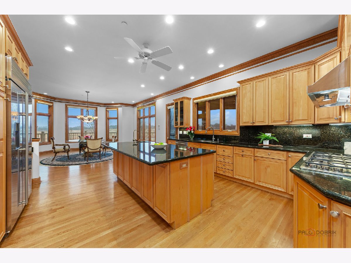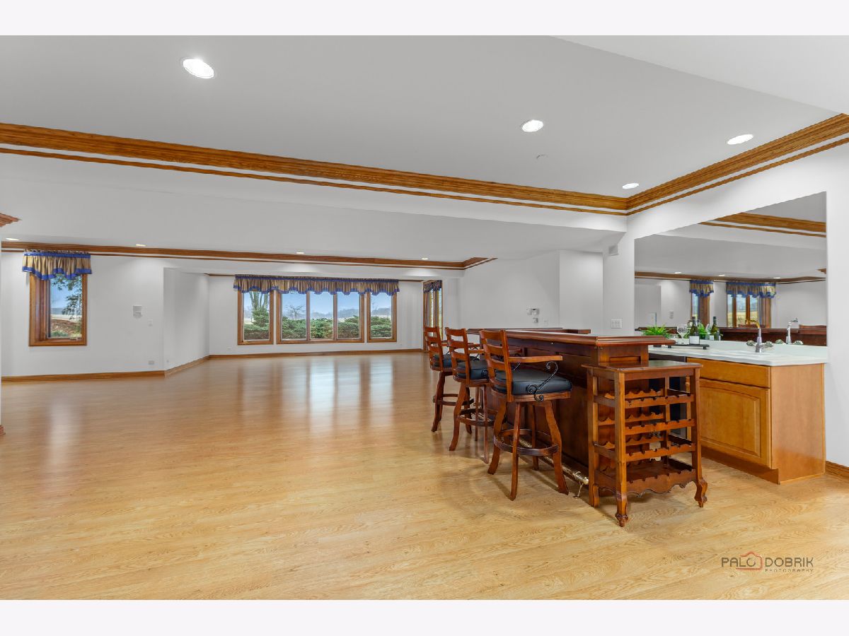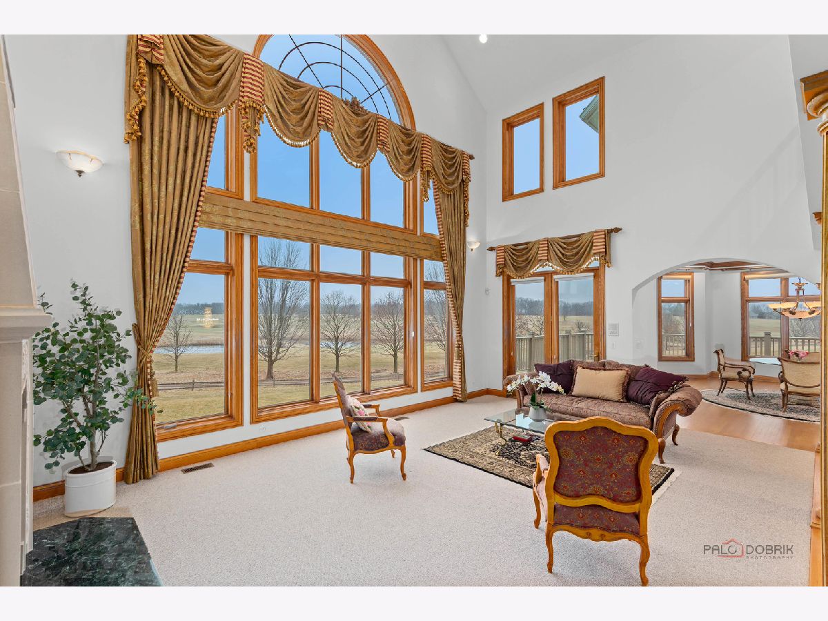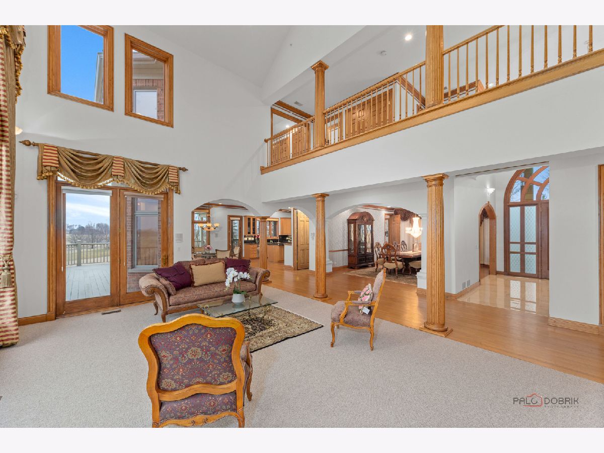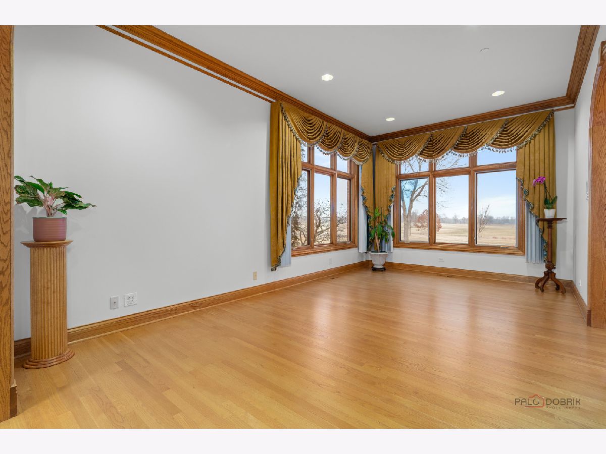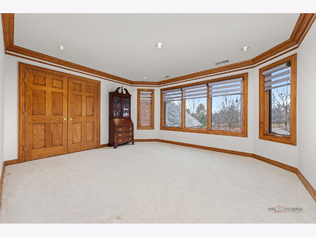 Incredible all-brick 5-bedroom, 5.2-bath home nestled on a quiet cul-de-sac within a prestigious gated community. Situated on nearly one acre, this beautifully landscaped property overlooks the 4th fairway of the Merit Club Golf Course, offering stunning views of ponds and rolling greens. This impressive residence showcases exceptional craftsmanship with detailed millwork, custom built-ins, elegant columns, arched doorways, inlaid hardwood floors, and high-profile moldings throughout. Luxury begins at the grand entrance with an oversized front door leading into a dramatic two-story foyer featuring a sweeping staircase and statement chandelier. The living room offers a tray ceiling, charming bay window, and cozy fireplace, while the formal dining room provides the perfect setting for entertaining and special gatherings. The gourmet kitchen features a large center island with breakfast bar and prep sink, granite countertops, a spacious walk-in pantry, and newer stainless steel appliances including a double oven. The bright and open eating area leads to a screened-in porch, ideal for enjoying the scenic surroundings. The breathtaking family room boasts a wall of windows, a fireplace, and access to a partial wraparound deck. A spacious den, laundry room, and powder room complete the main level. Upstairs, the luxurious primary suite offers spectacular golf course views, two walk-in closets, and a spa-like ensuite bath with dual vanities, whirlpool tub, and separate shower. Three additional bedrooms complete the second level, including two with private ensuites plus an additional full bath. The fully finished walkout basement expands the living space with a fifth bedroom, full bath, and a large recreation room with wet bar and access to a brick paver patio-perfect for entertaining or relaxing. Additional highlights include professional landscaping and a heated three-car garage. Enjoy resort-style living in this spectacular gated community adjacent to a private golf club, while being just minutes from shopping, dining, the train, and tollway access.
