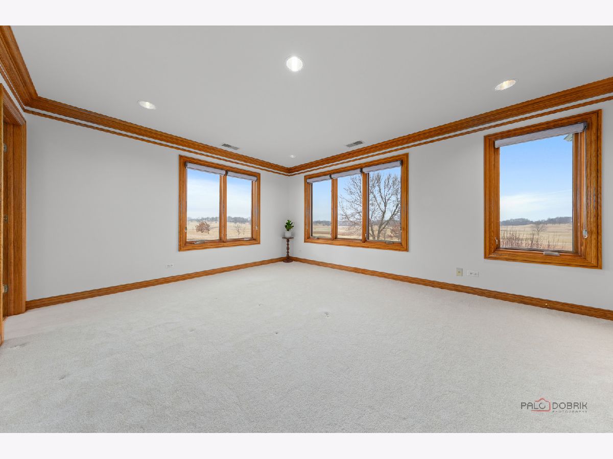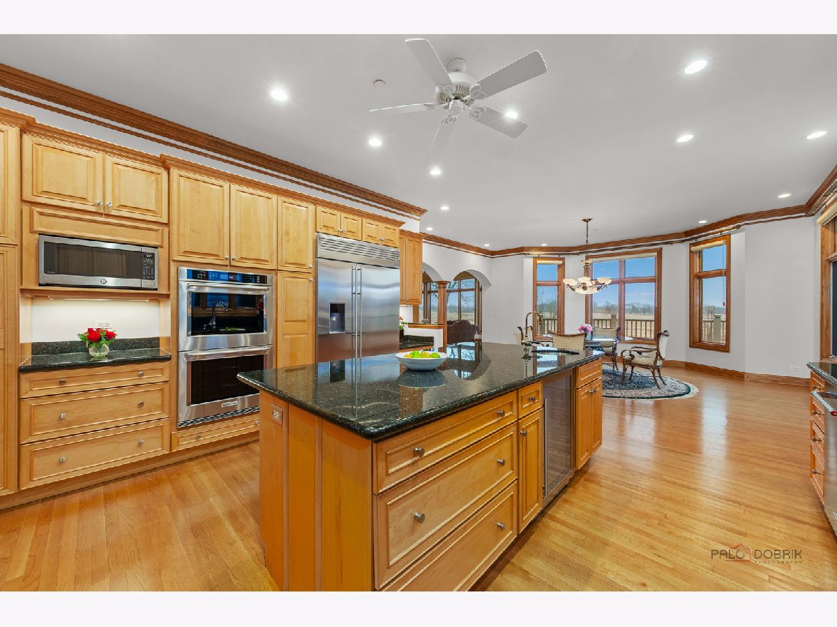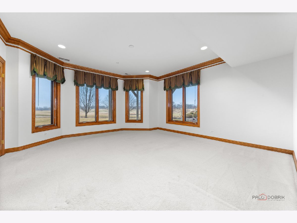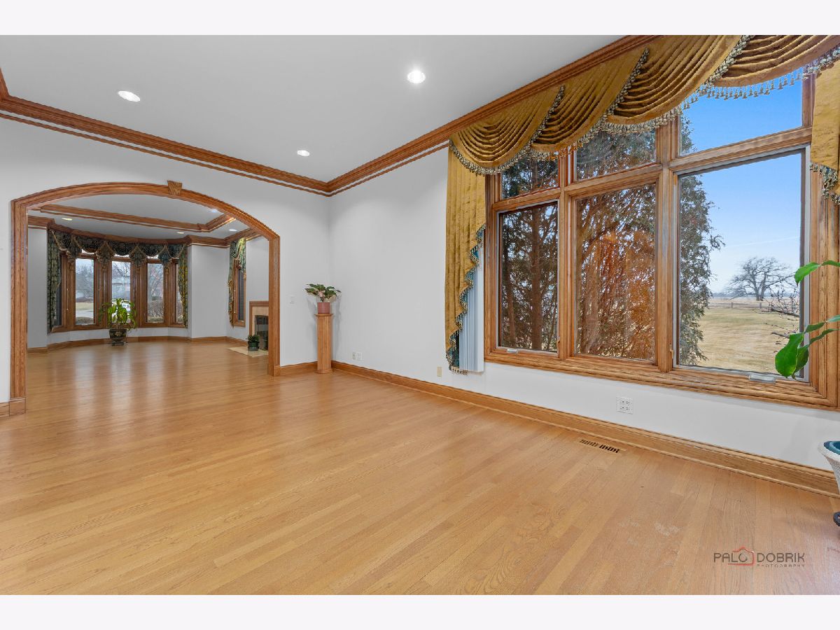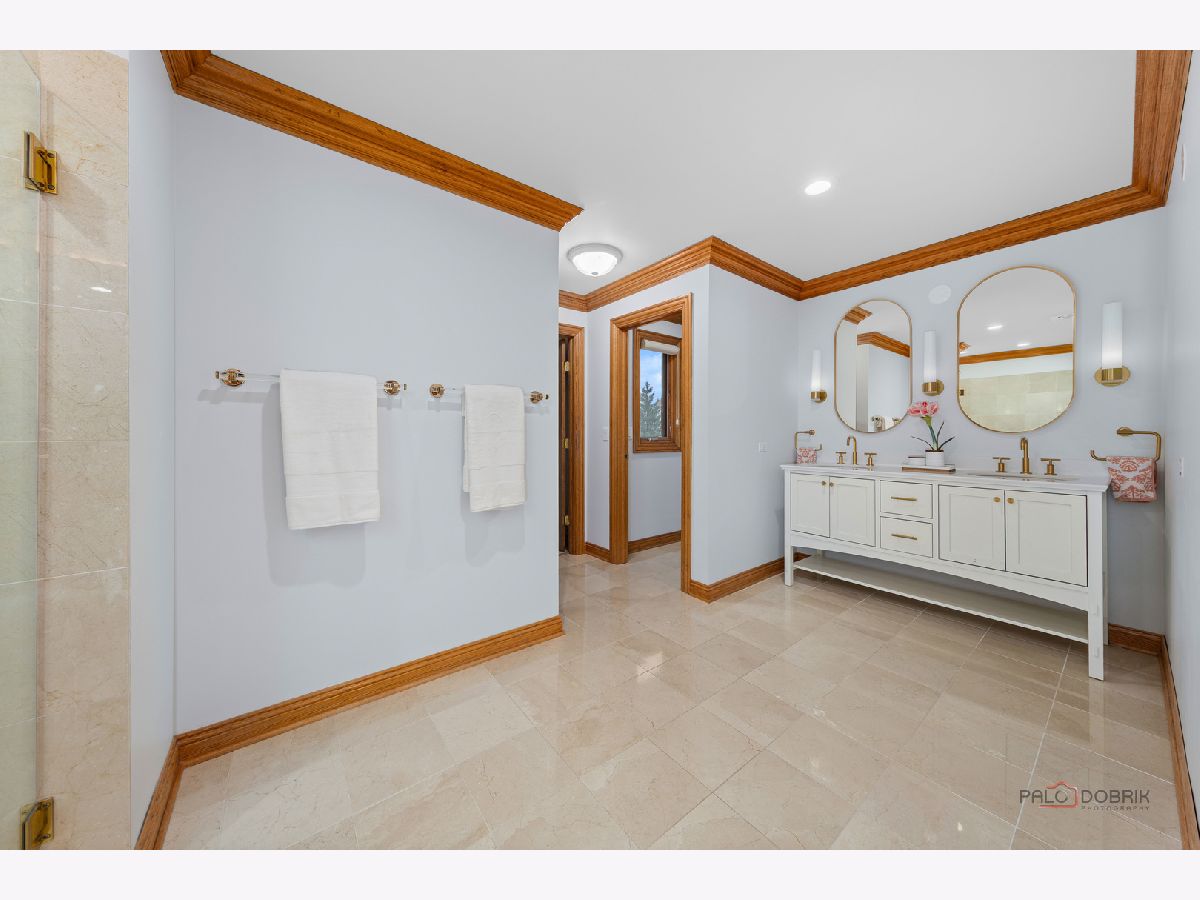 Incredible all-brick 5-bedroom, 5.2-bath home nestled on a quiet cul-de-sac within a prestigious gated community. Situated on nearly one acre, this beautifully landscaped property overlooks the 4th fairway of the Merit Club Golf Course, offering stunning views of ponds and rolling greens. This impressive residence showcases exceptional craftsmanship with detailed millwork, custom built-ins, elegant columns, arched doorways, inlaid hardwood floors, and high-profile moldings throughout. Luxury begins at the grand entrance with an oversized front door leading into a dramatic two-story foyer featuring a sweeping staircase and statement chandelier. The living room offers a tray ceiling, charming bay window, and cozy fireplace, while the formal dining room provides the perfect setting for entertaining and special gatherings. The gourmet kitchen features a large center island with breakfast bar and prep sink, granite countertops, a spacious walk-in pantry, and newer stainless steel appliances including a double oven. The bright and open eating area leads to a screened-in porch, ideal for enjoying the scenic surroundings. The breathtaking family room boasts a wall of windows, a fireplace, and access to a partial wraparound deck. A spacious den, laundry room, and powder room complete the main level. Upstairs, the luxurious primary suite offers spectacular golf course views, two walk-in closets, and a spa-like ensuite bath with dual vanities, whirlpool tub, and separate shower. Three additional bedrooms complete the second level, including two with private ensuites plus an additional full bath. The fully finished walkout basement expands the living space with a fifth bedroom, full bath, and a large recreation room with wet bar and access to a brick paver patio-perfect for entertaining or relaxing. Additional highlights include professional landscaping and a heated three-car garage. Enjoy resort-style living in this spectacular gated community adjacent to a private golf club, while being just minutes from shopping, dining, the train, and tollway access.