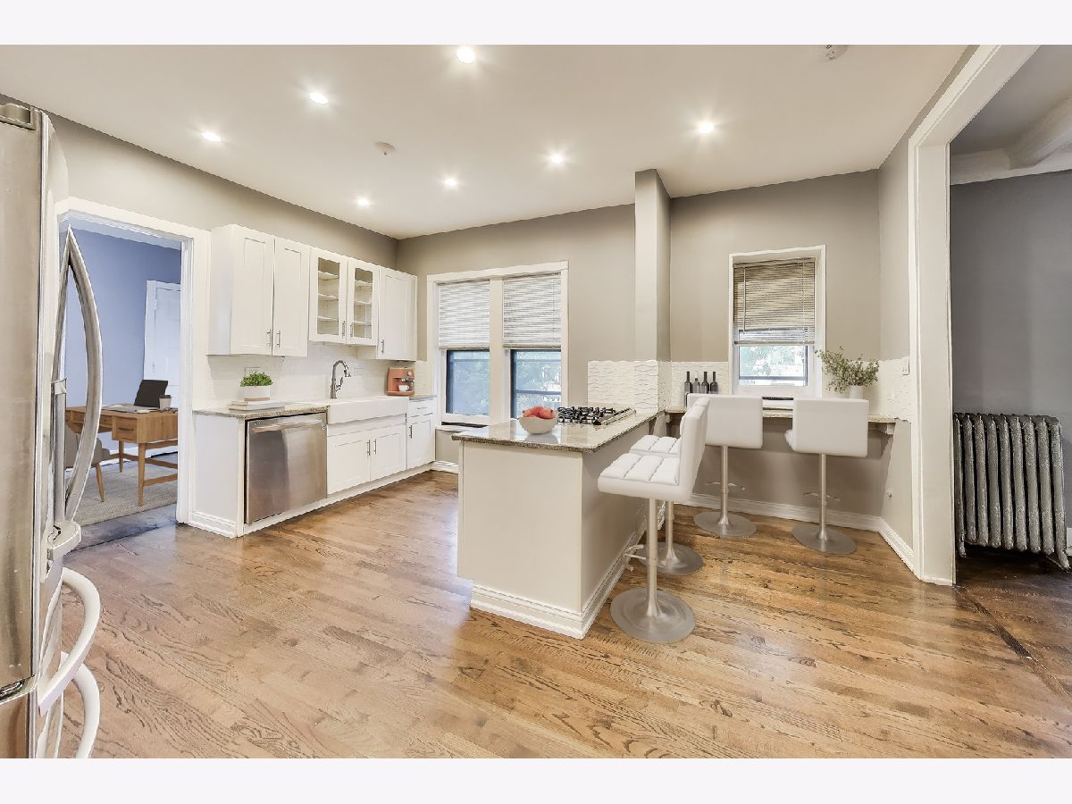 This is Hyde Park living! Contemporary comfort meets timeless charm in this beautifully maintained vintage building, blending classic architectural style with current functionality. Updated corner 3 bedroom, 2 bath filled with natural light and includes a covered balcony. Modern kitchen features granite counters, stainless steel appliances, 42" soft-close cabinetry and tech work area. Spacious layout with formal dining room/family room, large bedrooms with ample closet space. Neutral tones throughout, high beamed ceilings. Washer and dryer included. Amenities include, private park area, bike area, exercise room and additional common laundry room. Just minutes to Whole Foods, Trader Joe's, lakefront, parks, neighborhood restaurants and everyday conveniences. Easy access to DuSable Lake Shore Drive, 90/94, University of Chicago campus and multiple transit options right outside your door. Monthly parking spot available for rent.
