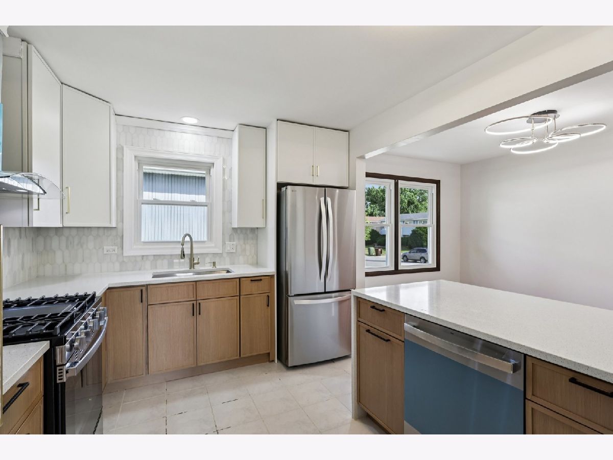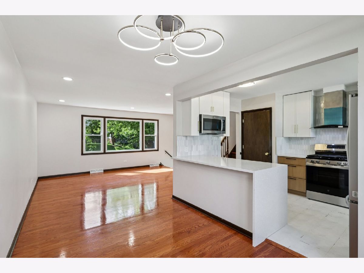 Move right in and enjoy this beautifully updated home in school district 230 just blocks away from Veteren's Park. Welcome to the all new kitchen cabinets, stainless steel appliances with a quartz waterfall on the peninsula. The bathrooms have new vanities, mirrors and modern lighting. Everyone's favorite, the hardwood floors have all been refinished and there is new luxury vinyl plank flooring in the lowest level. New lights on every level. Plus you have all new windows (2025) to enjoy the view of your yard and neighborhood. This smart renovation didn't stop inside. In this home, enjoy the security of knowing you have all new roof,gutters, soffit, facia, and a restored garage with a new roof, door and openers. This house blends curb appeal with peace of mind. It is ready to move in and make it your Home!