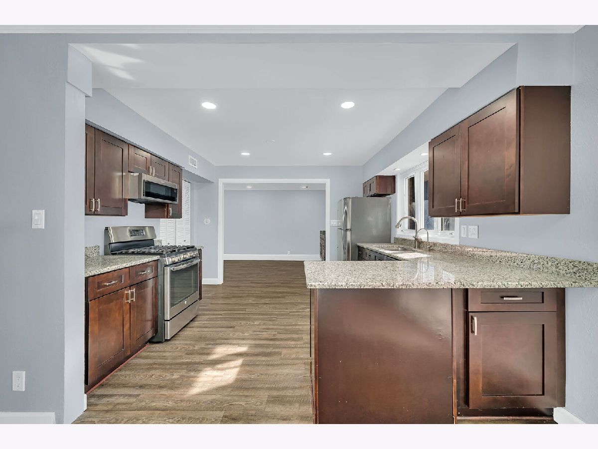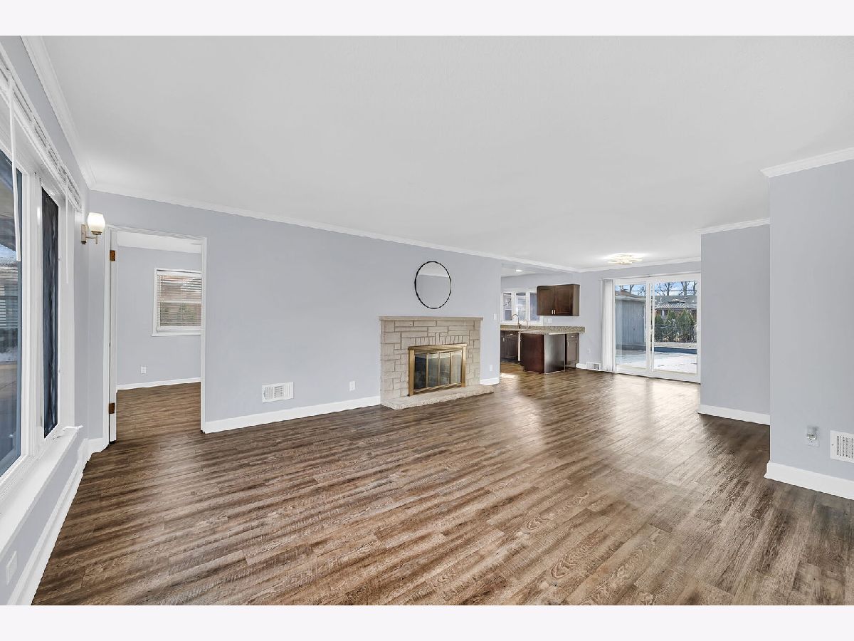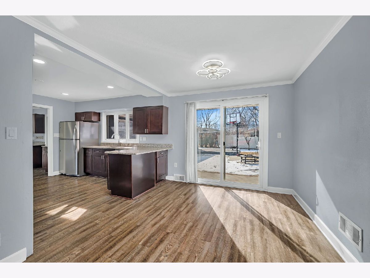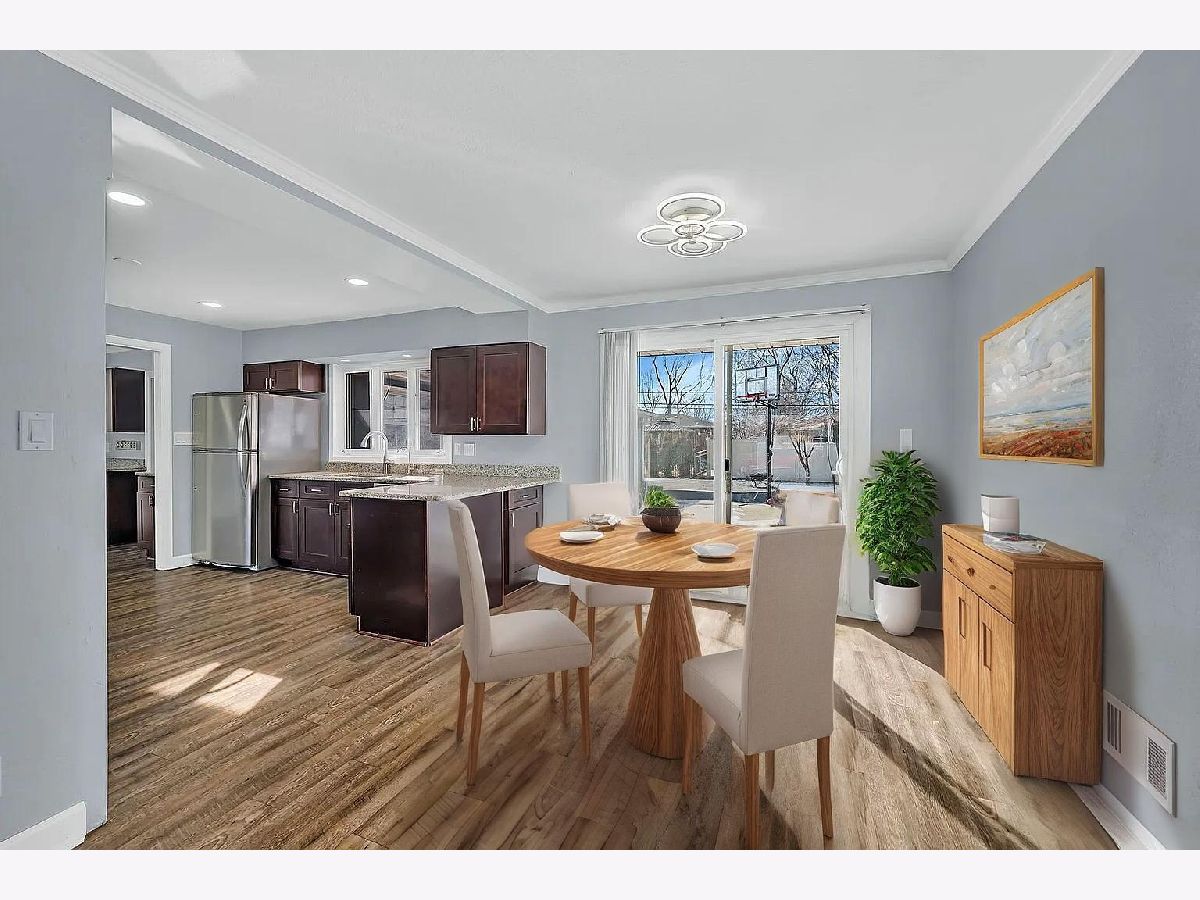 Welcome to this one-level 2,200 sq ft brick home in a quiet, convenient Joliet neighborhood. Inside, you'll find a bright, functional layout perfect for entertaining. The spacious kitchen boasts abundant cabinetry, ample granite countertops, and an open connection to the family room. The huge master bedroom features updated bathroom with double sink and three closets, including a walk-in. A generously sized family room includes a coffee bar and opens to a Den. The dining area flows to a patio through sliding glass doors, perfect for summer relaxation. Recess lighting in kitchen and family room. Freshly painted throughout, with a new furnace and AC installed in 2025. The fully fenced yard adds privacy. Located in west Joliet near shopping, dining, public transportation, and major expressways. This clean home is move-in ready and waiting for you.