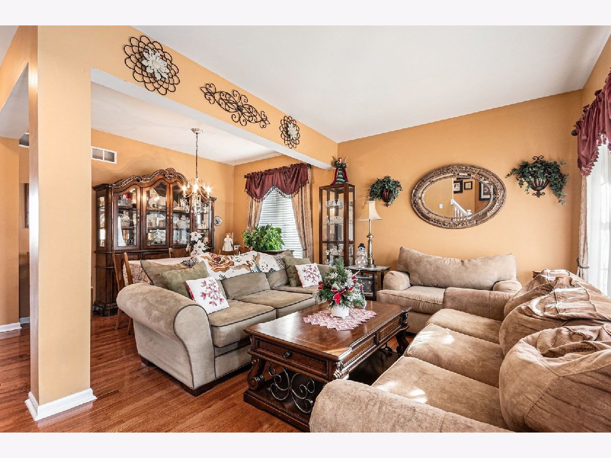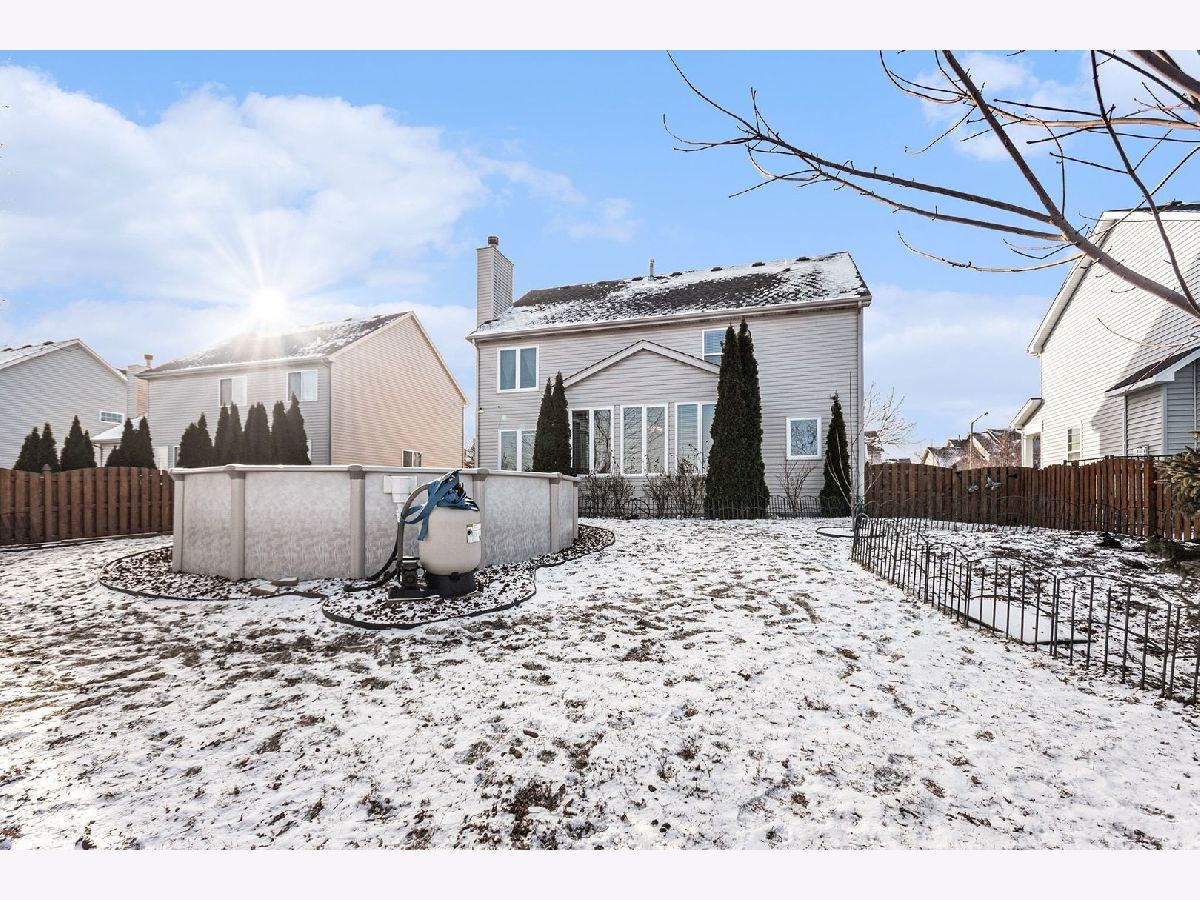 Step into comfort and style in this impeccably maintained, move-in ready, 5-bedroom, 2.5-bath home offering space, style, and thoughtful upgrades throughout. The expansive gourmet eat-in kitchen is a standout, featuring 42" maple cabinetry, granite countertops, ceramic tile flooring, and stainless-steel appliances-perfect for everyday living and entertaining alike. Hardwood floors span the main level and are complemented by brushed nickel fixtures, an updated trim package, and classic six-panel doors. The warm and inviting family room centers around a gas fireplace with mantel and logs, creating a comfortable gathering space. Retreat to the spacious primary suite offering a private ensuite bath and a walk-in closet with custom organizers. Fresh paint in most rooms, whole-house blinds, and window coverings complete the move-in ready feel. Additional features include a full unfinished basement offering endless potential, a 2.5-car garage, and an upstairs laundry room with built-in cabinetry. Notable updates include a new furnace (2025), hot water heater (approx. 2018), sump pump (approx. 2018), and a whole-house water softener with reverse osmosis in the kitchen. Step outside to a backyard oasis highlighted by professionally designed, exquisite landscaping with a stunning array of mature foliage, including vibrant red and yellow rose bushes, lush hydrangeas, graceful climbing clematis, forsythia, along with a variety of mature crabapple, pine, cherry, and maple trees. Along the north side of the backyard is a beautifully established shade garden featuring a Japanese maple, multiple varieties of hostas, and bleeding hearts. Enjoy outdoor living on the colored stamped concrete patio, all within a fenced yard complete with an above-ground pool-ideal for relaxing, entertaining, or enjoying peaceful garden views. Storm doors on the front entry and interior garage door add everyday convenience. Ideally located near shopping, dining, and expressways.