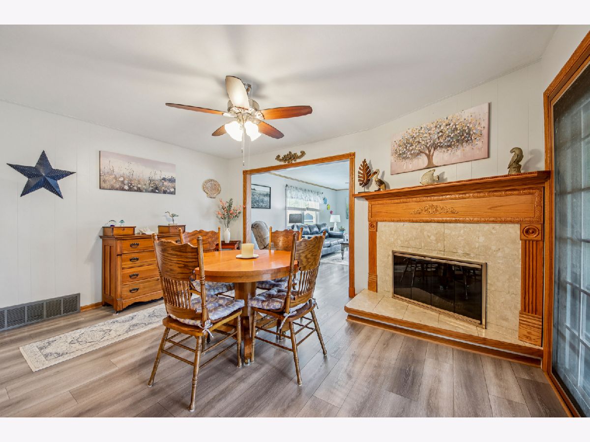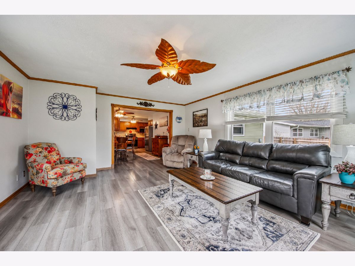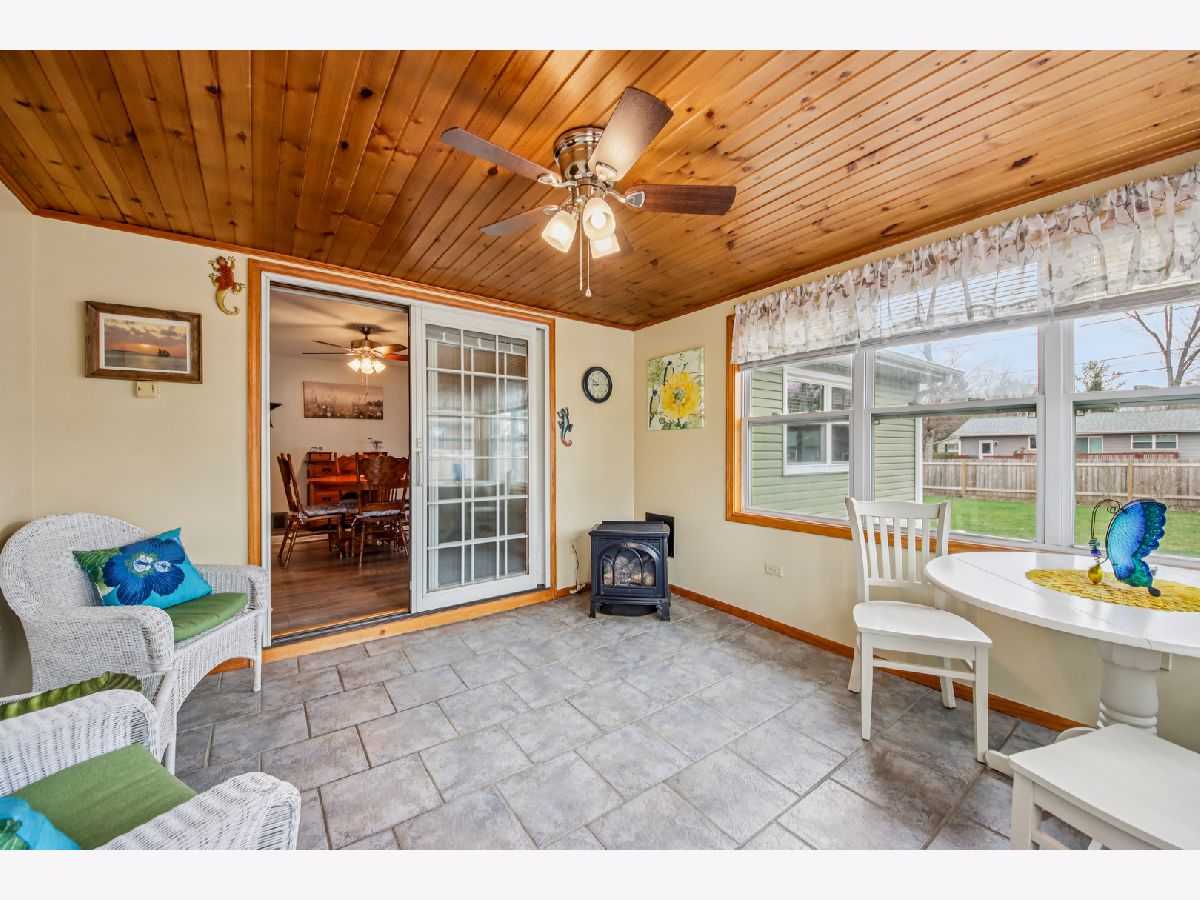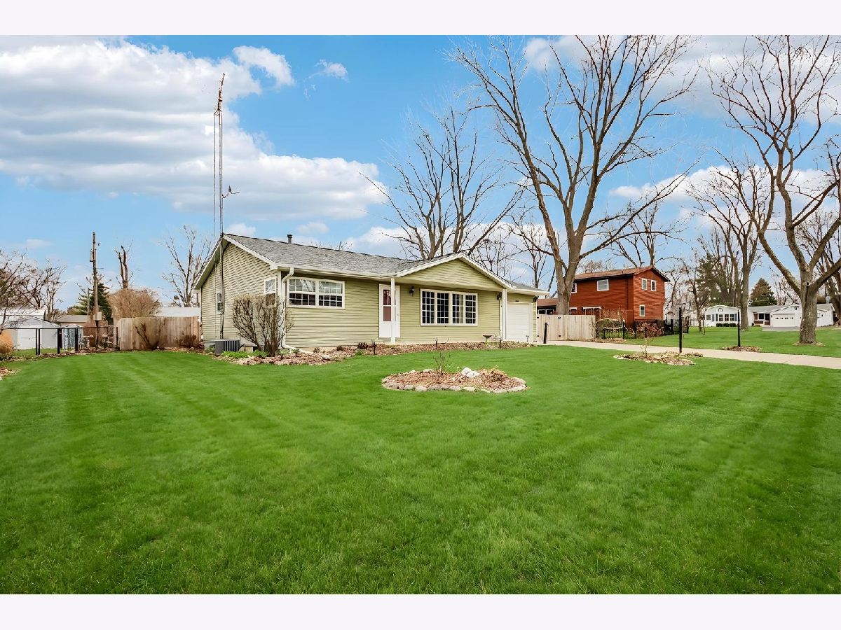 Charming ranch home in a prime Sycamore location-just minutes from schools, parks, and scenic walking paths! This well-maintained 3-bedroom, 1.1-bath home offers an abundance of living space, including a bright living room, spacious family room, and a beautiful three-season room-all on the main level. A covered front porch welcomes you inside to a sunny living room featuring a large picture window that fills the space with natural light. The kitchen is enhanced by a solar tube for added brightness, includes all appliances, and flows seamlessly into the dining room with a cozy corner fireplace. The expansive family room is a true highlight, boasting three walls of windows and the inviting three-season room is perfect for relaxing or entertaining to enjoy the summer. The private bedroom wing features three generously sized bedrooms and a well-appointed hall bath with a deep tub/shower combo. A conveniently located powder room adds extra functionality. The finished basement offers a large recreation room and exceptional storage space. Recent updates include a new roof and gutters. Outside, enjoy a concrete driveway, attached garage, and a huge fenced yard complete with a patio and firepit-ideal for outdoor gatherings. This home truly combines comfort, space, and location-don't miss it!