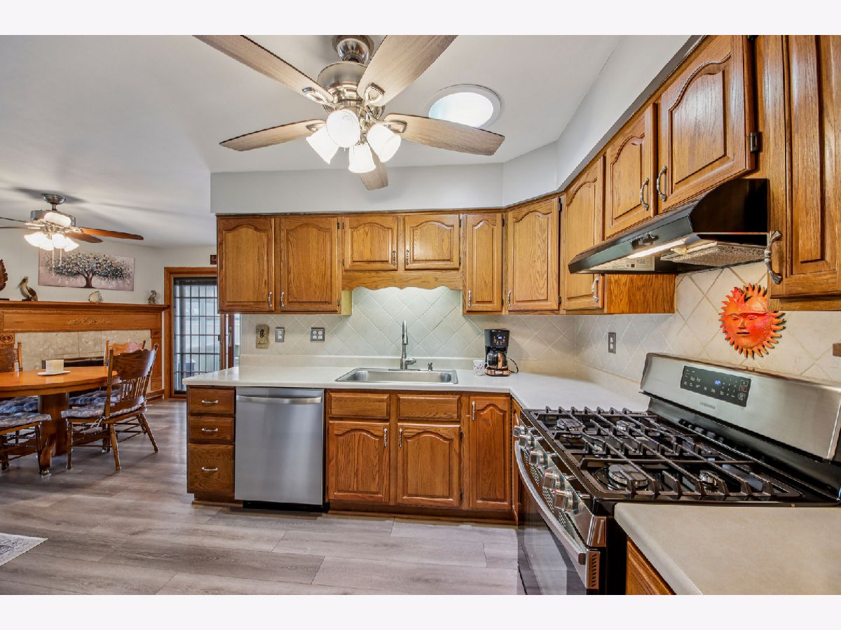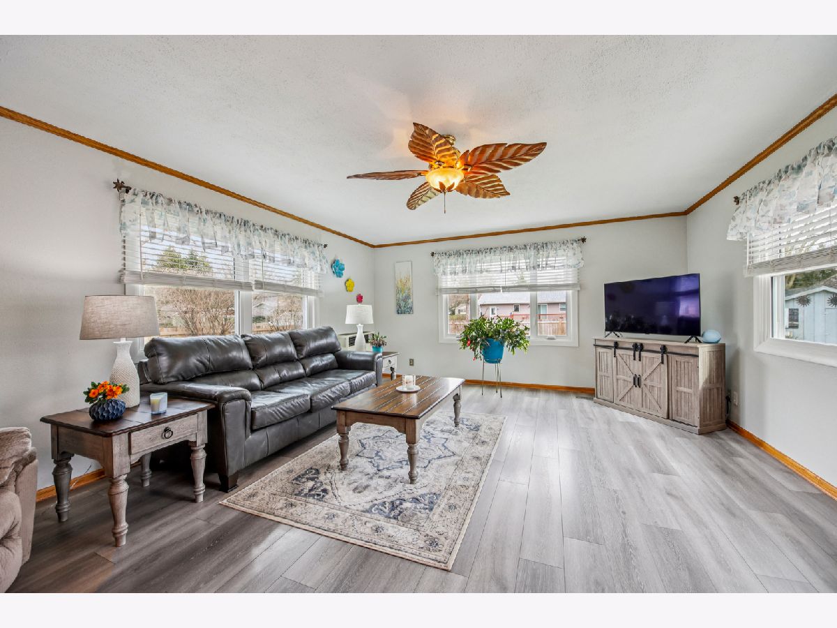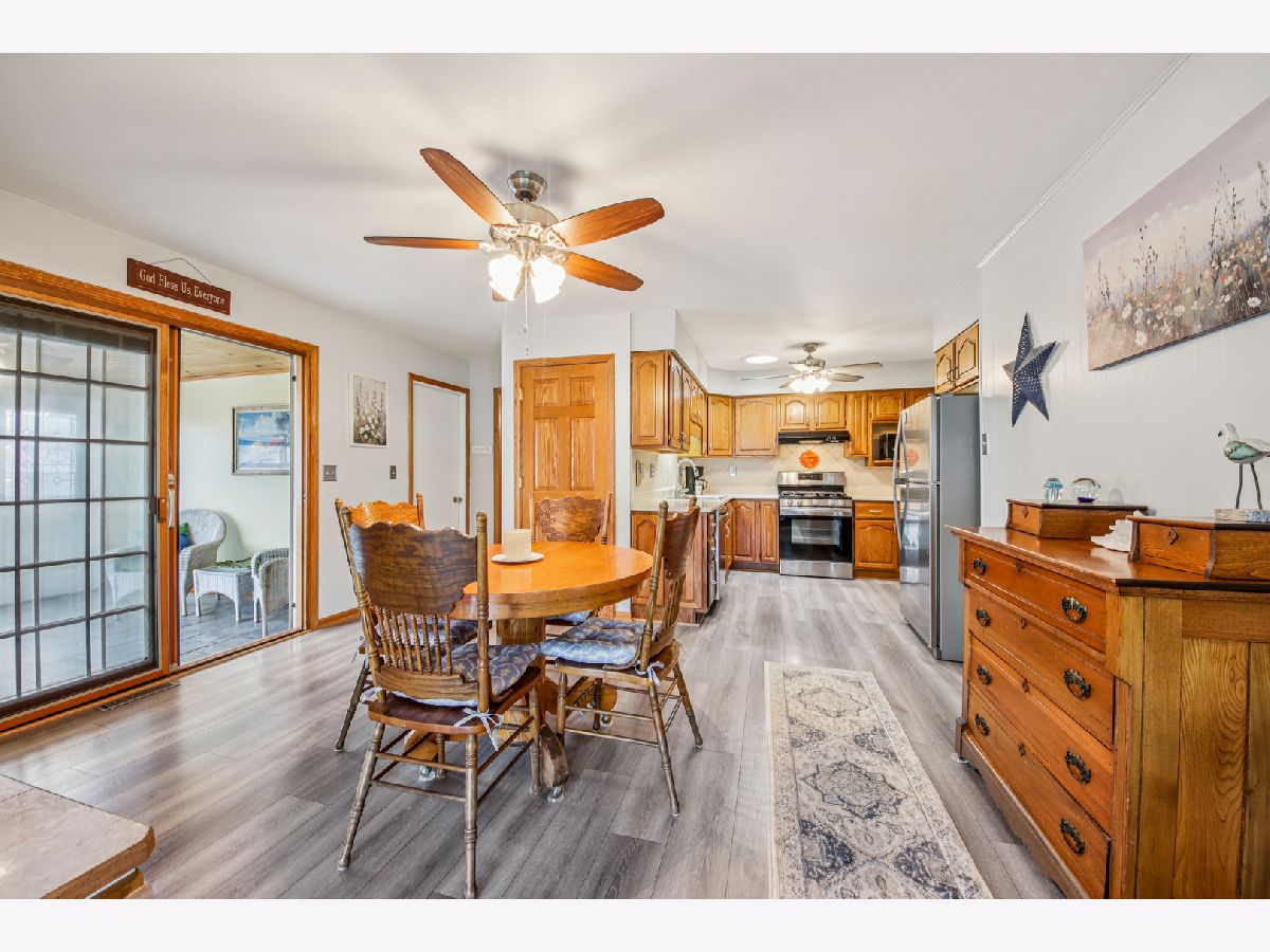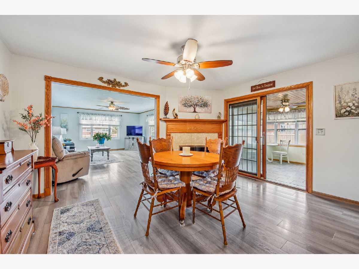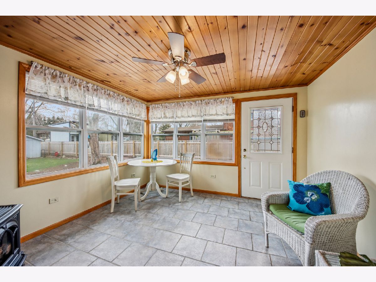 Charming ranch home in a prime Sycamore location-just minutes from schools, parks, and scenic walking paths! This well-maintained 3-bedroom, 1.1-bath home offers an abundance of living space, including a bright living room, spacious family room, and a beautiful three-season room-all on the main level. A covered front porch welcomes you inside to a sunny living room featuring a large picture window that fills the space with natural light. The kitchen is enhanced by a solar tube for added brightness, includes all appliances, and flows seamlessly into the dining room with a cozy corner fireplace. The expansive family room is a true highlight, boasting three walls of windows and the inviting three-season room is perfect for relaxing or entertaining to enjoy the summer. The private bedroom wing features three generously sized bedrooms and a well-appointed hall bath with a deep tub/shower combo. A conveniently located powder room adds extra functionality. The finished basement offers a large recreation room and exceptional storage space. Recent updates include a new roof and gutters. Outside, enjoy a concrete driveway, attached garage, and a huge fenced yard complete with a patio and firepit-ideal for outdoor gatherings. This home truly combines comfort, space, and location-don't miss it!