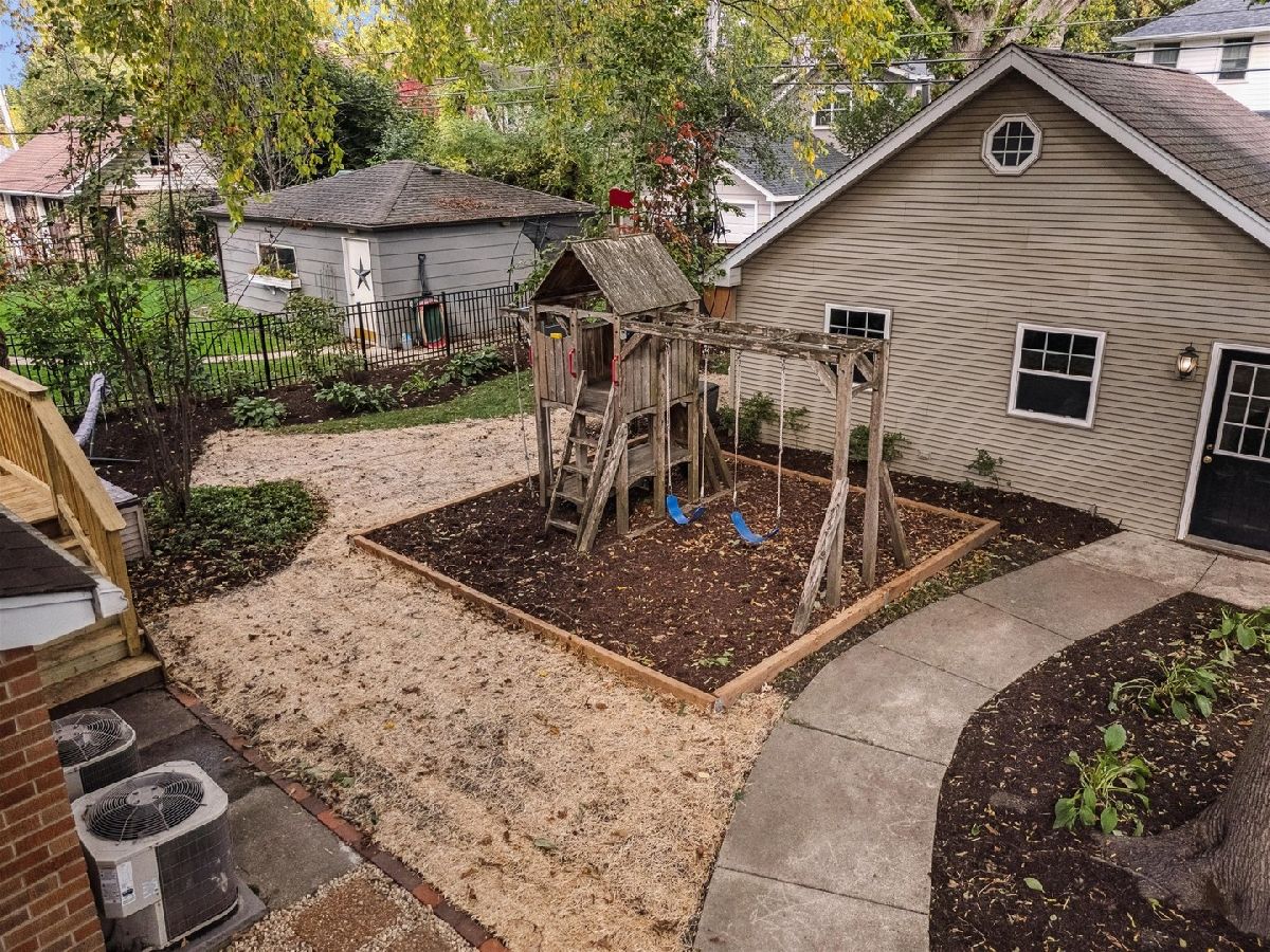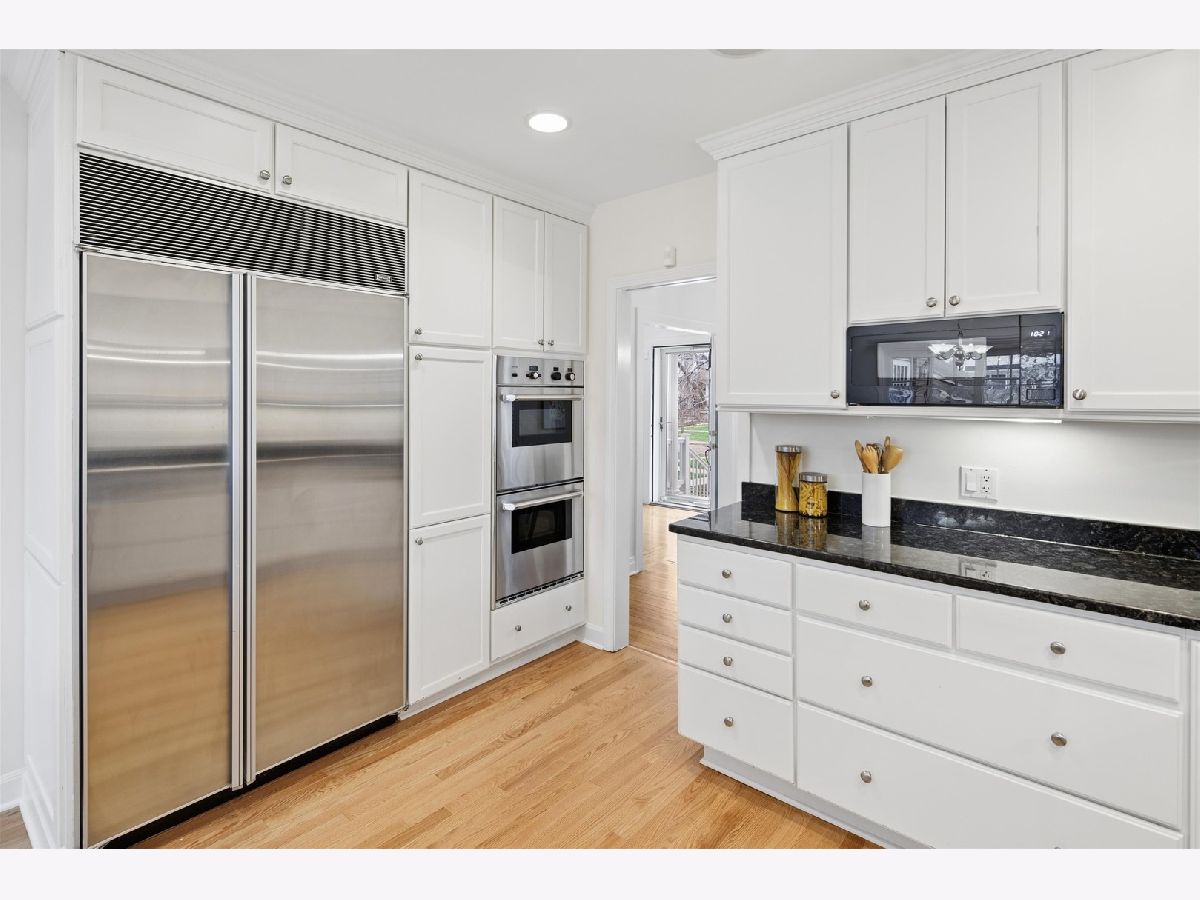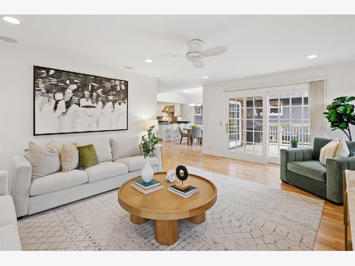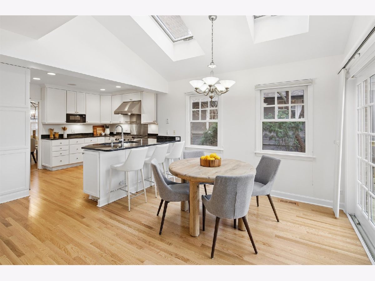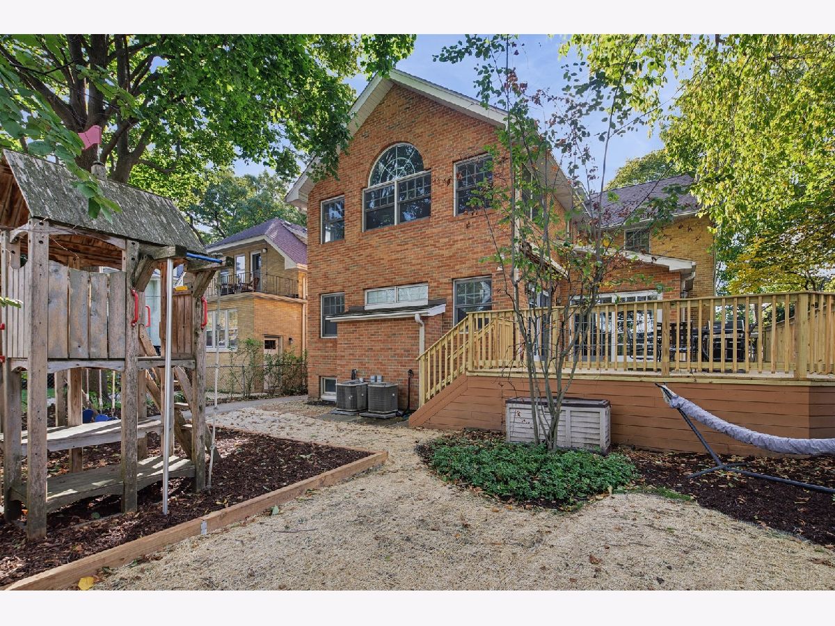 Set on a beautifully landscaped lot in the heart of McKenzie Square, this classic, all-brick center entry Colonial has been exceptionally well maintained and thoughtfully updated over the years. Wonderful flow and space throughout with 5 bedrooms and 3.5 baths, gracious room sizes, finished basement and attic. Enter through a formal foyer with decorative inlay hardwoods and a large coat closet. To the right, a sun-filled formal living room with a wood-burning fireplace and an impressive decorative mantle sets a welcoming tone. Off to the left, the dining room offers generous space for holiday entertaining and quiet dinners at home. The heart of the home is the open kitchen and family room looking out to an oversized deck and backyard. The kitchen features white cabinetry, Thermador/Sub-Zero/Bosch stainless steel appliances, double sink with dedicated water heater, dark granite countertops and breakfast peninsula and a walk-in pantry with pocket door. An eat-in breakfast room with skylights overhead brings in wonderful natural light from above. An enormous walk-out back deck with retractable, motorized awning, accessible from both the breakfast area and the family room, extends the living space, creating a seamless indoor-outdoor flow. Upstairs, the primary suite spans the width of the rear of the home with vaulted ceilings, and windows on three exposures overlooking the deck and backyard. Double walk-in closets with professional organizers and a spacious en-suite bath with a glass-enclosed steam shower with built-in bench, double vanity, and a large linen closet complete the suite. Three additional bedrooms on this level all feature hardwood floors and closet organizers. Cozy and carpeted 3rd floor offers flexible space for a study or playroom with additional storage. The finished basement rounds out the home with 9' ceilings and heated floors, a 5th bedroom, full bath, built-in bar with quartz countertops and beverage fridge, and a separate dedicated wine cellar. 1st floor full size laundry room with newer (2025) side-by-side LG washer/dryer, laundry sink, laundry chute, extra storage and separate mudroom make everyday life easy. Tons of additional features, updates and improvements to hit the practical side of living, including a central vac throughout with kitchen sweep, whole-house tankless water heater, backup generator, Eero high-speed WiFi, recessed lighting, in-ceiling speakers, and a new tear-off roof (2018). The backyard offers a newly resurfaced deck (2025) sized for serious entertaining, a play area with swing set tucked alongside mature plantings, and a detached heated 2.5 car garage. Shutters and hardwood floors including brand new hardwoods in the back half of the main level give the home a cohesive, traditional feel. Amazing McKenzie Square location close to McKenzie School, Howard Park, Metra and downtown Wilmette restaurants and shopping.