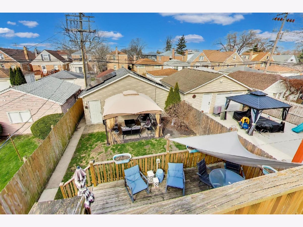 Beautiful Cape Cod located in the highly desirable River Forest Manor! This thoughtfully updated 4-bedroom, 2.1-bath home blends timeless charm with modern features. The bright and spacious home features hardwood floors throughout, crown molding, recessed lighting, and abundant natural light. The main level offers a living room, dining room, two bedrooms, a full bath, and an eat-in kitchen with an island, granite countertops, and stainless steel appliances. Upstairs, you'll find two additional bedrooms, including one with access to an outdoor deck, as well as the primary suite featuring a custom reading nook, built-in shelving, dual closets, and a beautifully updated bathroom with dual granite vanities and a large walk-in shower. The fully finished basement provides excellent additional living space, complete with a large family room, full wet bar, potential fifth bedroom or office, half bath, laundry, storage, and convenient exterior access. Step outside to your private, fully fenced backyard oasis featuring a custom two-tier pergola deck with a built-in hot tub. A paver patio sits just off the two-car detached garage, which includes a rear overhead pass-through door-perfect for seamless indoor-outdoor entertaining. Situated on a gated street for added privacy, this home is just steps from Elmwood Park's Restaurant Row, offering the perfect blend of comfort, style, and location.