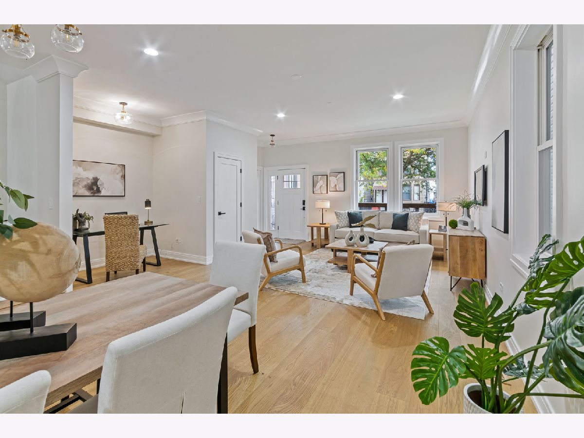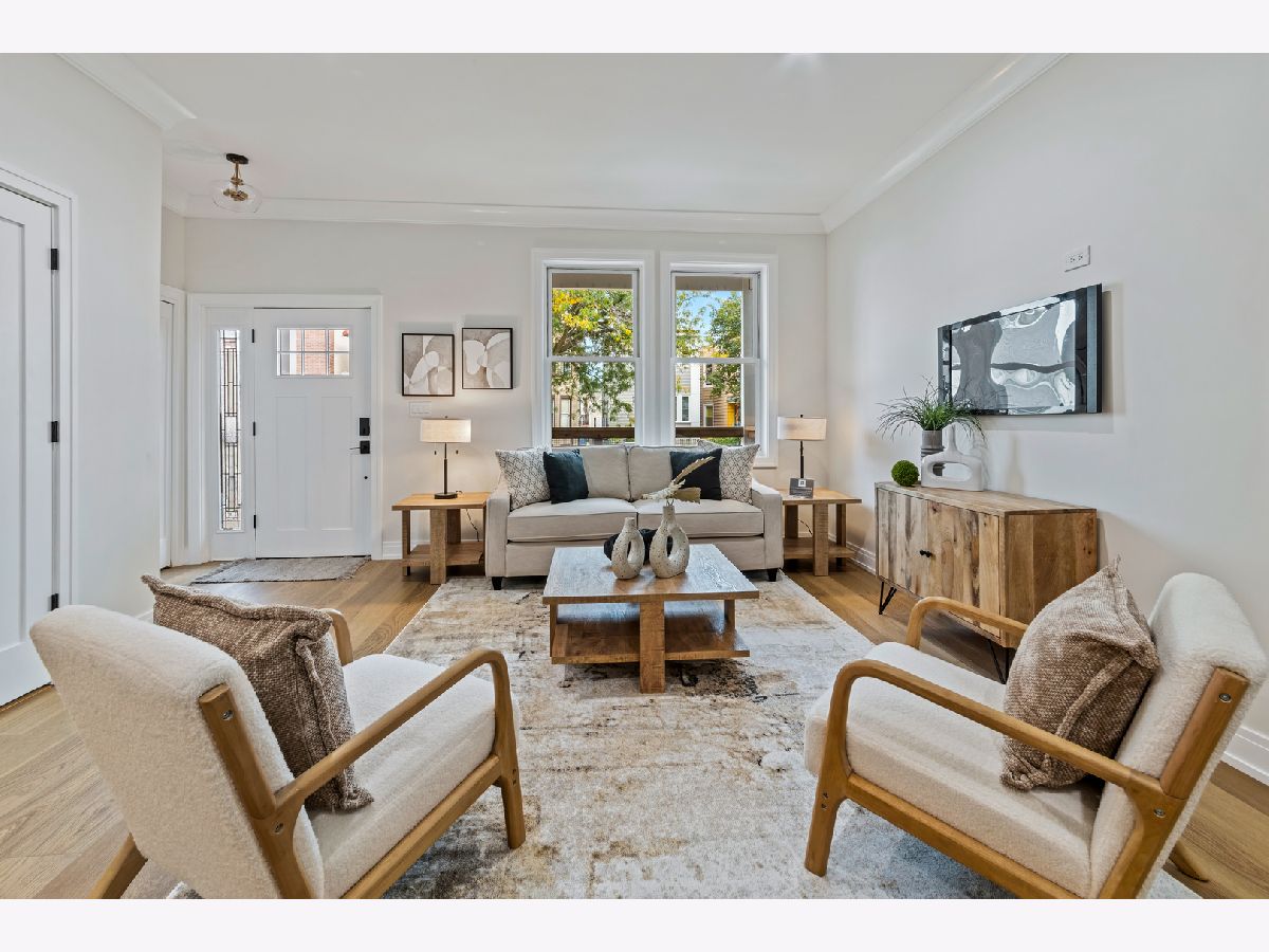 STUNNING NEWLY REHABBED SINGLE FAMILY HOME 1 BLOCK FROM 606 TRAIL Completely rebuilt 4 bed | 3.5 bath home on an oversized 25 x 177 ft extra long Chicago lot. No detail overlooked in this top-to-bottom renovation that blends vintage charm w/high-end modern finishes: - Brand-new white oak floors, painted white trim & doors throughout - Custom hand-built oak and steel stair railings throughout - Gourmet kitchen w/ 42"Shaker cabinets, quartz counters, full backsplash, no appliances included, you get to choose your own. 9 1/2 ft. Custom island - Luxurious primary suite with 2 huge closets + spa bath (dual vanities, oversized shower, dual spray) - Full finished lower level offering family room, 1 extra bedroom, 3rd full bath, huge laundry room, door to backyard w/mudroom - Extended 2-car garage w/extra parking space on alley + extra-long fenced yard & patio perfect for entertaining - Steps to the 606, Palmer Square, and the best of Logan Square dining & nightlife - Quiet one-way street, easy parking & Blue Line access - This one truly has it all!