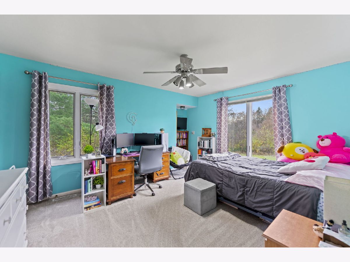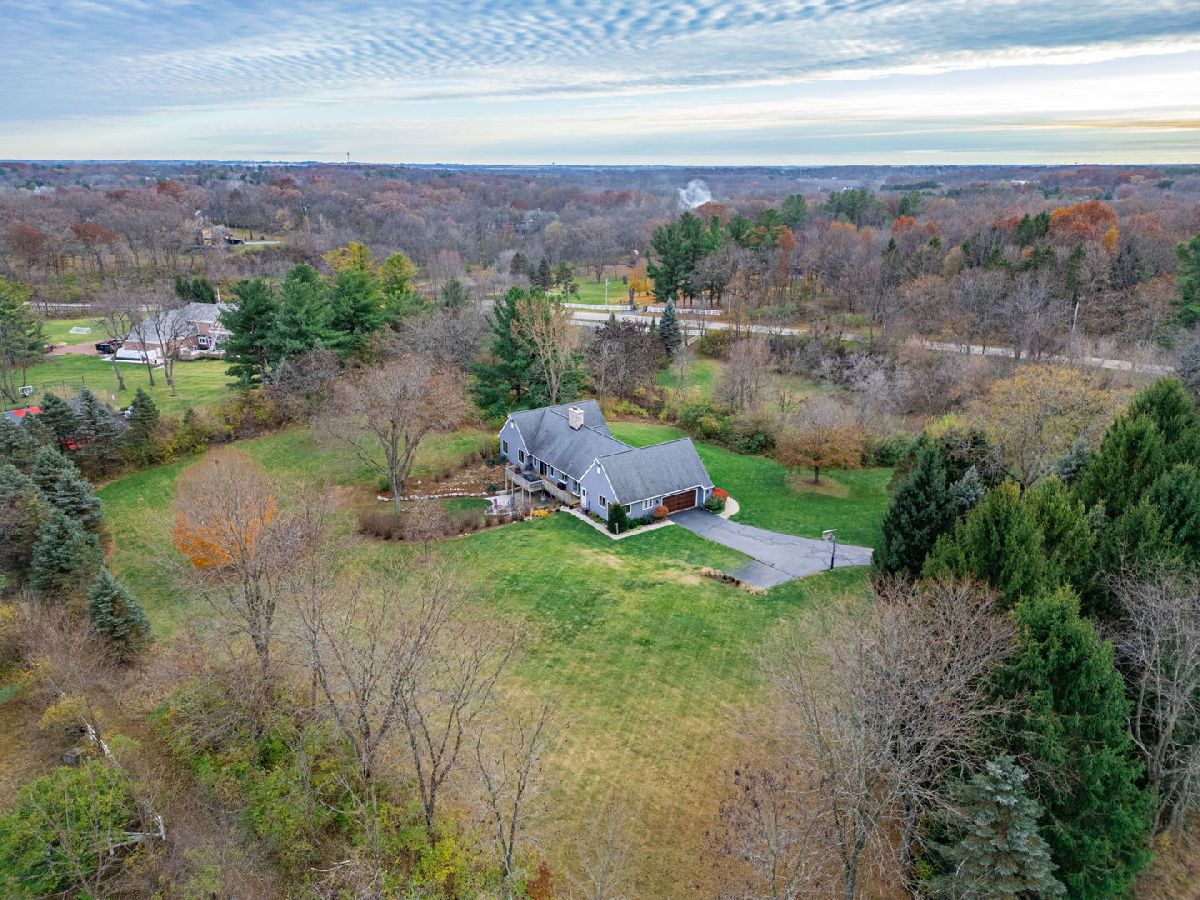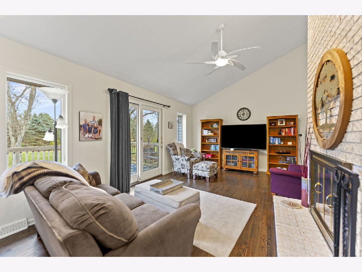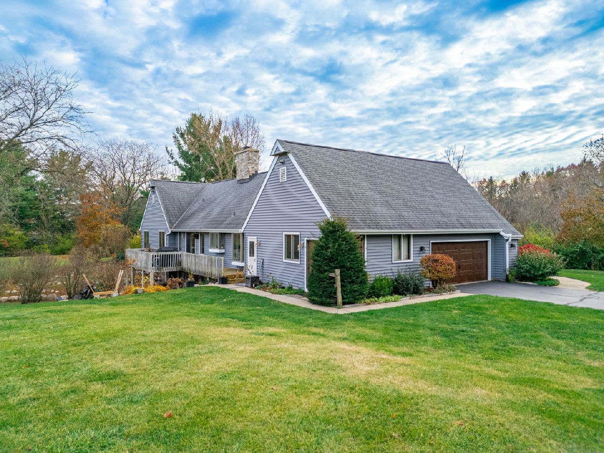 Beautiful, sprawling ranch home set on 5 peaceful acres zoned Agricultural, featuring full walkout exposure! With over 4,000 sq ft of living space across two levels, this home offers abundant room to spread out and enjoy comfortable country living. The inviting Family Room includes a brick fireplace, is open to the Kitchen, and features sliding doors leading to a large deck-perfect for entertaining or taking in the serene views. A spacious first-floor Laundry Room offers exceptional convenience with abundant cabinetry and an exterior door for easy access. The light-filled Kitchen shines with crushed quartz countertops, double ovens, a cooktop, and a generous dinette area overlooking the picturesque yard. Adjacent to the kitchen, the sunken Living Room and Formal Dining Room are lined with large windows that flood the space with natural light. The walkout lower level provides incredible additional living space, including a large family room, kitchenette area, and a second family room currently used as a home office, theater room, or potential 4th bedroom (note the Murphy bed). A full bathroom completes the lower level. The full walkout lower level leads directly to a patio and firepit-ideal for outdoor relaxation and gatherings. A rare blend of acreage, privacy, and spacious living, this property is ready to welcome you home. Located in Belvidere North School District with easy access to main roads, Rockford, and I-90. Plenty of Room for a second garage.