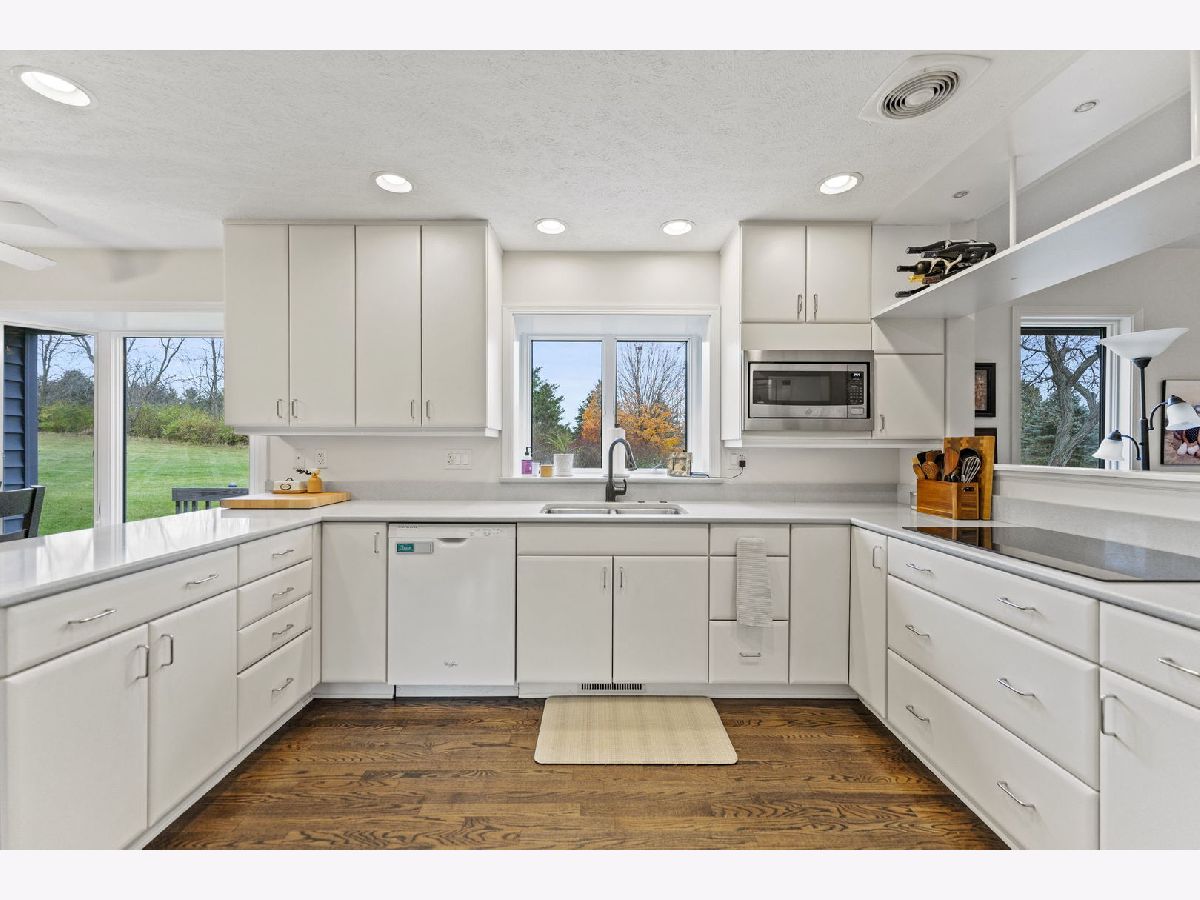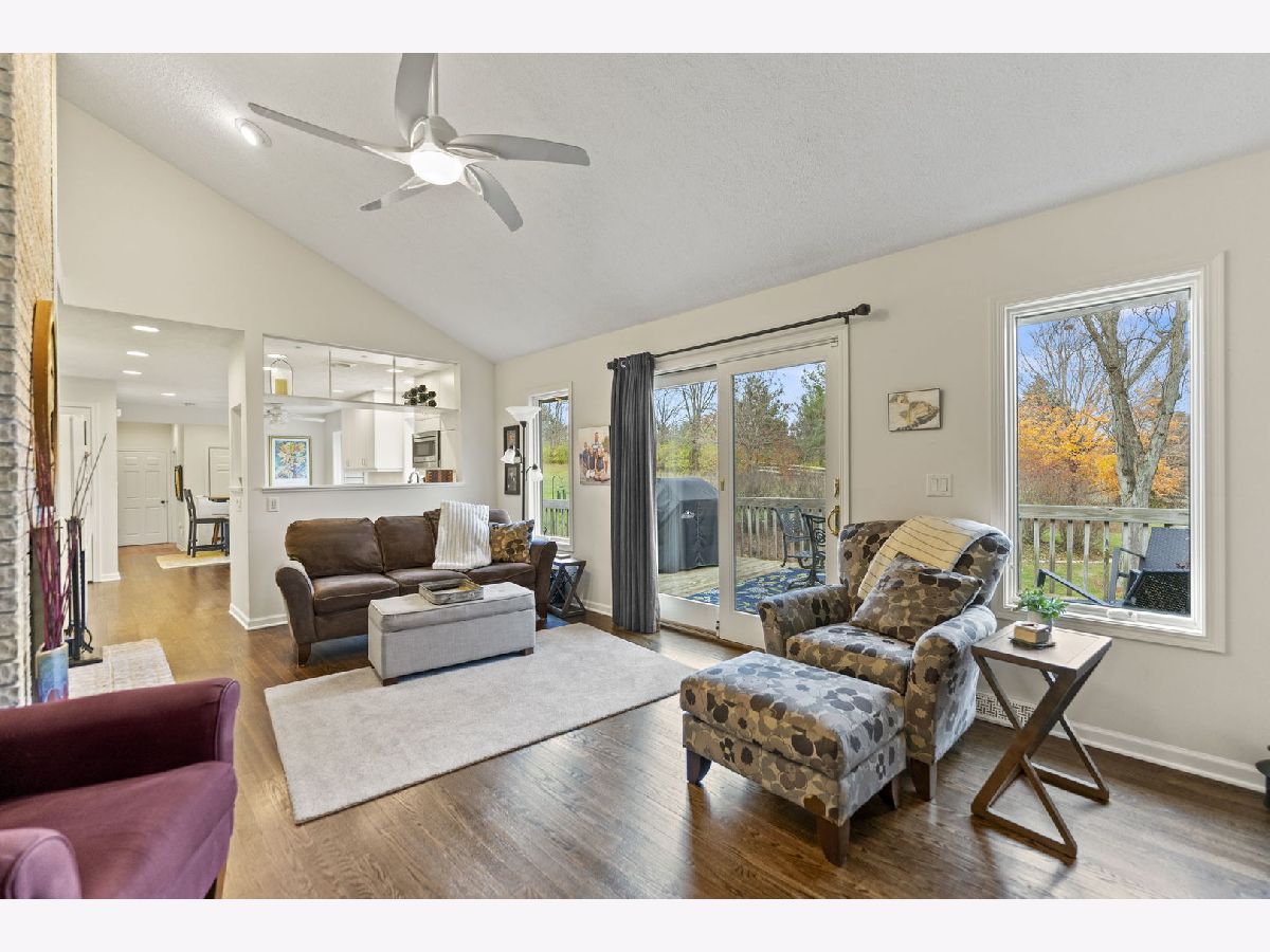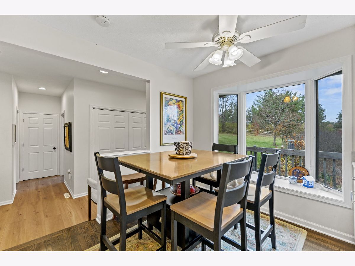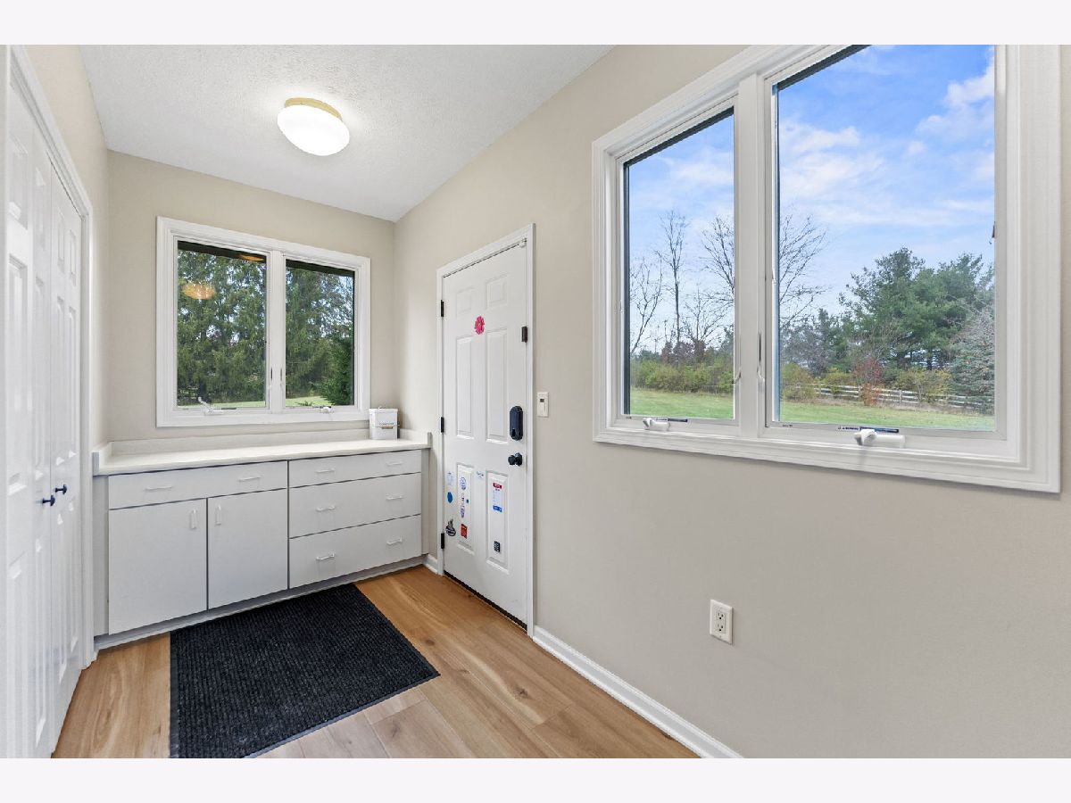 Beautiful, sprawling ranch home set on 5 peaceful acres zoned Agricultural, featuring full walkout exposure! With over 4,000 sq ft of living space across two levels, this home offers abundant room to spread out and enjoy comfortable country living. The inviting Family Room includes a brick fireplace, is open to the Kitchen, and features sliding doors leading to a large deck-perfect for entertaining or taking in the serene views. A spacious first-floor Laundry Room offers exceptional convenience with abundant cabinetry and an exterior door for easy access. The light-filled Kitchen shines with crushed quartz countertops, double ovens, a cooktop, and a generous dinette area overlooking the picturesque yard. Adjacent to the kitchen, the sunken Living Room and Formal Dining Room are lined with large windows that flood the space with natural light. The walkout lower level provides incredible additional living space, including a large family room, kitchenette area, and a second family room currently used as a home office, theater room, or potential 4th bedroom (note the Murphy bed). A full bathroom completes the lower level. The full walkout lower level leads directly to a patio and firepit-ideal for outdoor relaxation and gatherings. A rare blend of acreage, privacy, and spacious living, this property is ready to welcome you home. Located in Belvidere North School District with easy access to main roads, Rockford, and I-90. Plenty of Room for a second garage.